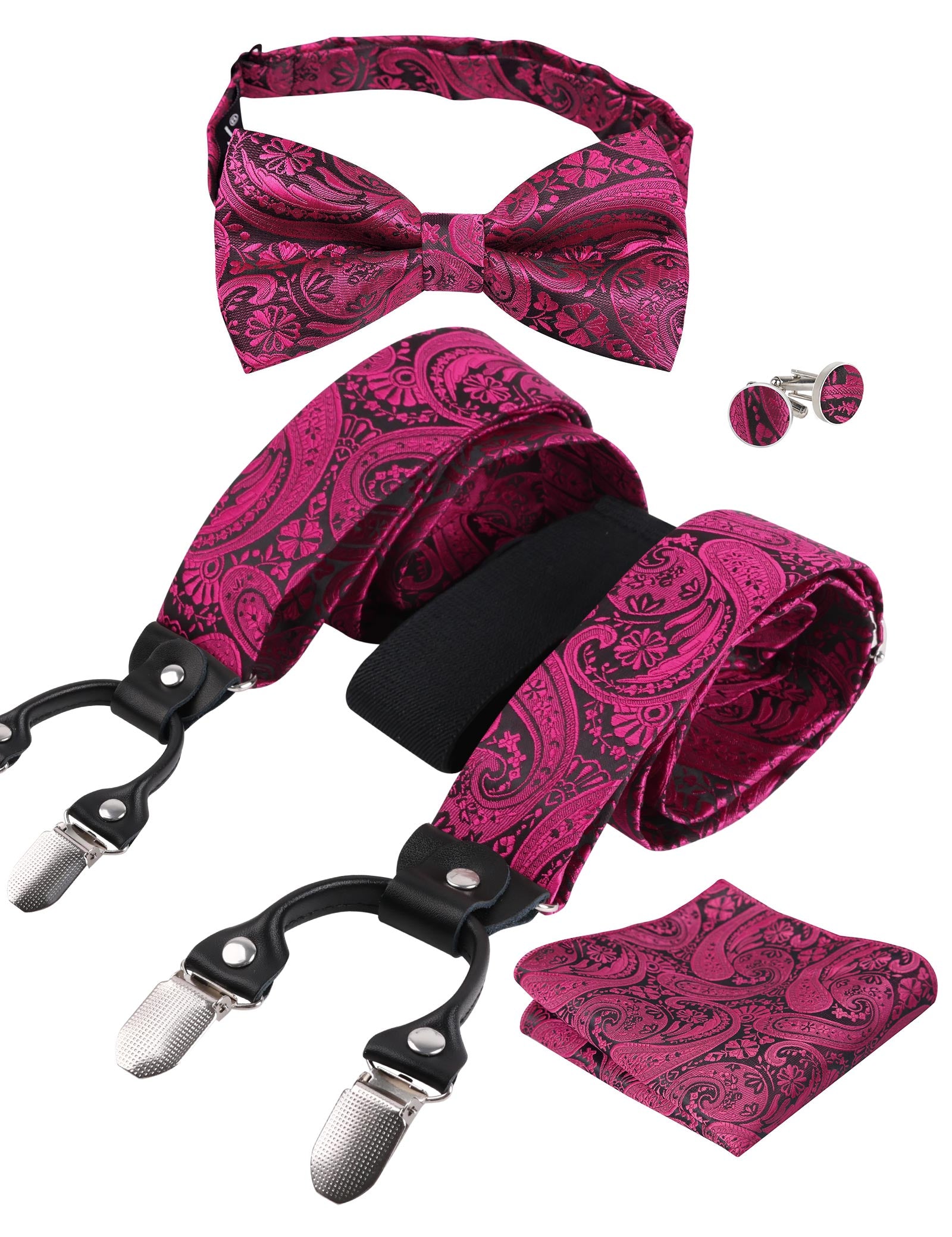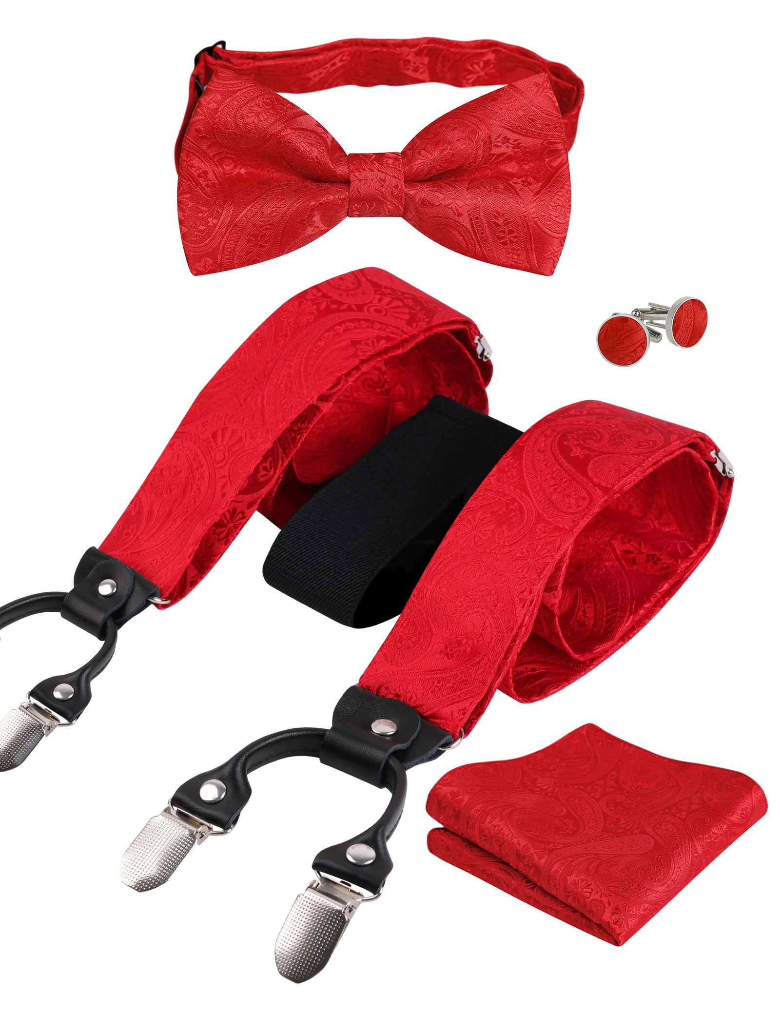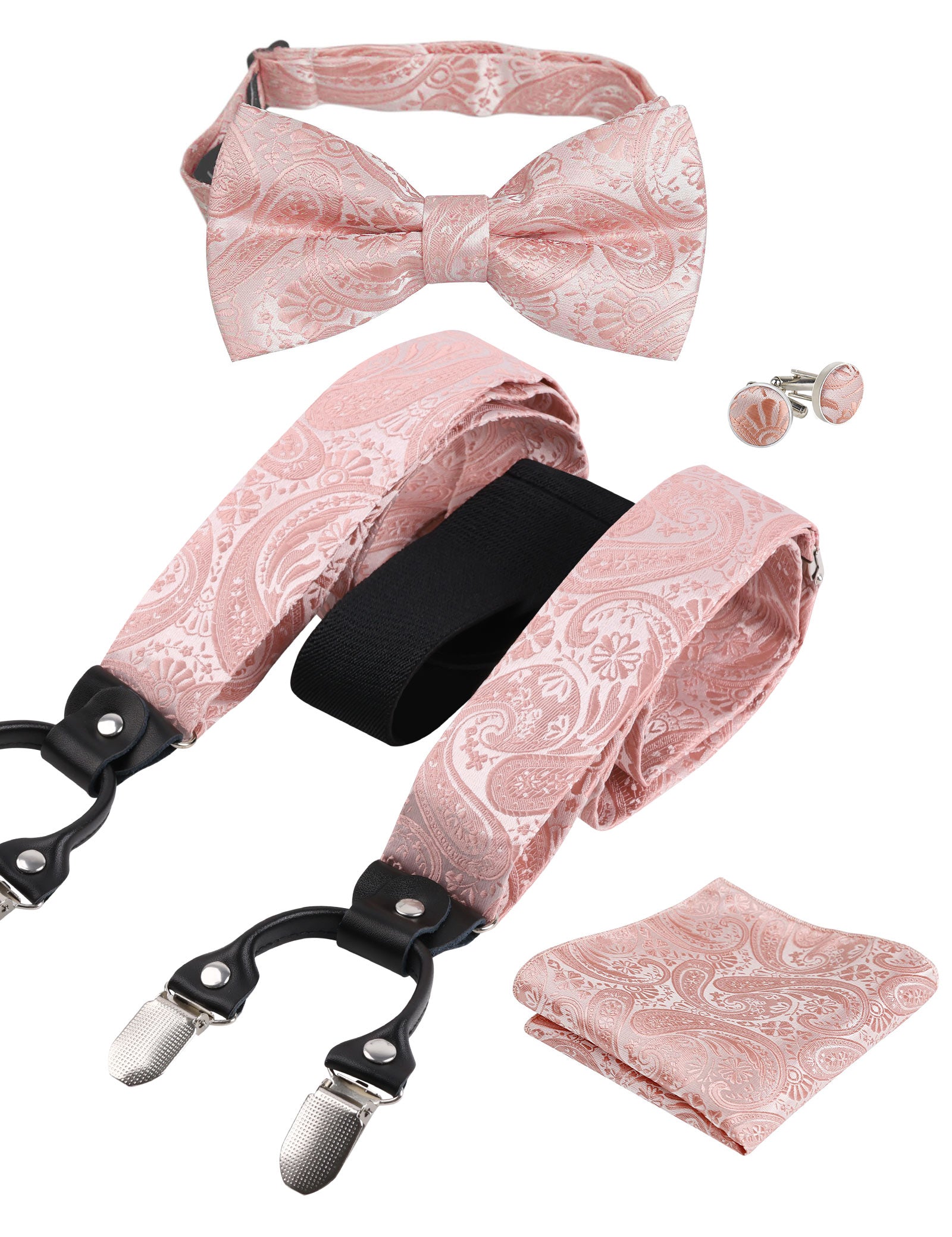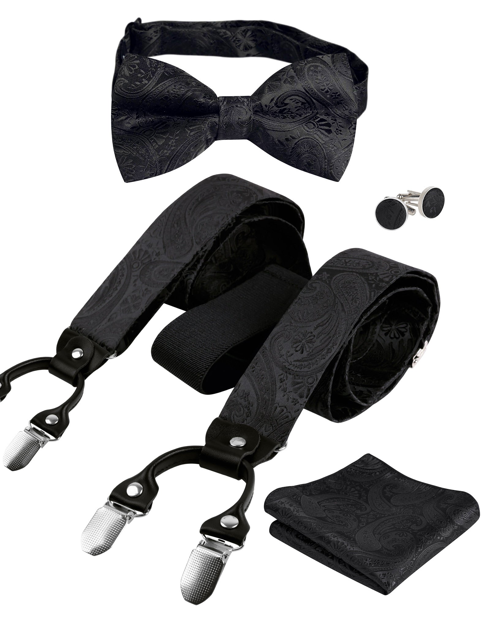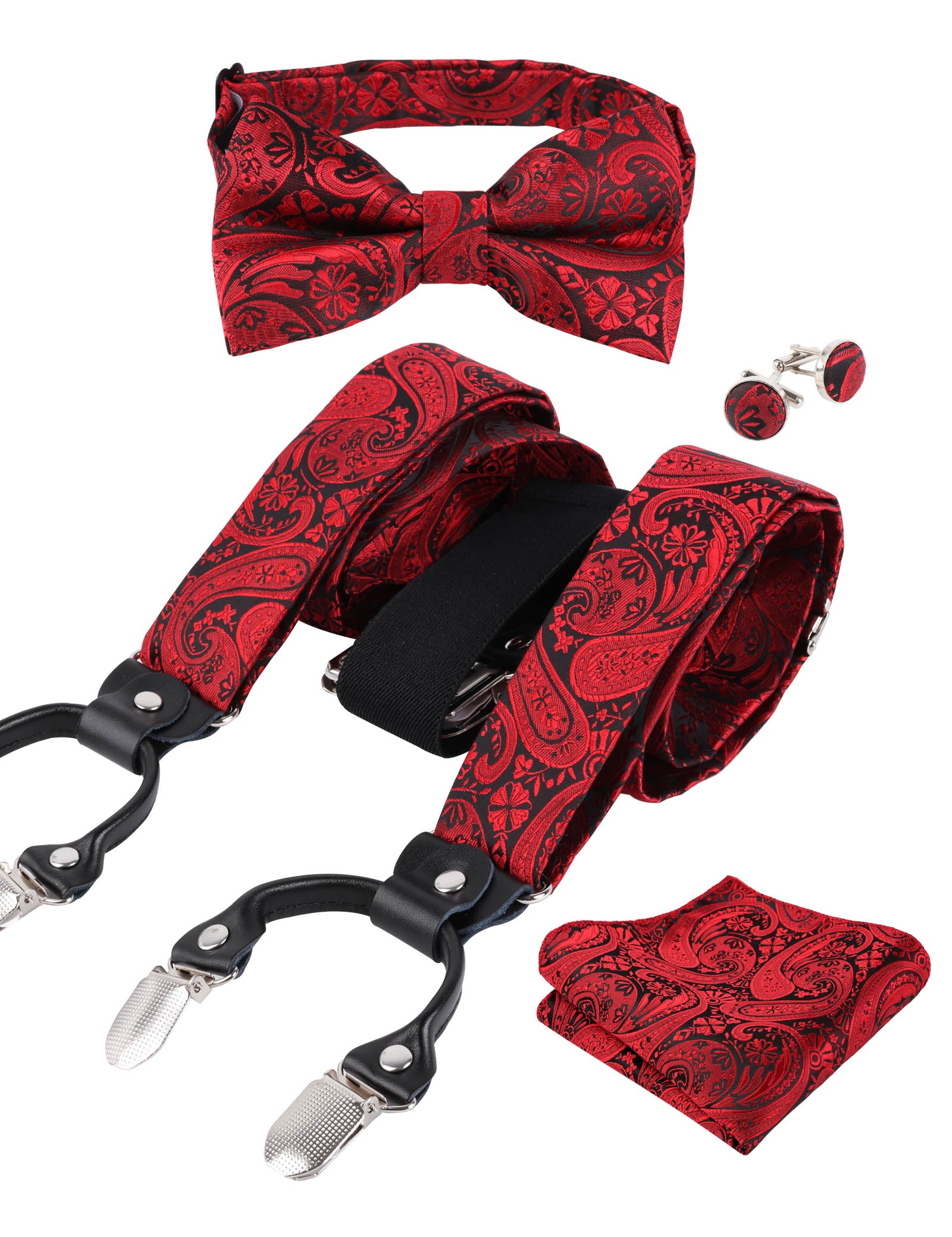 Herren-Set mit Hosenträgern, vorgebundener Fliege, Einstecktuch und Manschettenknöpfen im Paisley-Muster – BD071