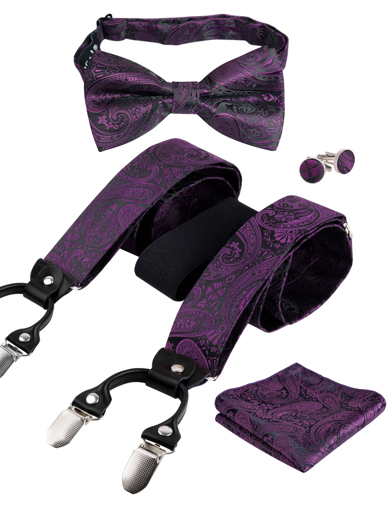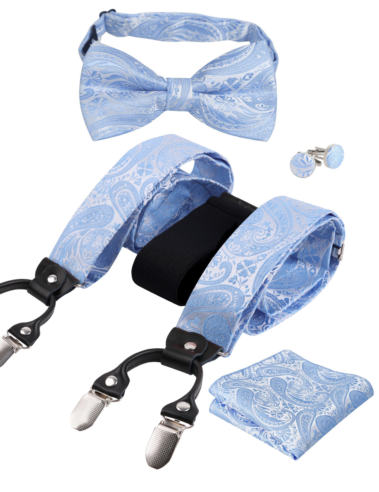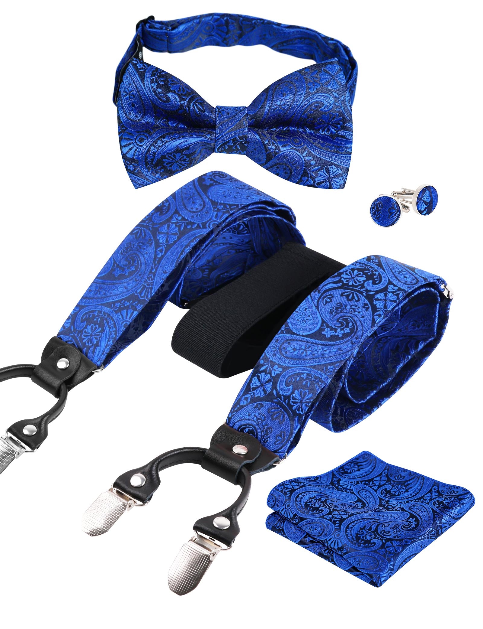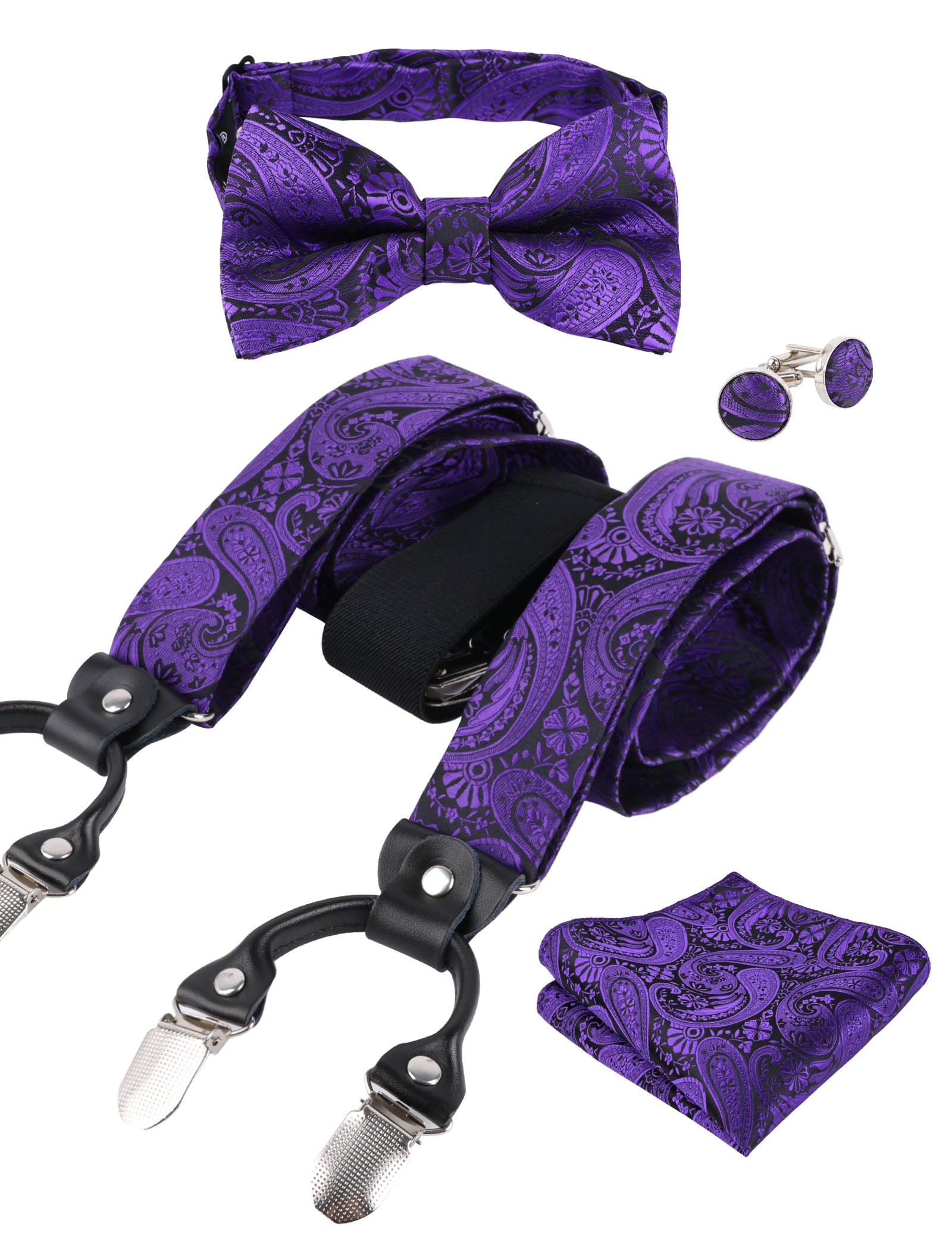 Herren-Set mit Hosenträgern, vorgebundener Fliege, Einstecktuch und Manschettenknöpfen im Paisley-Muster – BD071