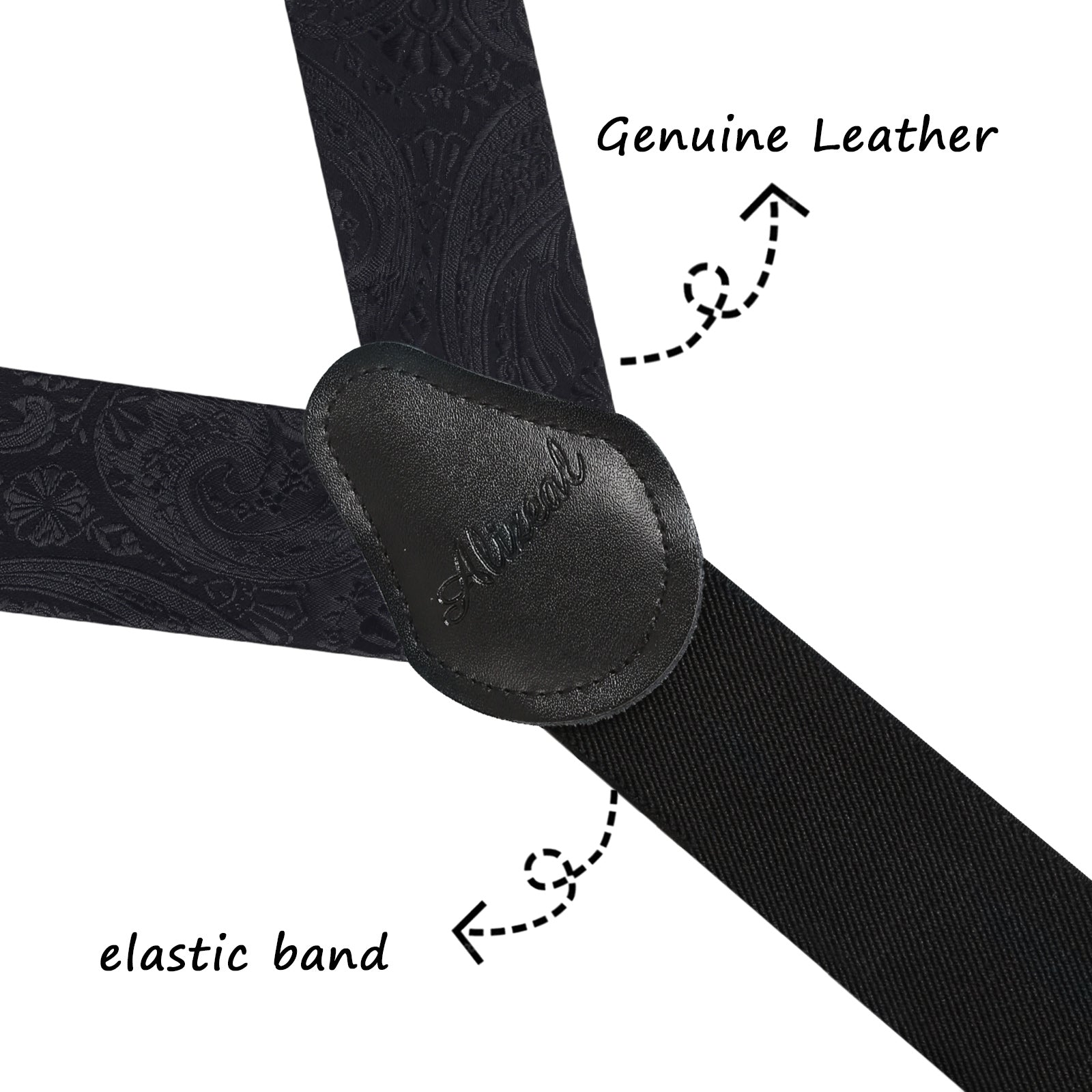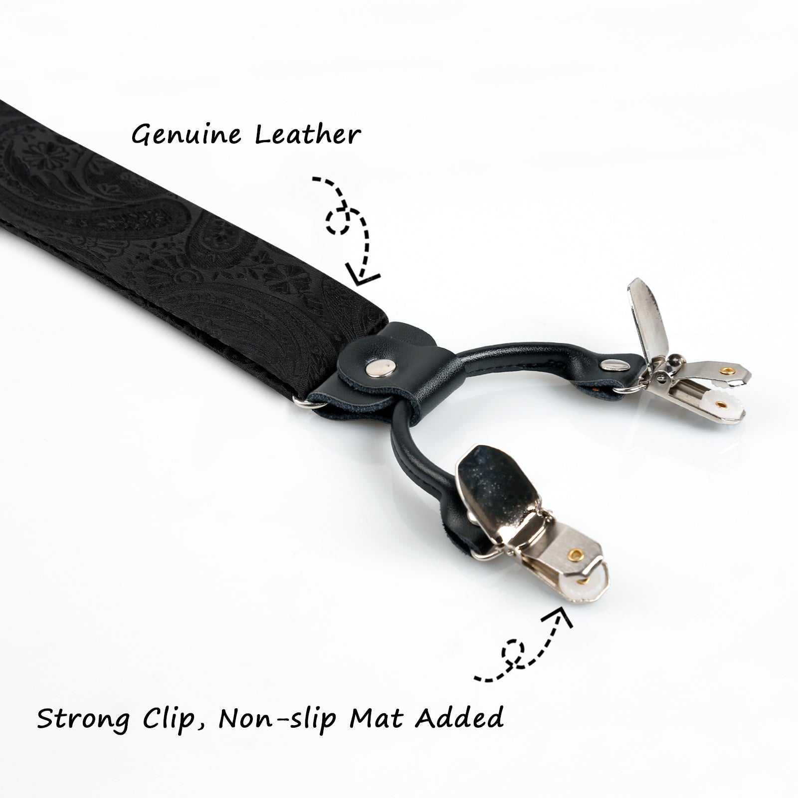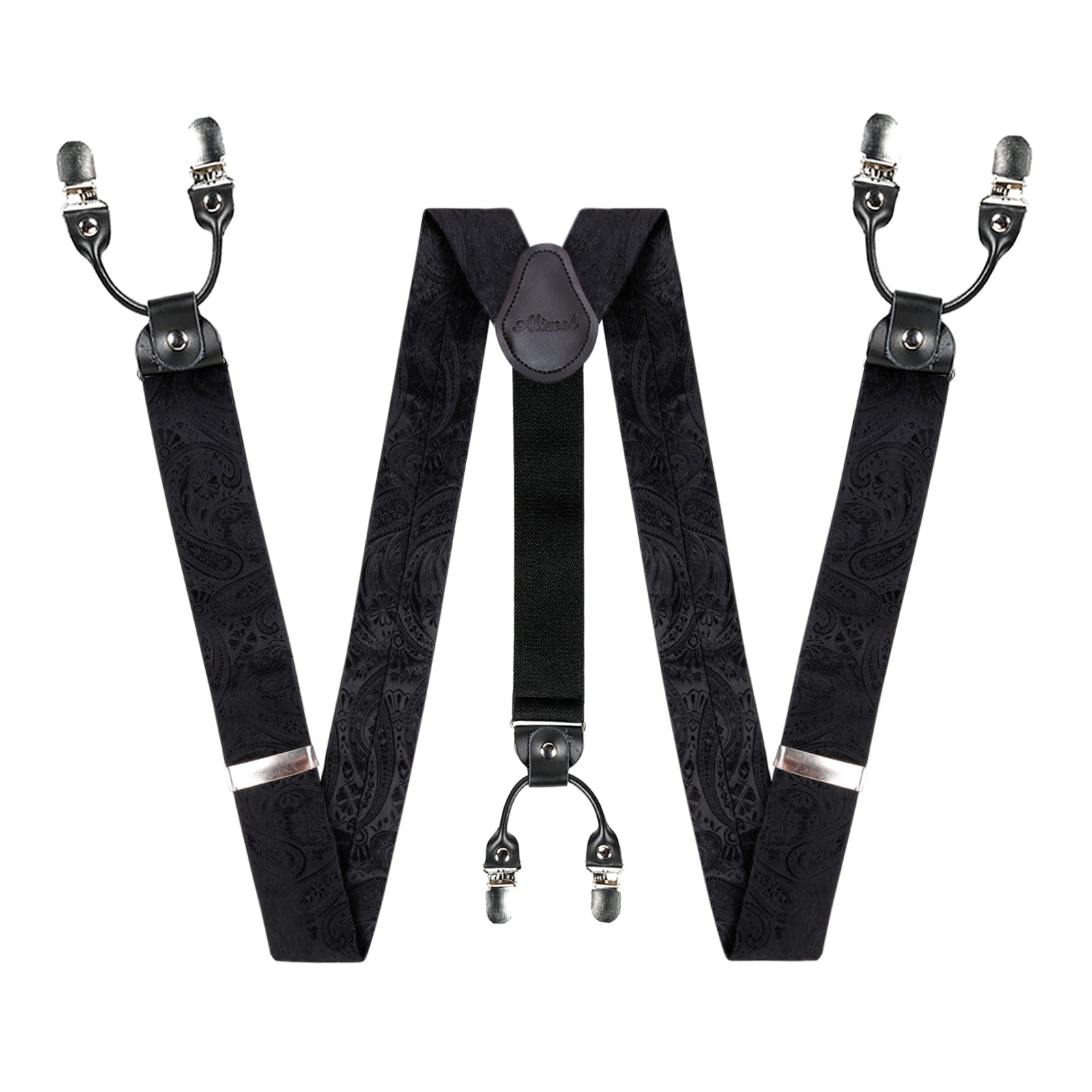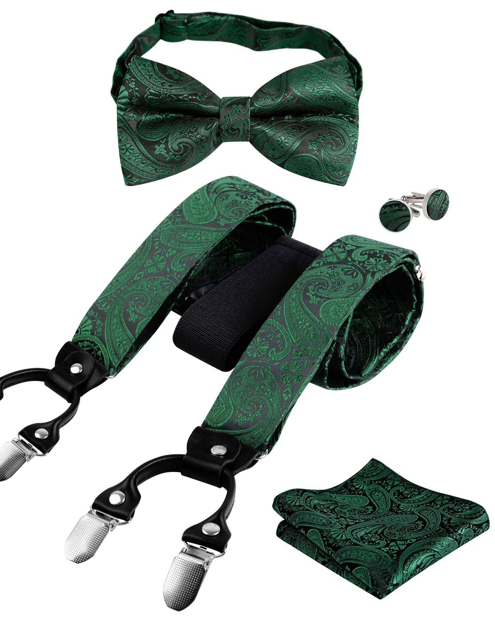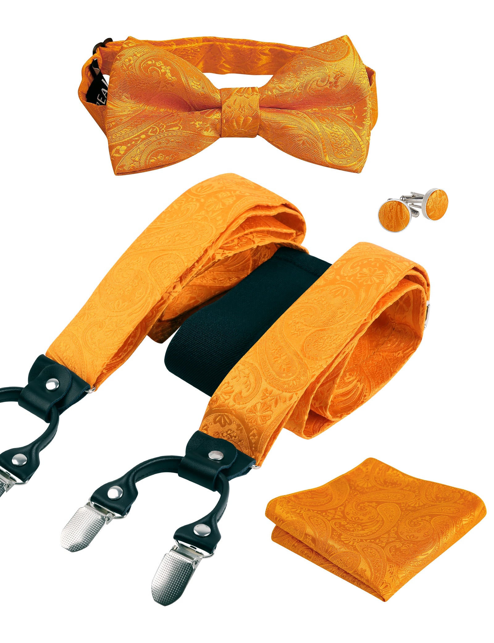Herren-Set mit Hosenträgern, vorgebundener Fliege, Einstecktuch und Manschettenknöpfen im Paisley-Muster – BD071