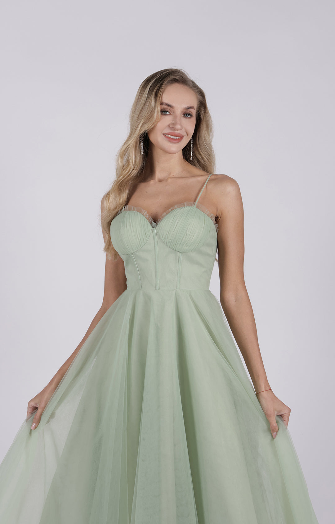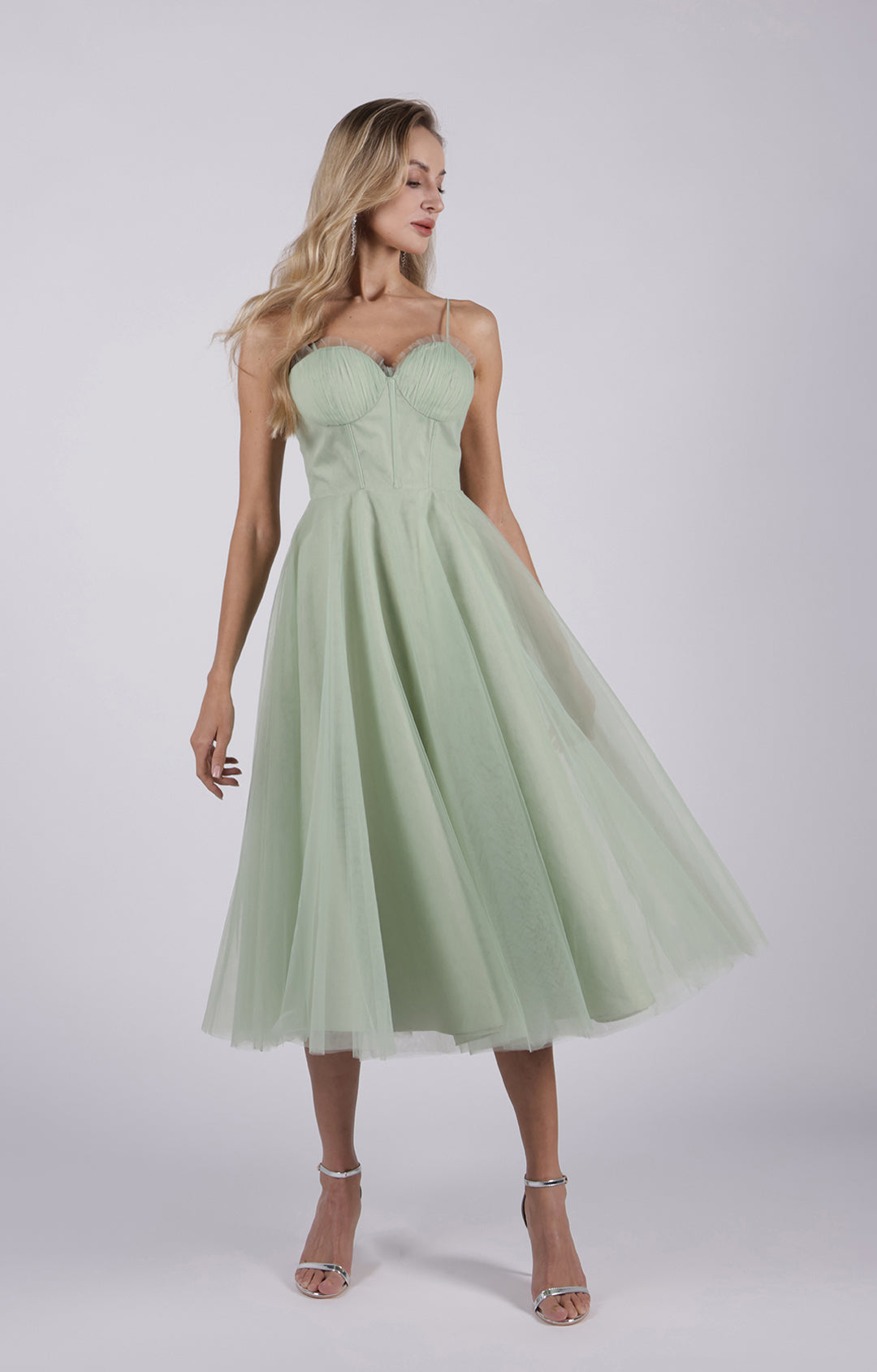 Frisches, elegantes A-Linien-Kleid mit herzförmigem Ausschnitt, verstellbaren Trägern und Netzstoff