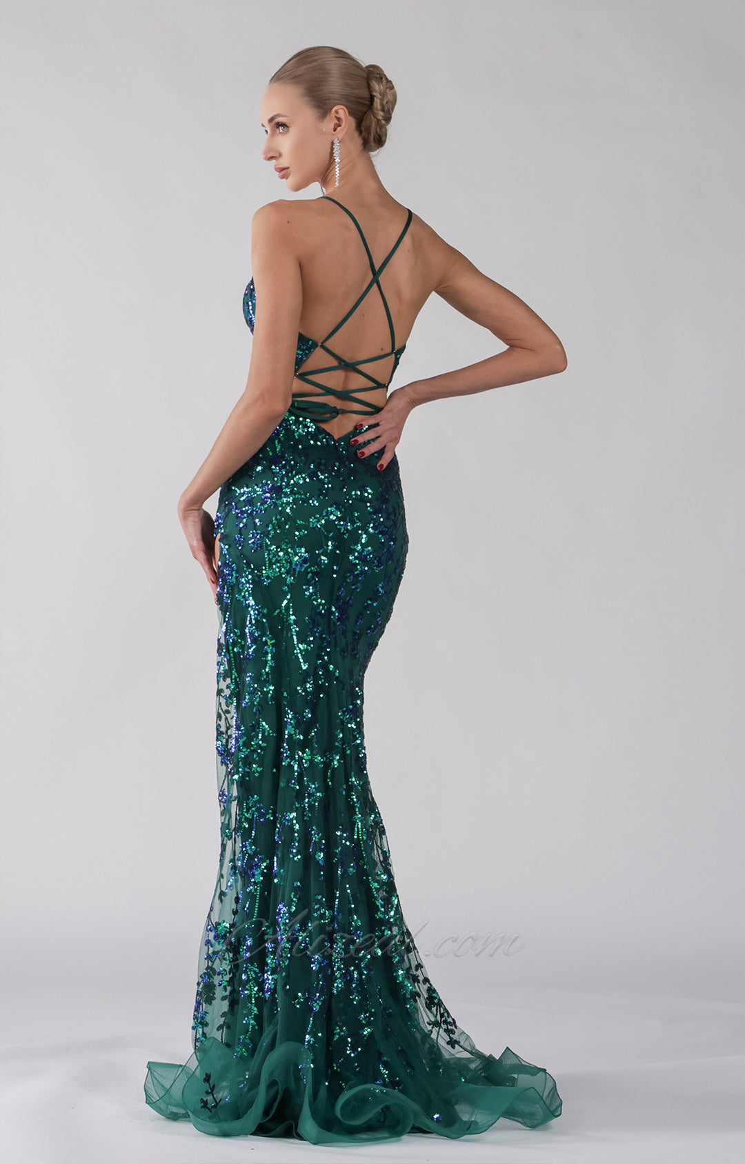 Pailletten Spaghettiträger Seitlich geschlitzte Schnürkleider