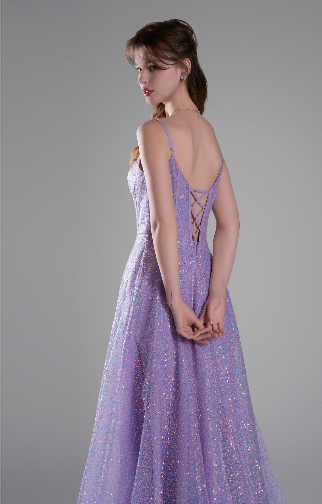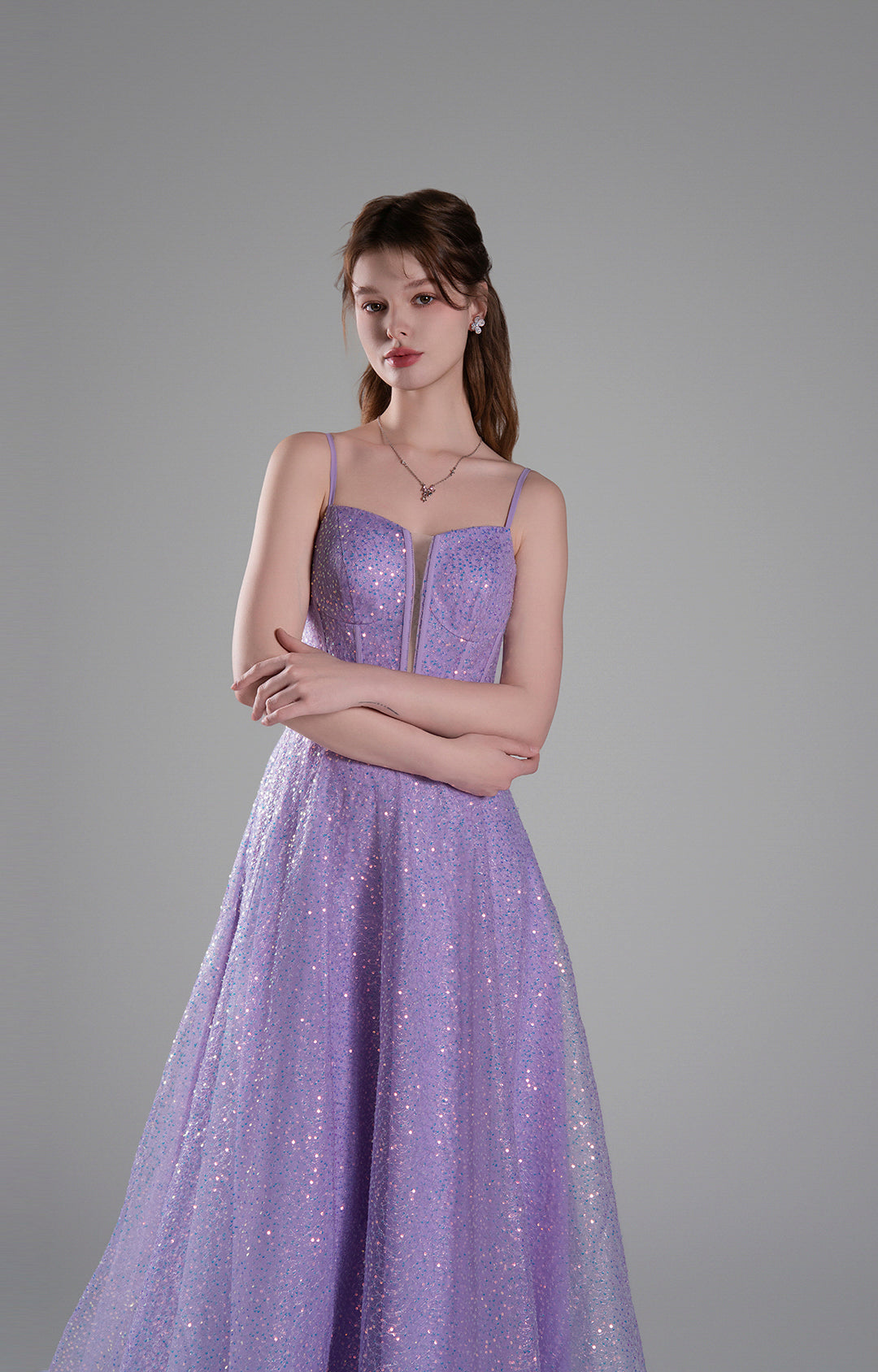 Ideal for proms, pageants, evening galas, or formal receptions, this lavender mesh gown is made for moments that call for sparkle and grace. It’s a captivating choice for those who want to feel like a modern-day princess.
