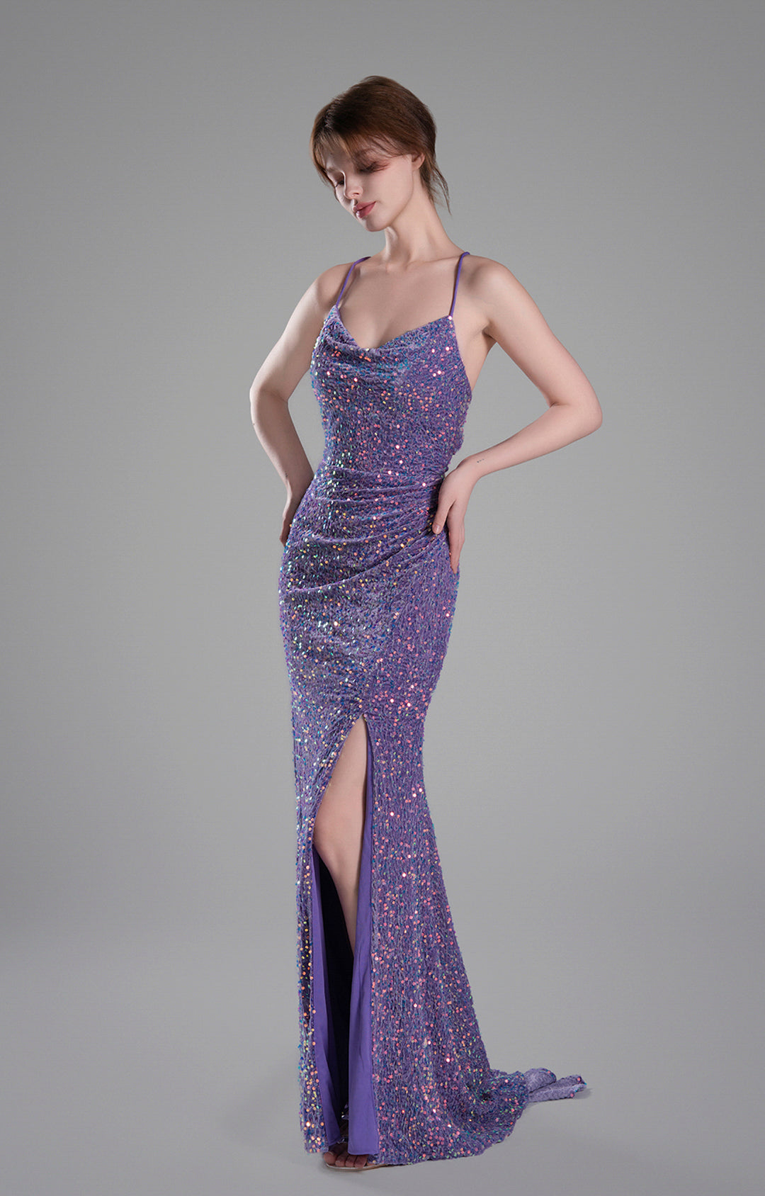Kleider mit Wasserfallausschnitt, auffälligen Pailletten und Schnürung