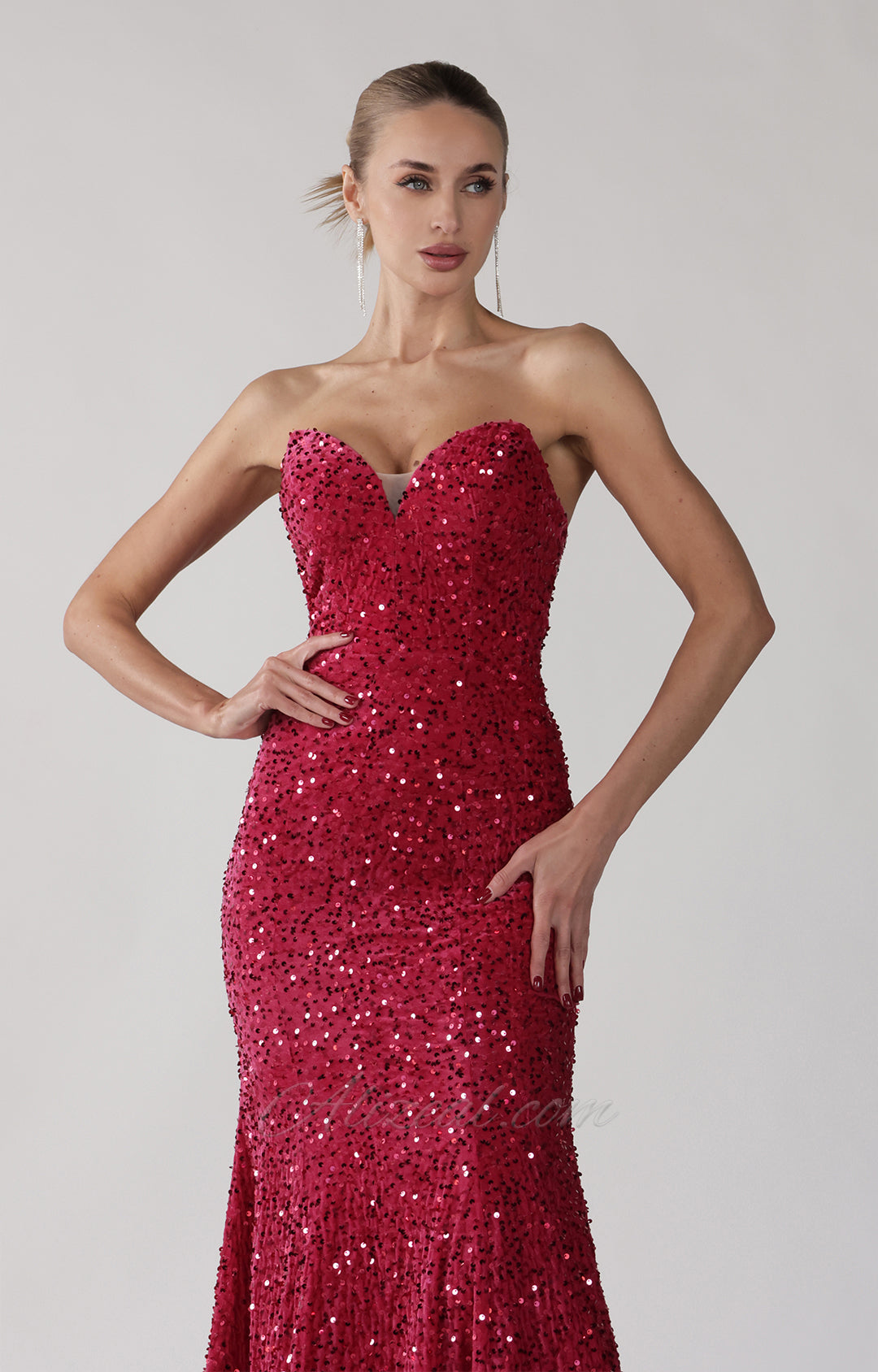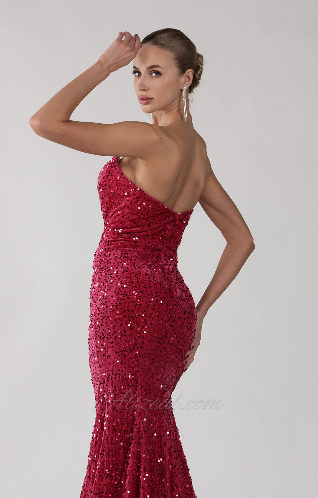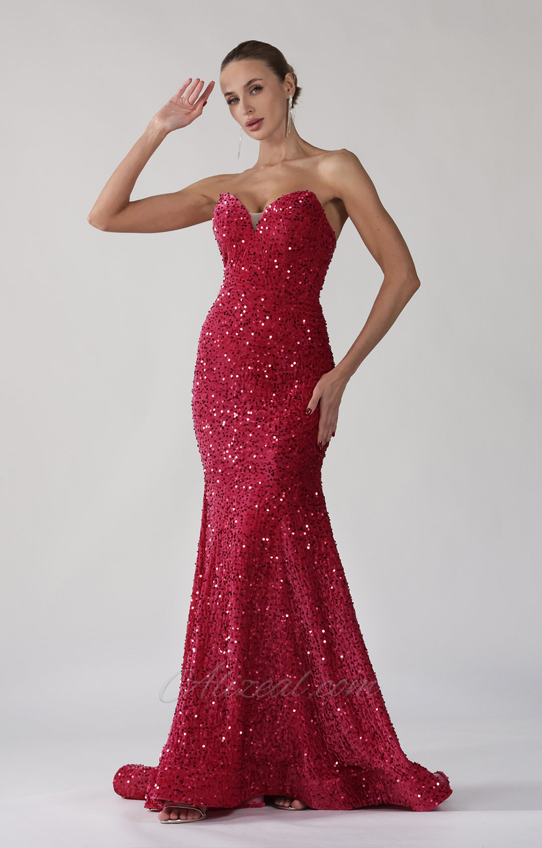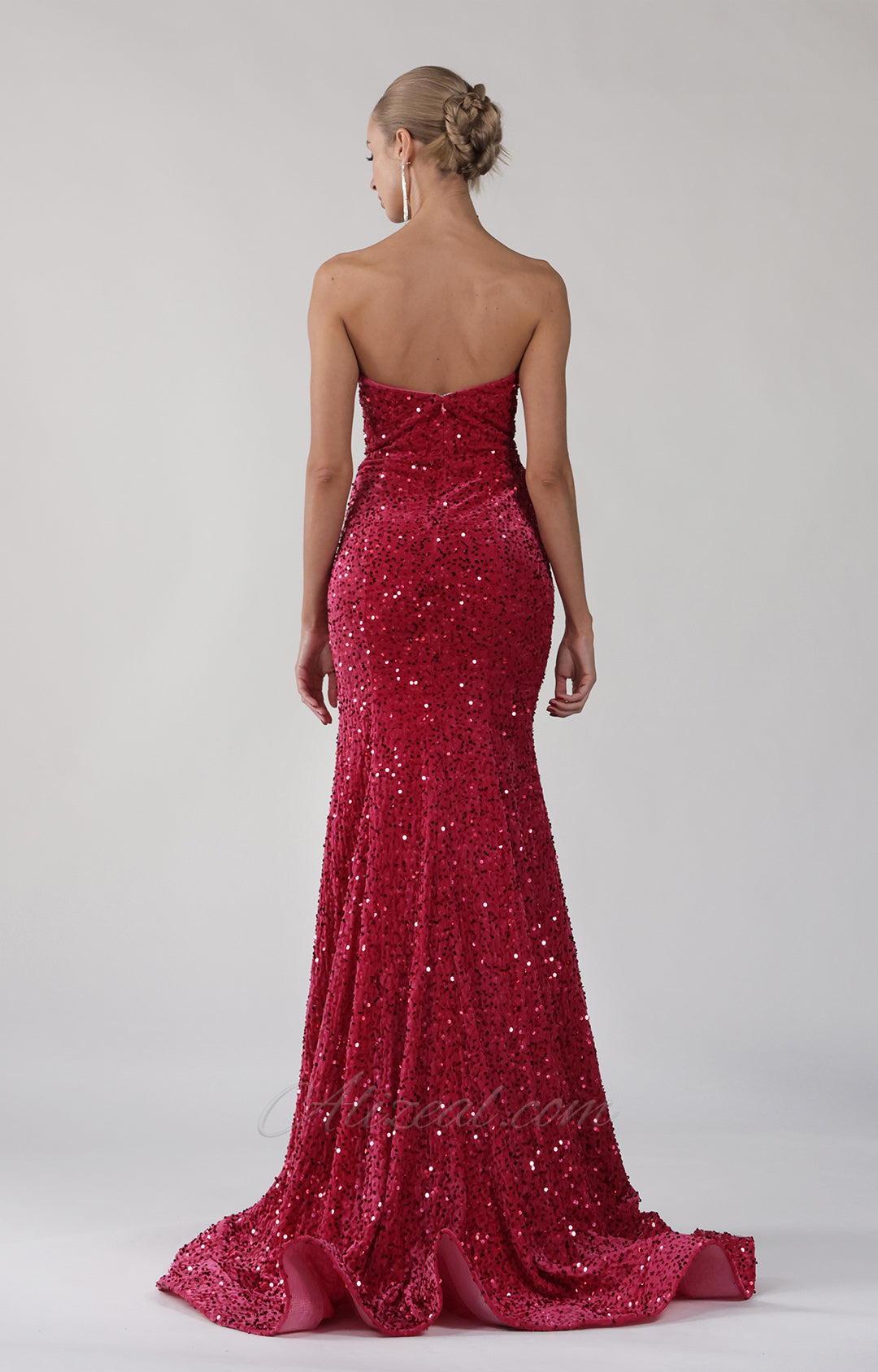 Trägerloses V-Ausschnitt Pailletten Sweep Train Meerjungfrau Maxikleid