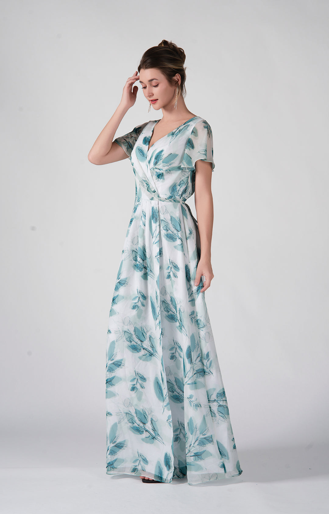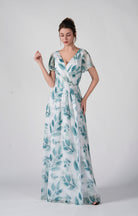 Dieses bedruckte Chiffonkleid vereint klassischen Charme mit moderner Weiblichkeit.