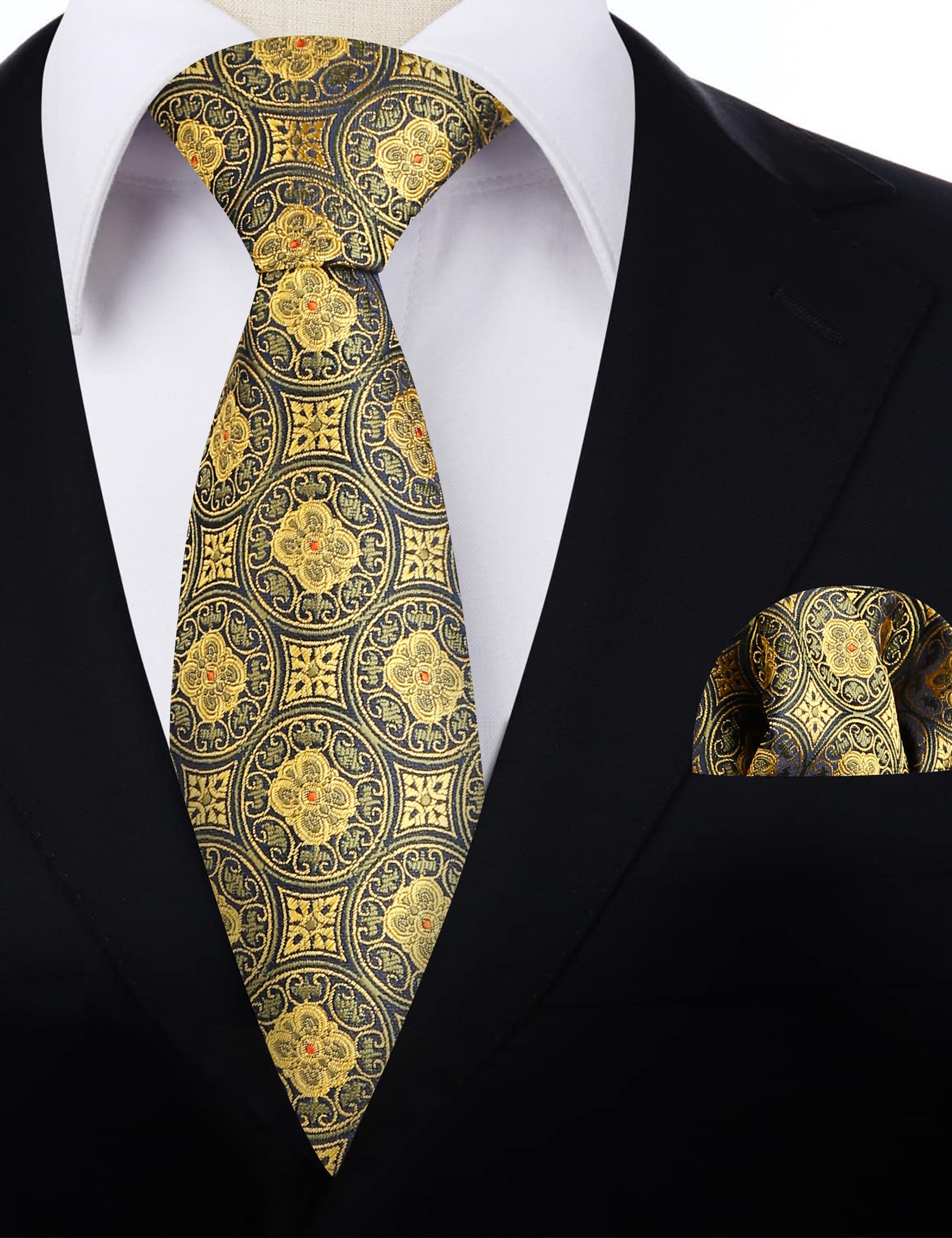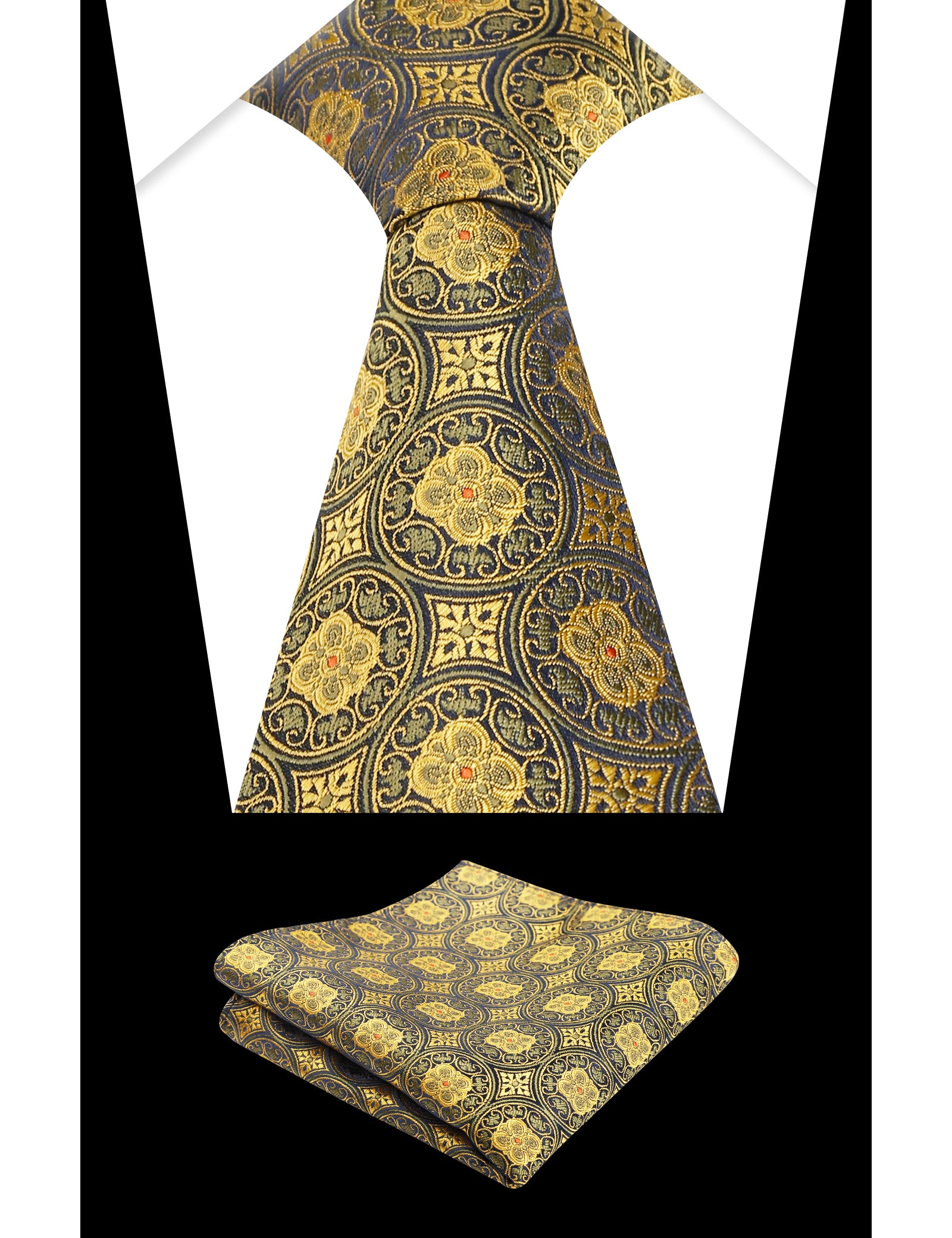 Packaging includes : 1 Tie & 1 Pocket Square. Tie Width: 3.15 inches(8 cm); Tie Length: 59 inches(150cm); Handkerchief size: 9.45 inches x 9.45 inches(24cm x 24cm)