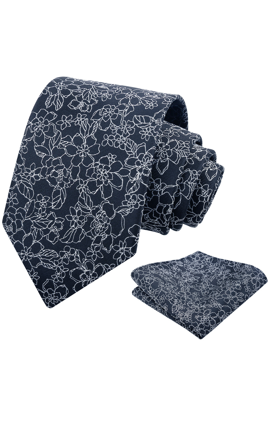 Mens 3.15inch Printed Floral Tie Set Solid Color Wedding Party Casual Flower Necktie Pocket Square Set-914