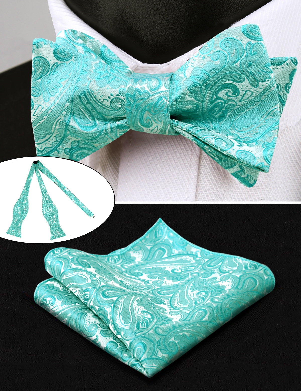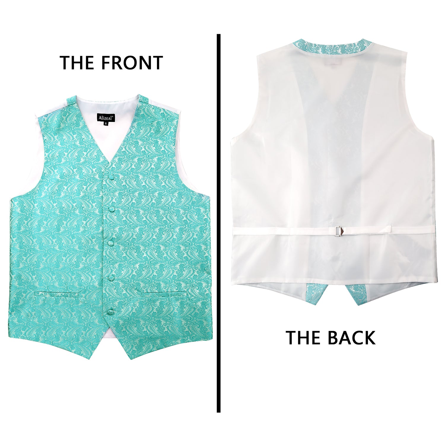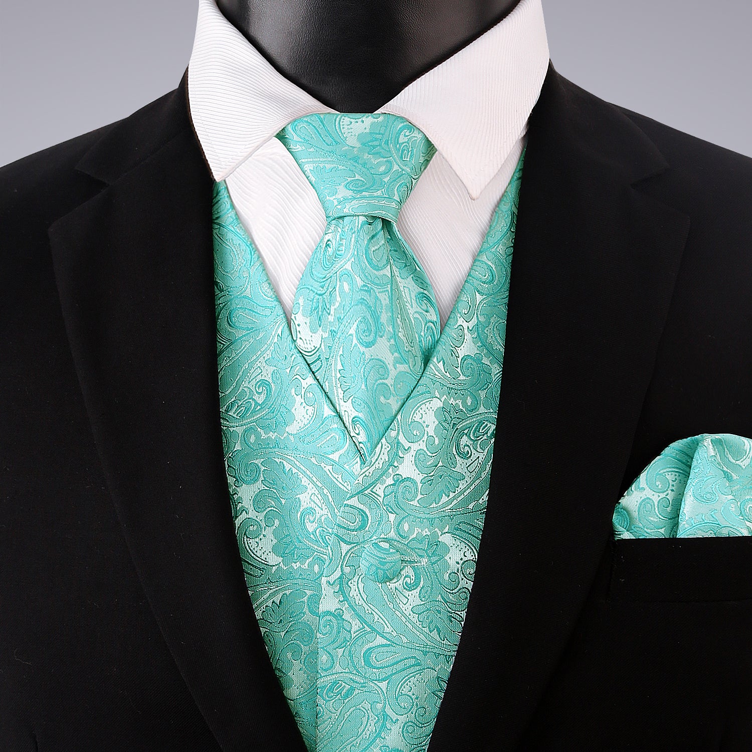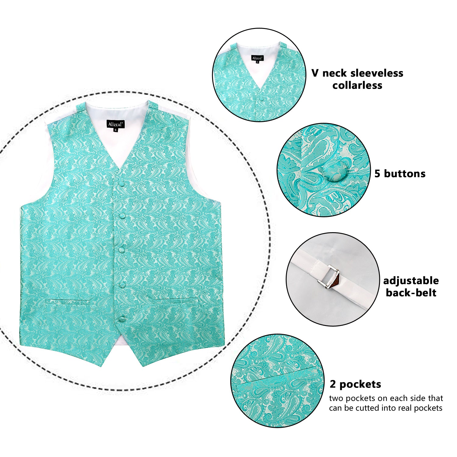 Herren-Anzugweste mit Paisleymuster, selbstgebundene Fliege, 8,5 cm lange Krawatte und Einstecktuch-Set, 175-Türkis