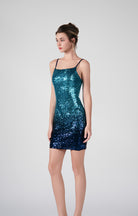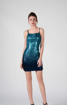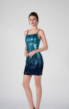 Square Neckline Spaghetti Straps Bodycon Sequin Mini Dress