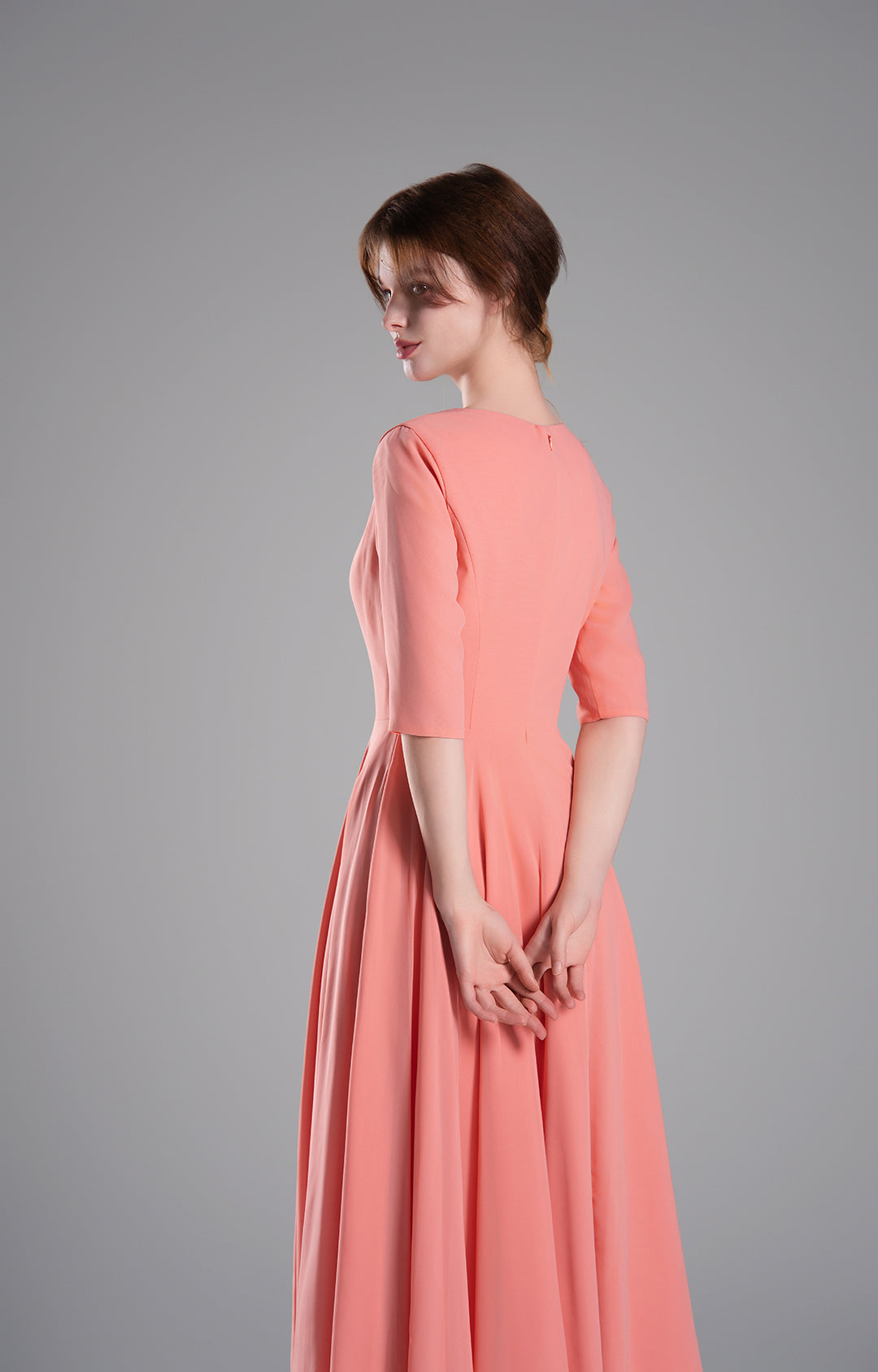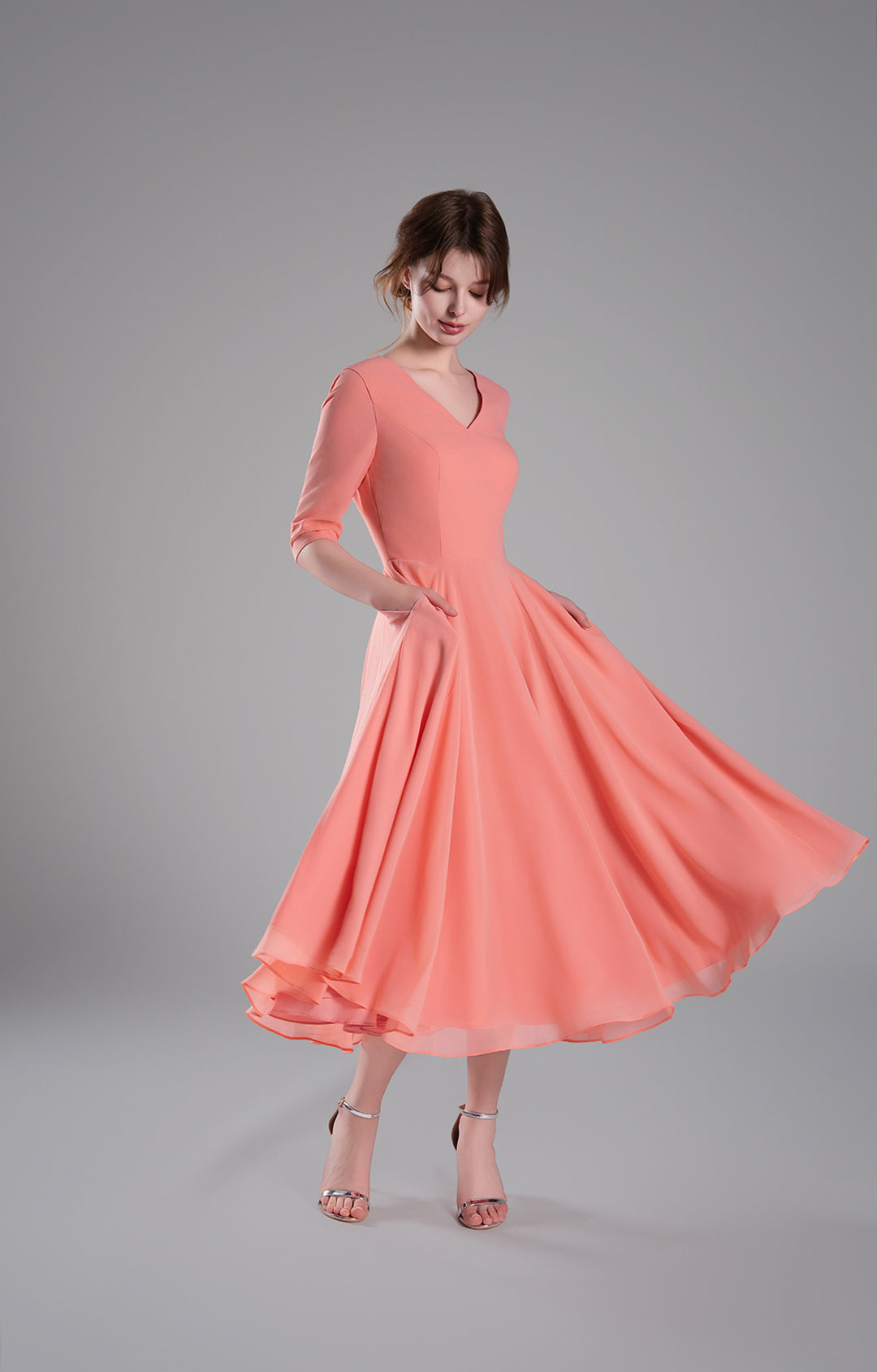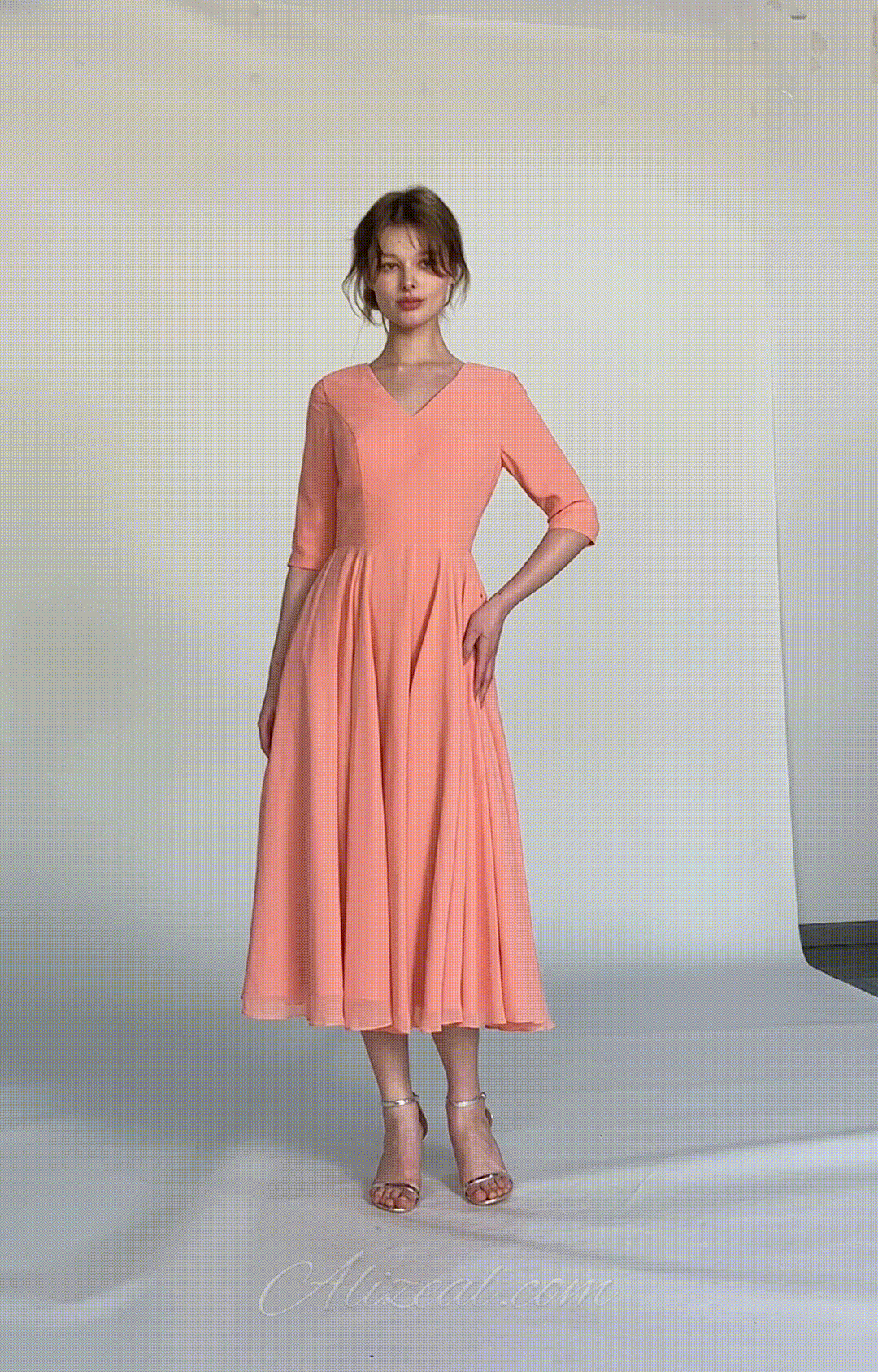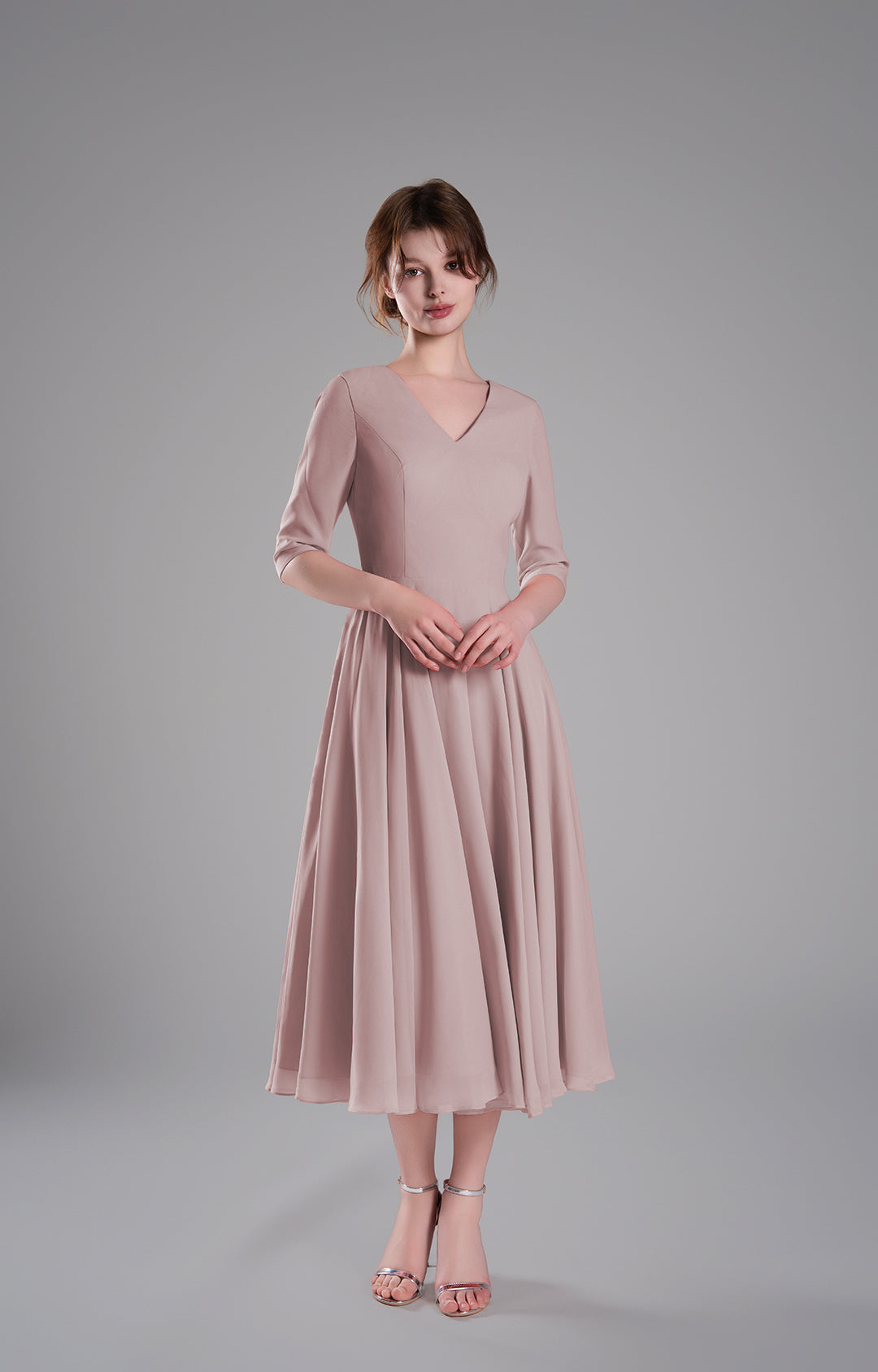 Ideal for weddings, cocktail parties, evening gatherings, formal dinners, and special celebrations, this chiffon midi dress exudes timeless grace and refined charm. Its versatile and elegant design ensures that you shine on any occasion.