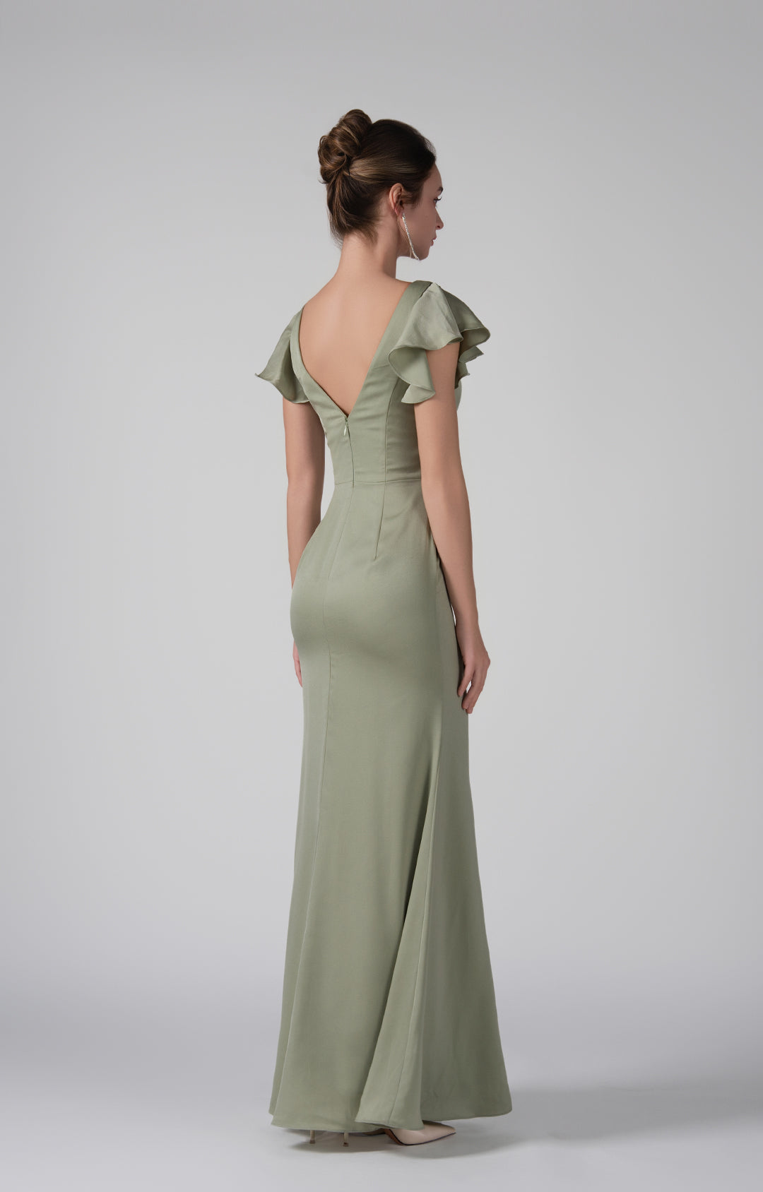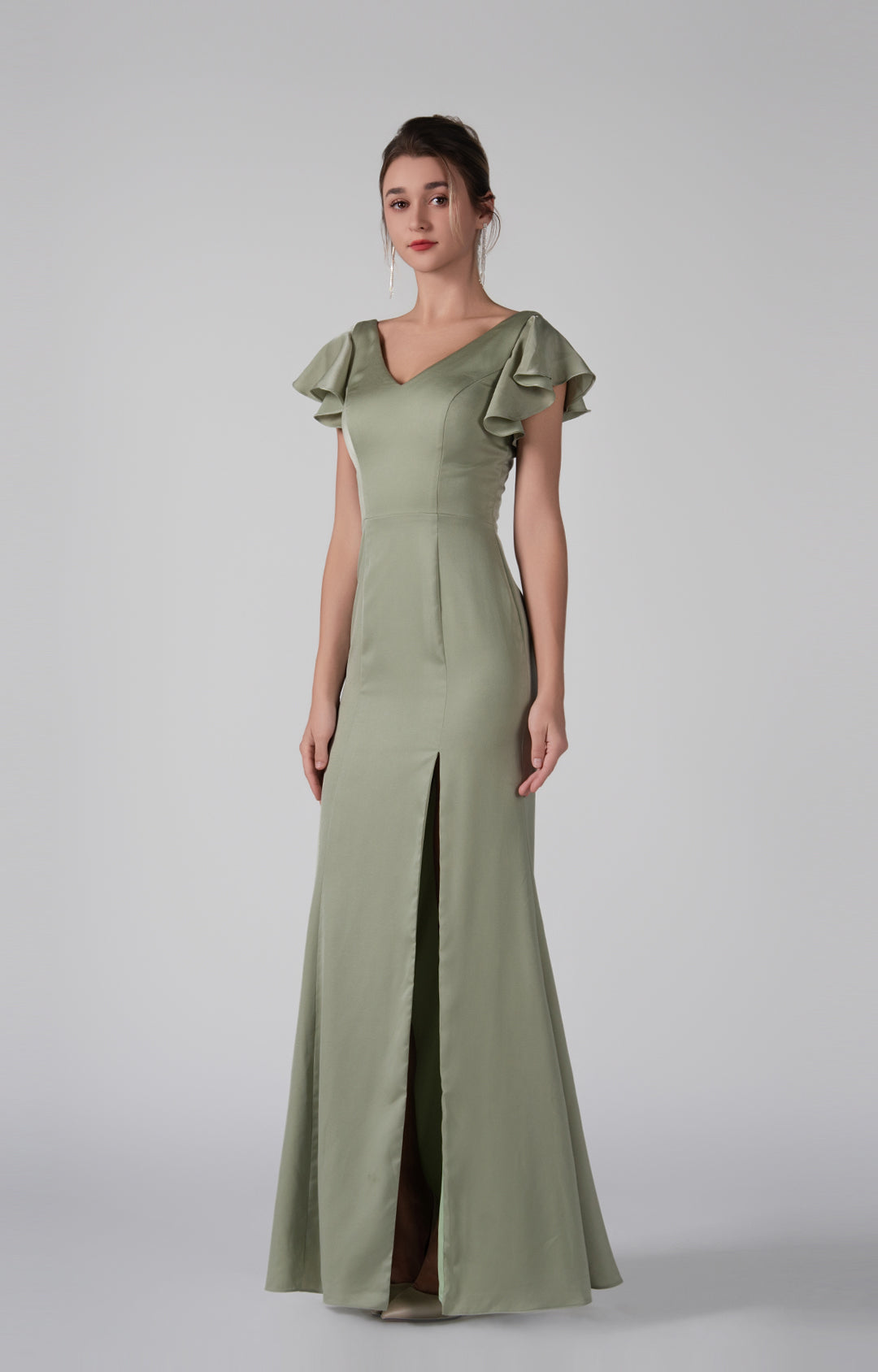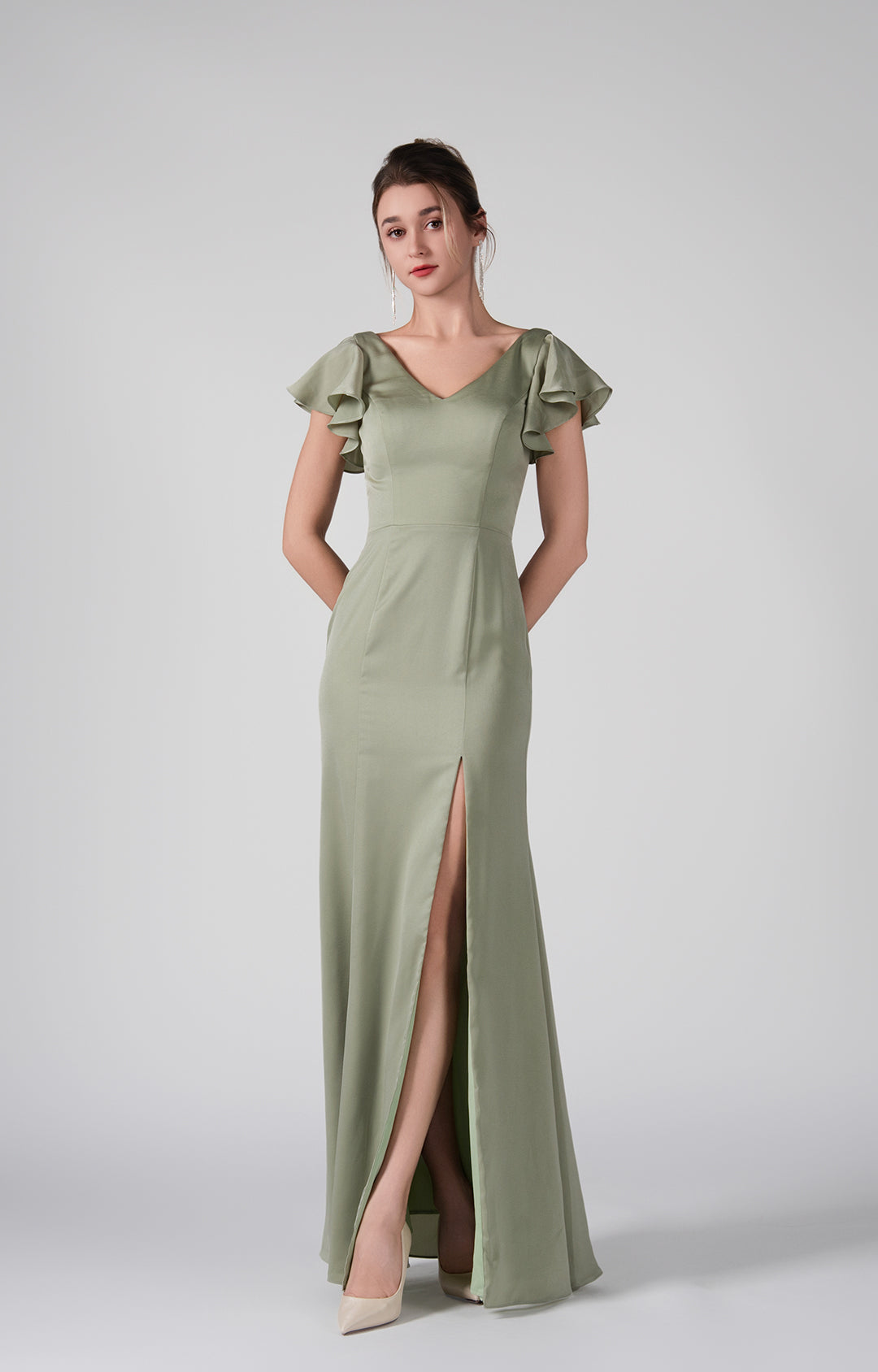 Flutter Sleeves V-Neck Fitted Front Slit Dresses