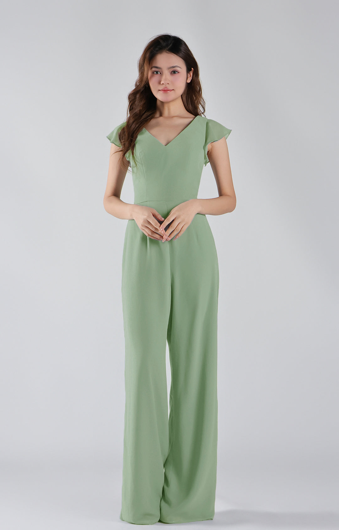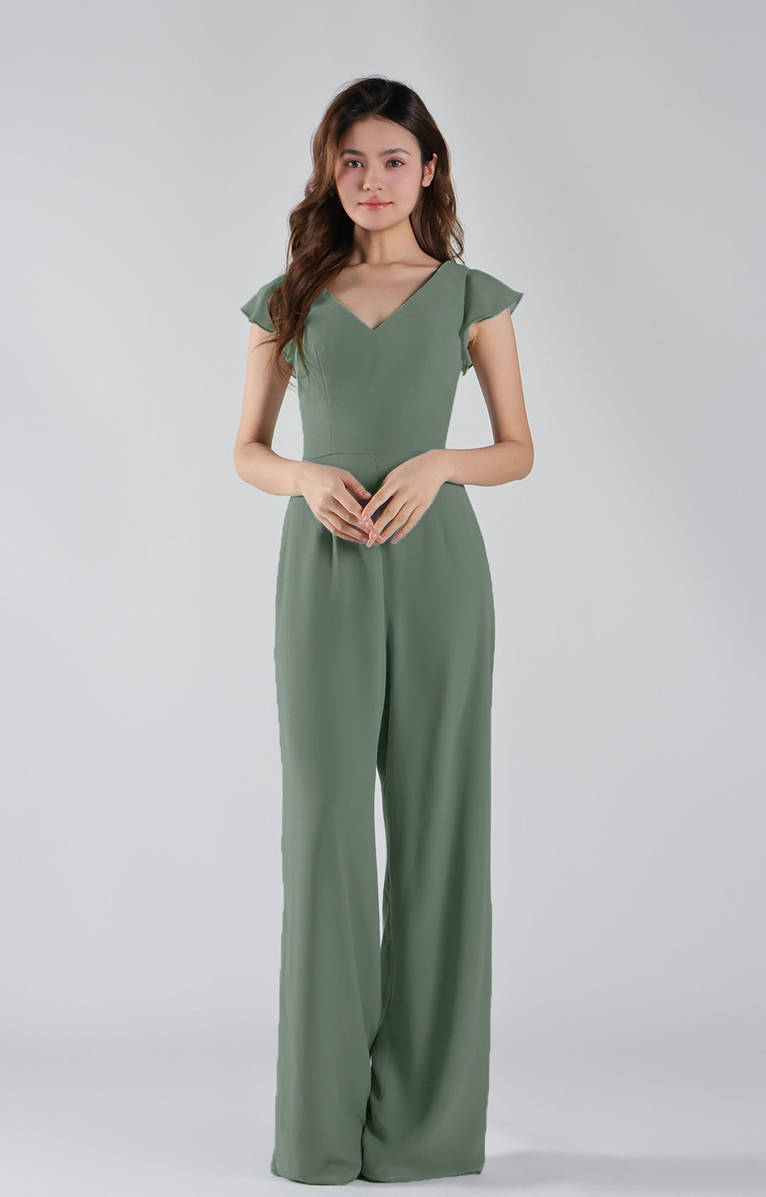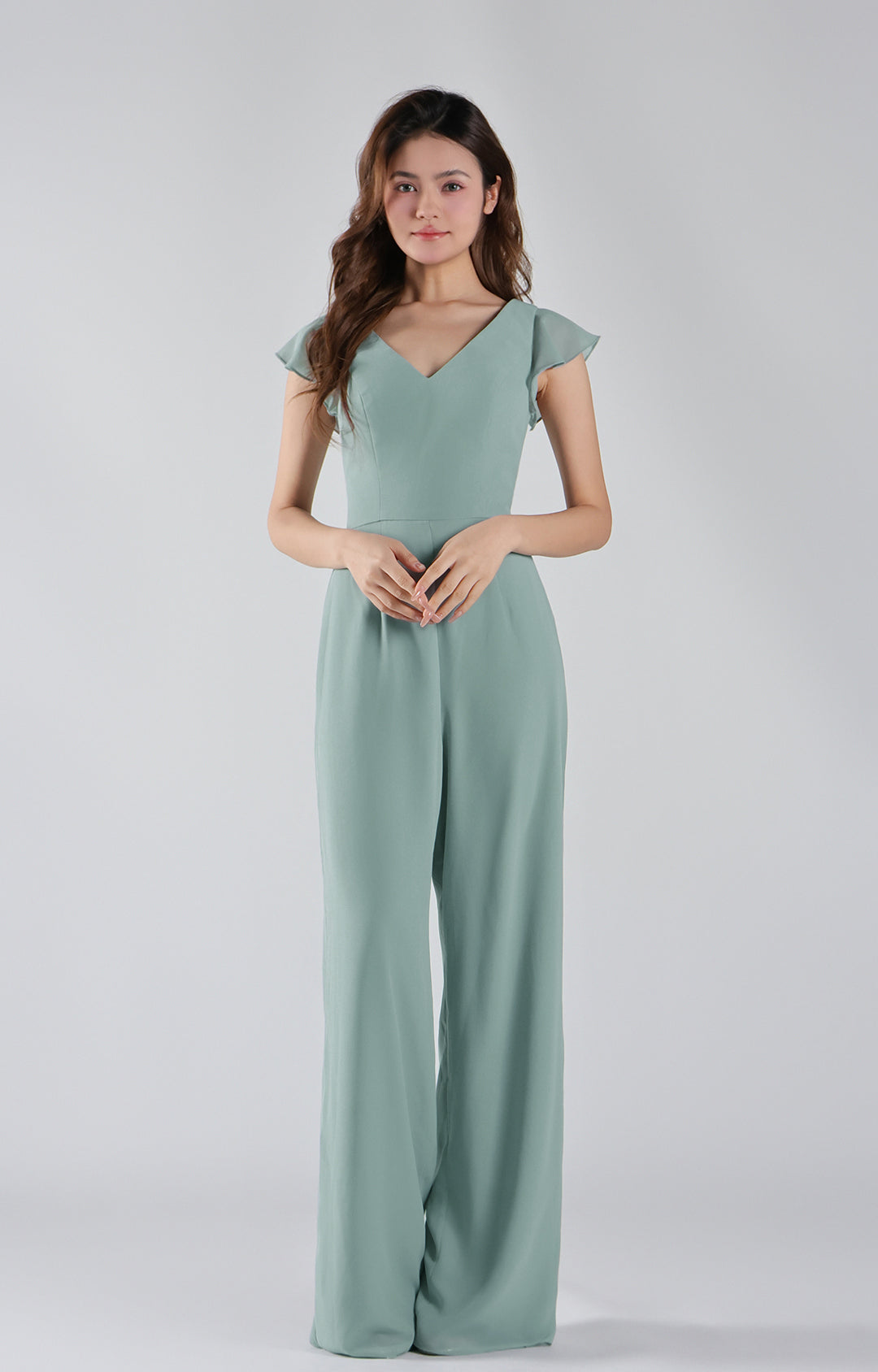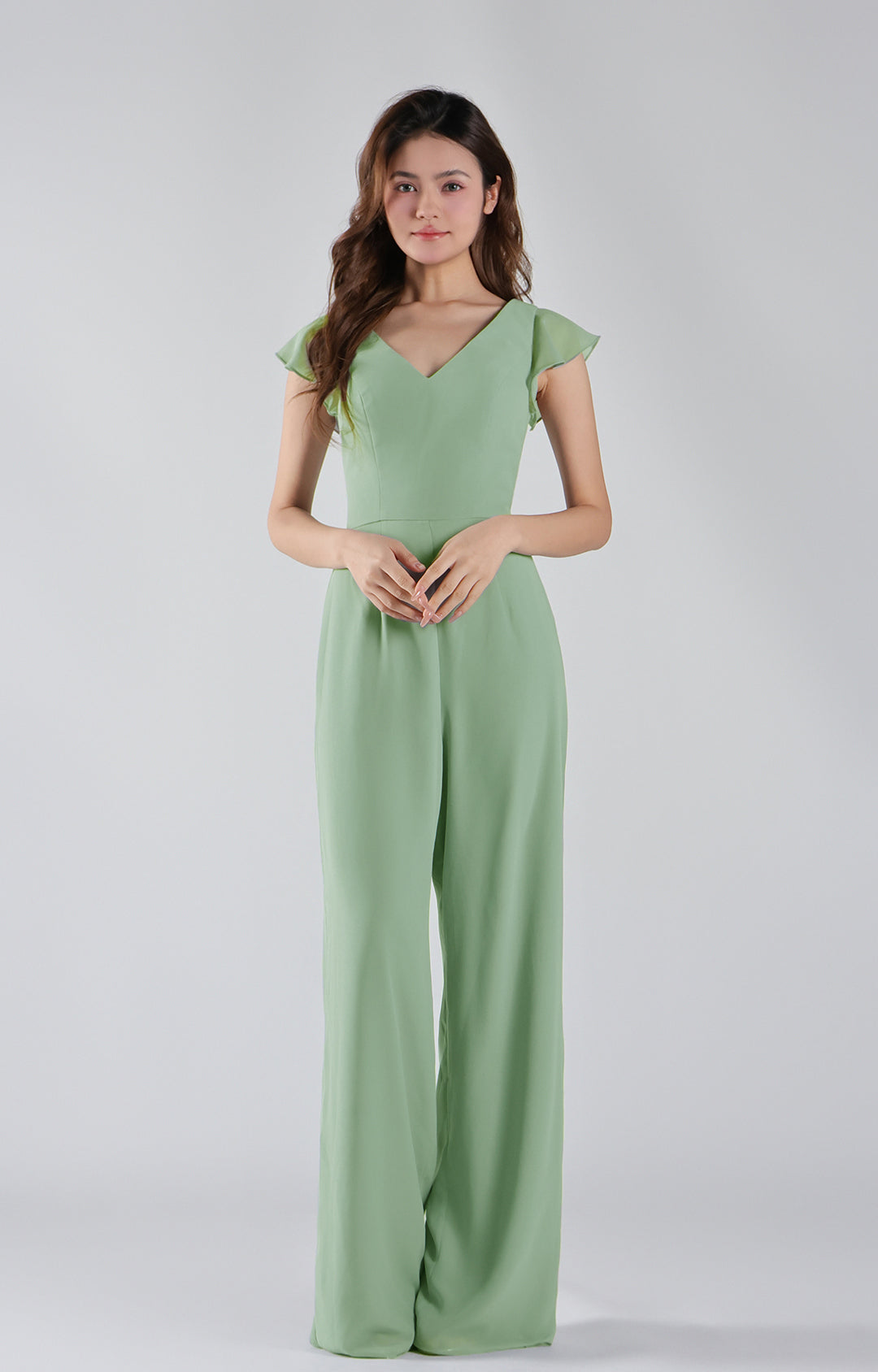 Ideal for spring and summer weddings, elegant daytime parties, or refined casual gatherings, this chiffon jumpsuit brings modern ease to formalwear with its fresh silhouette and timeless grace.