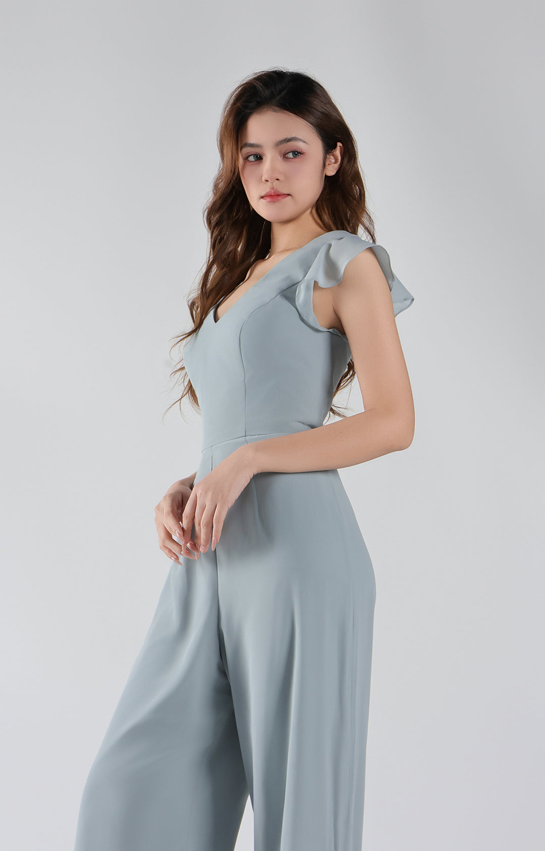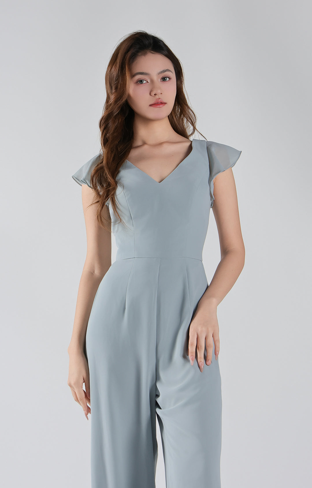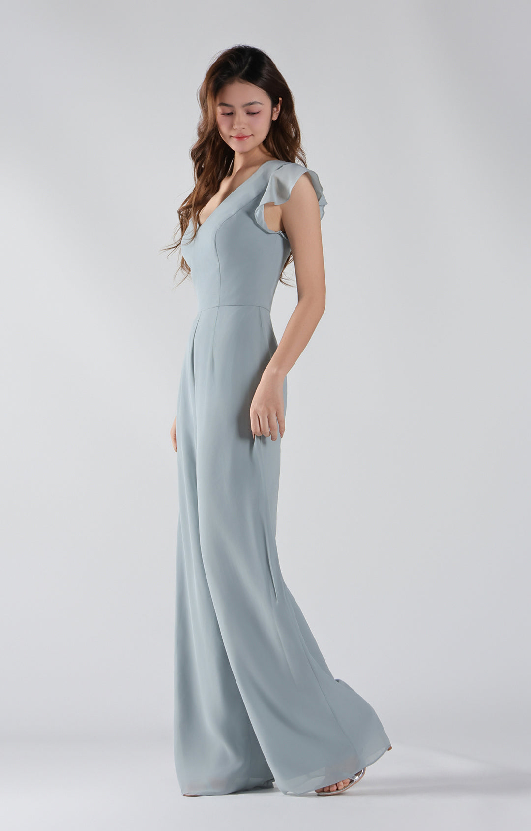 V-Neck Flutter Sleeves Wide-Leg Chiffon Jumpsuit