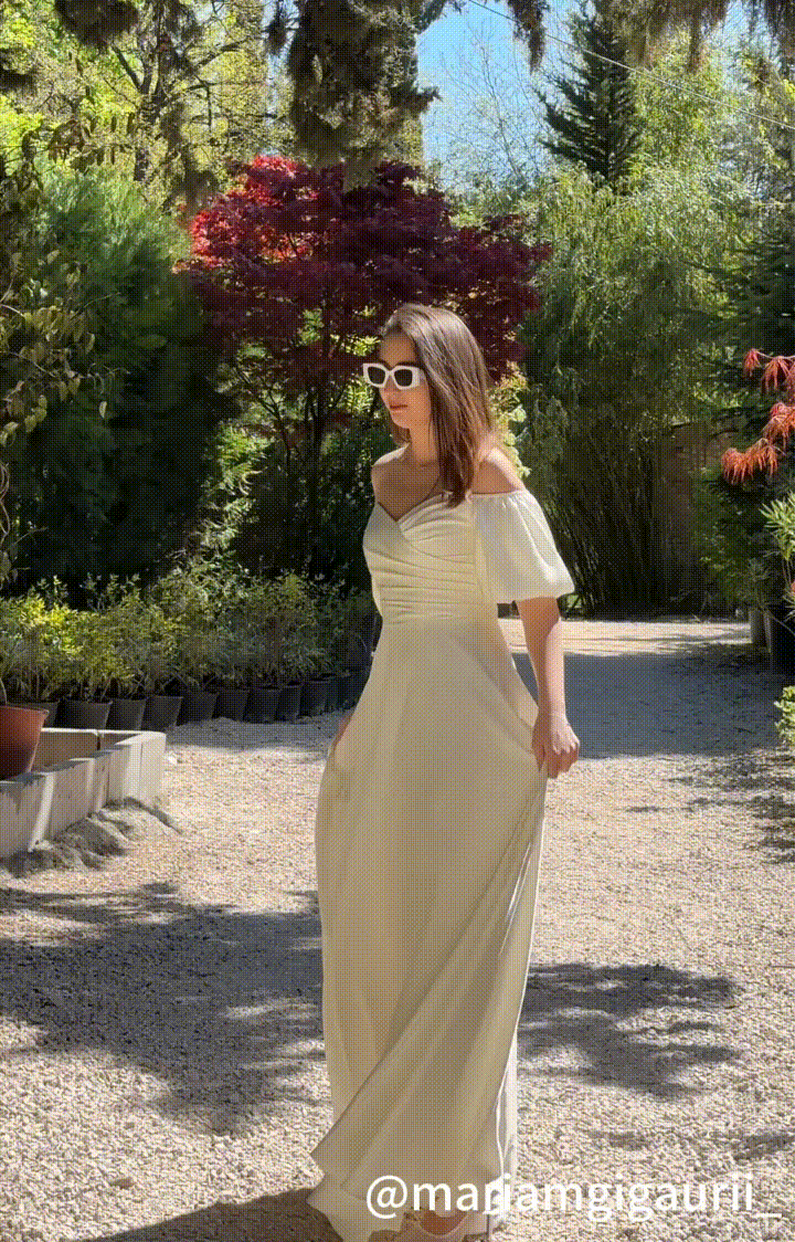 15 reseñasOff-Shoulder Puffy Sleeve Bridesmaid Maxi Dress