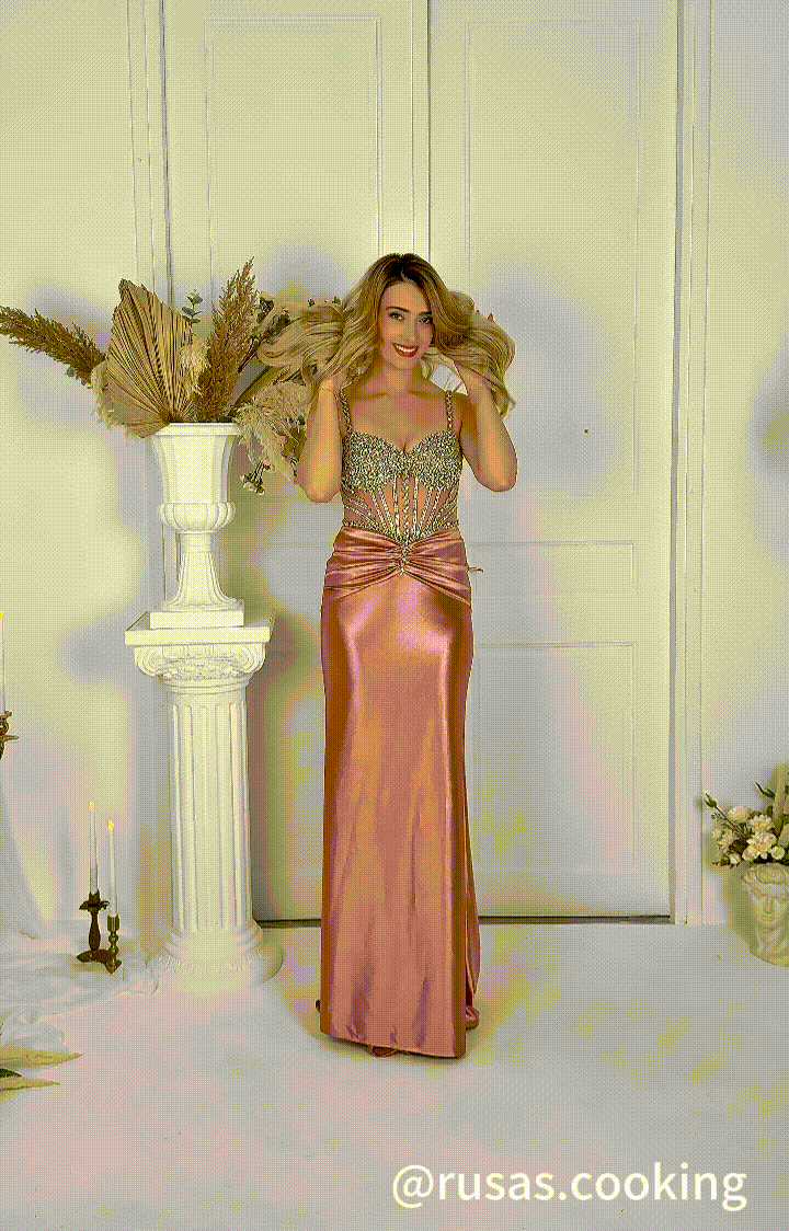 Spaghetti Straps Beaded High Side Split Dresses