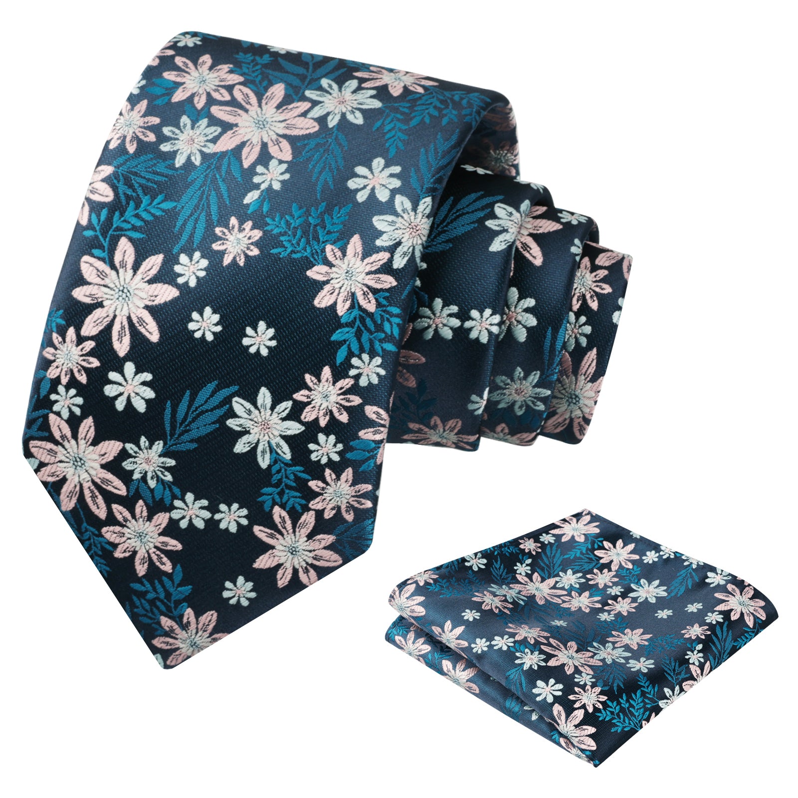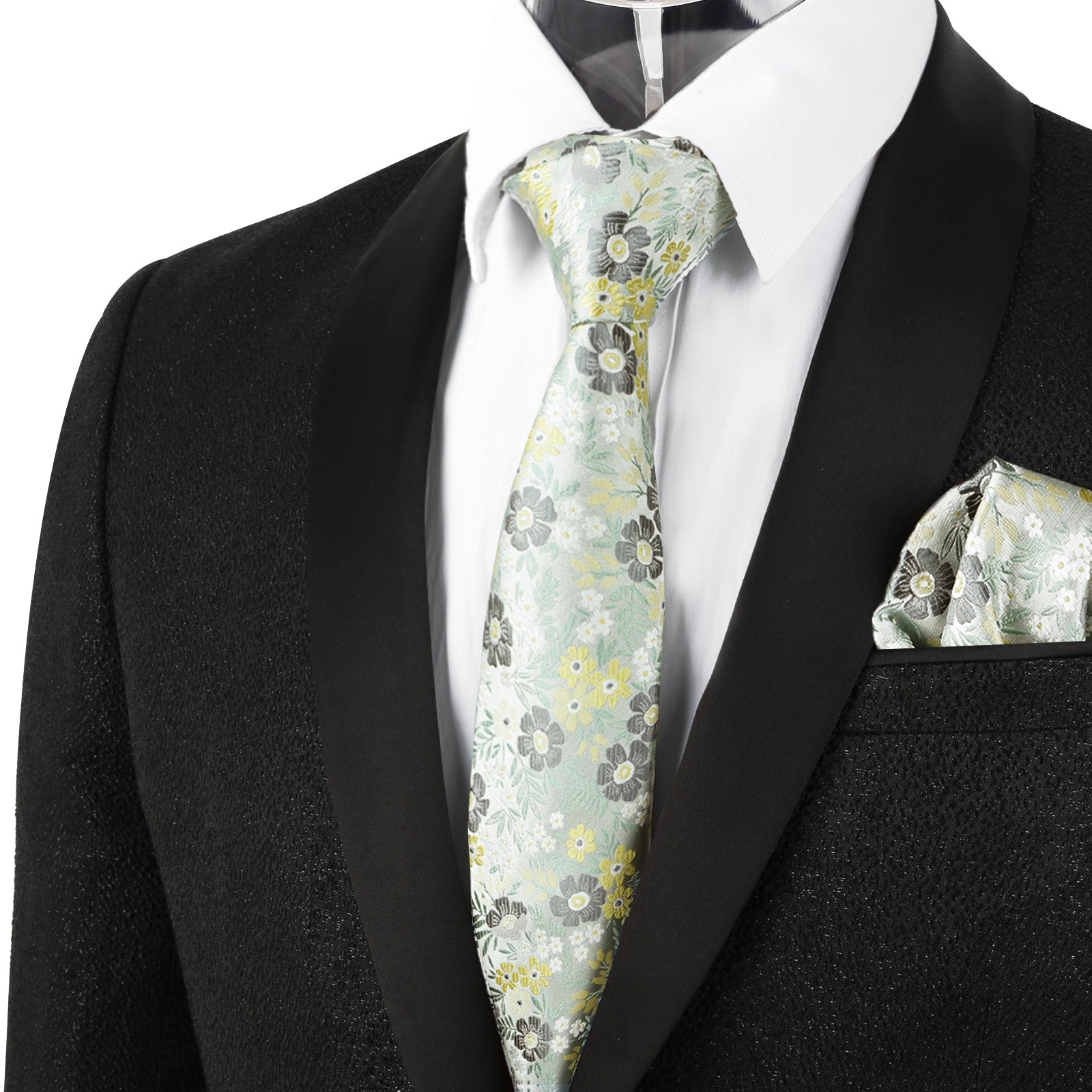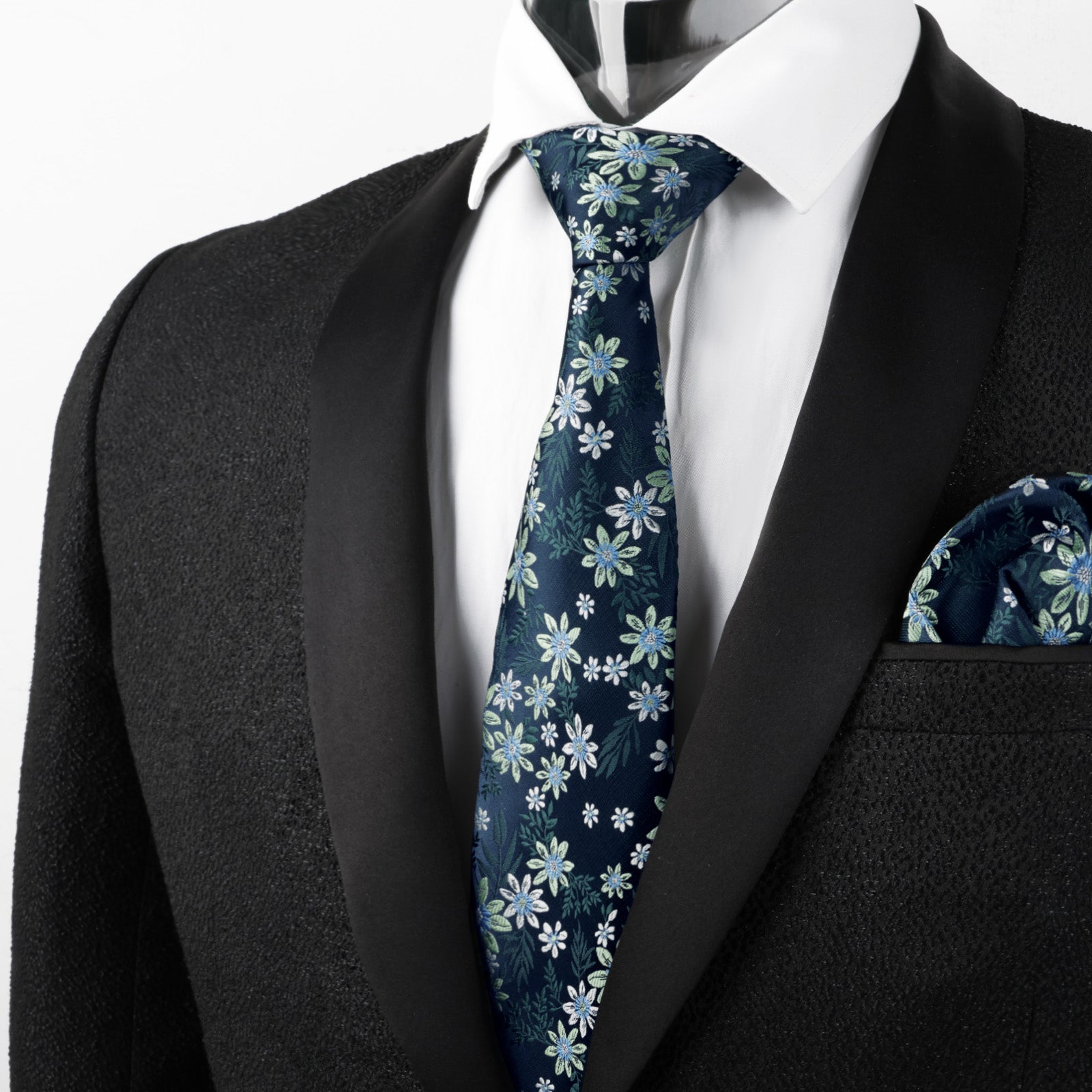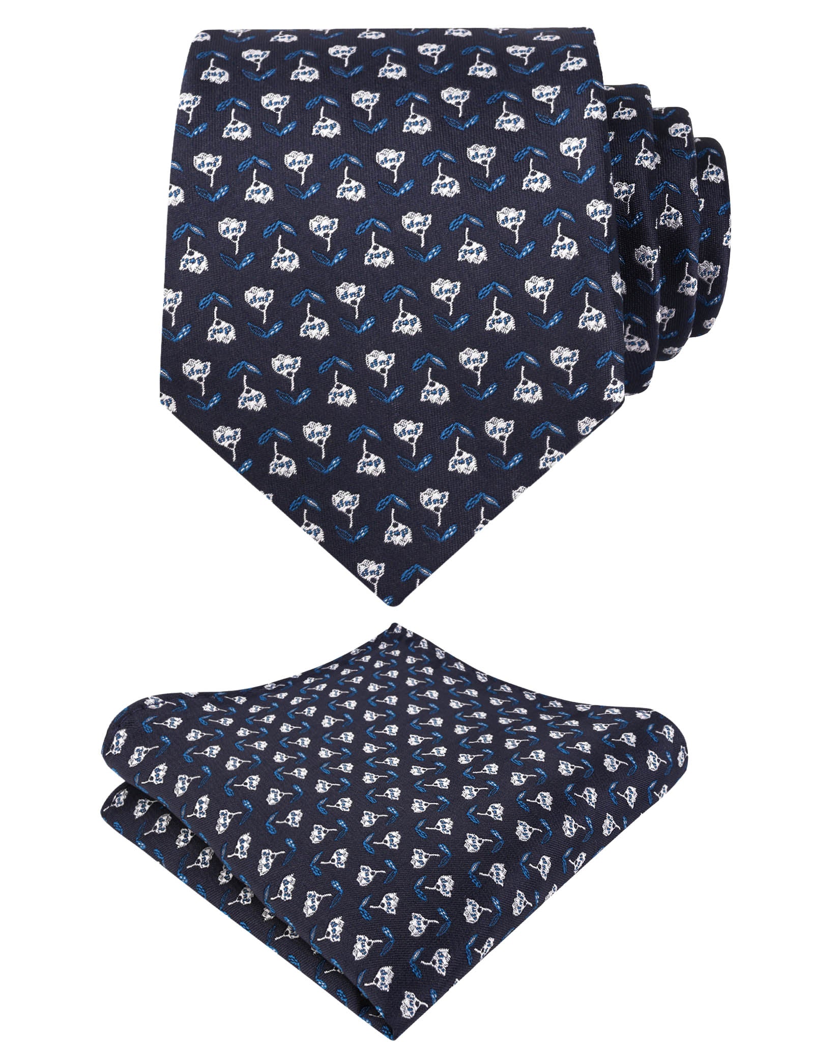 Mens 3.15'' Flower Pattern And Handkerchief Necktie Set-146