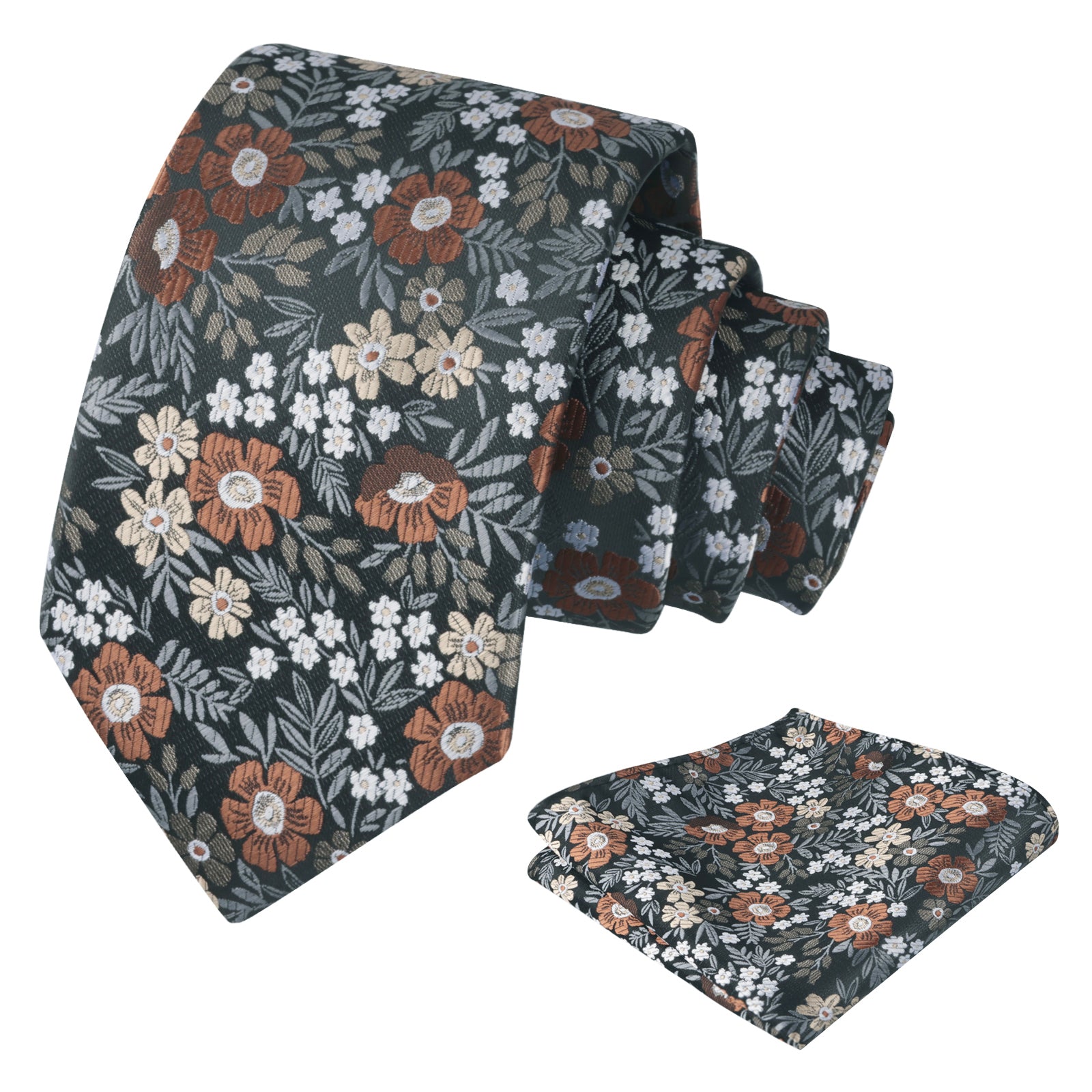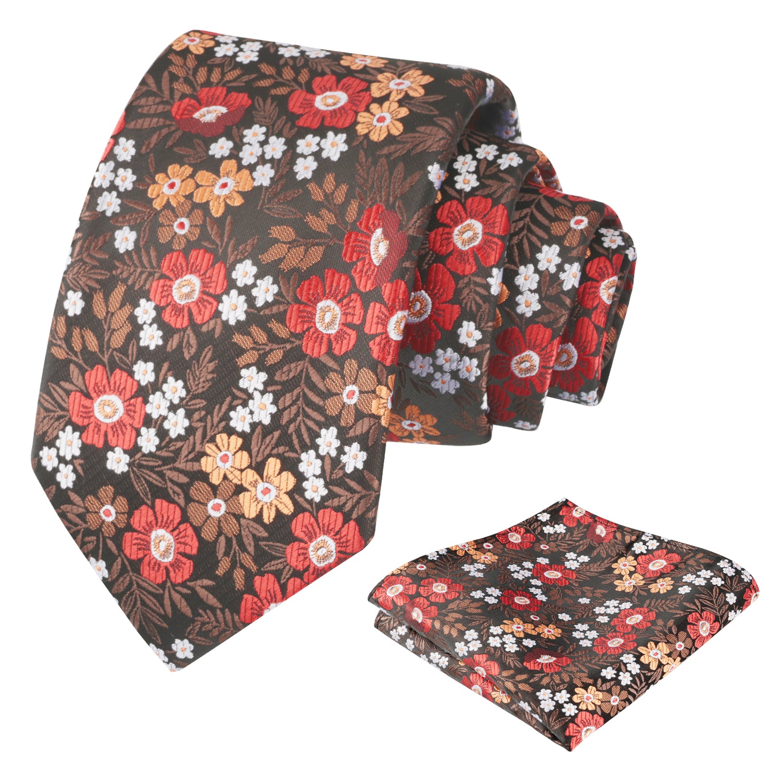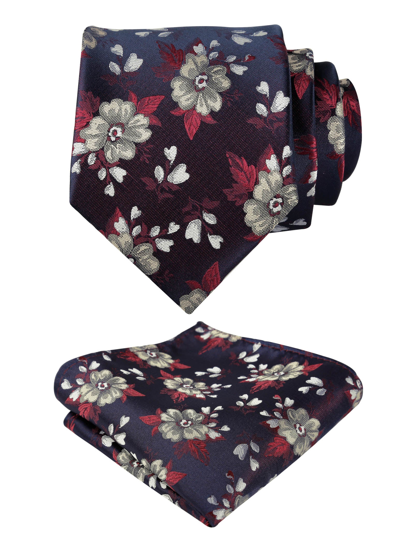 Mens 3.15'' Flower Pattern And Handkerchief Necktie Set-146