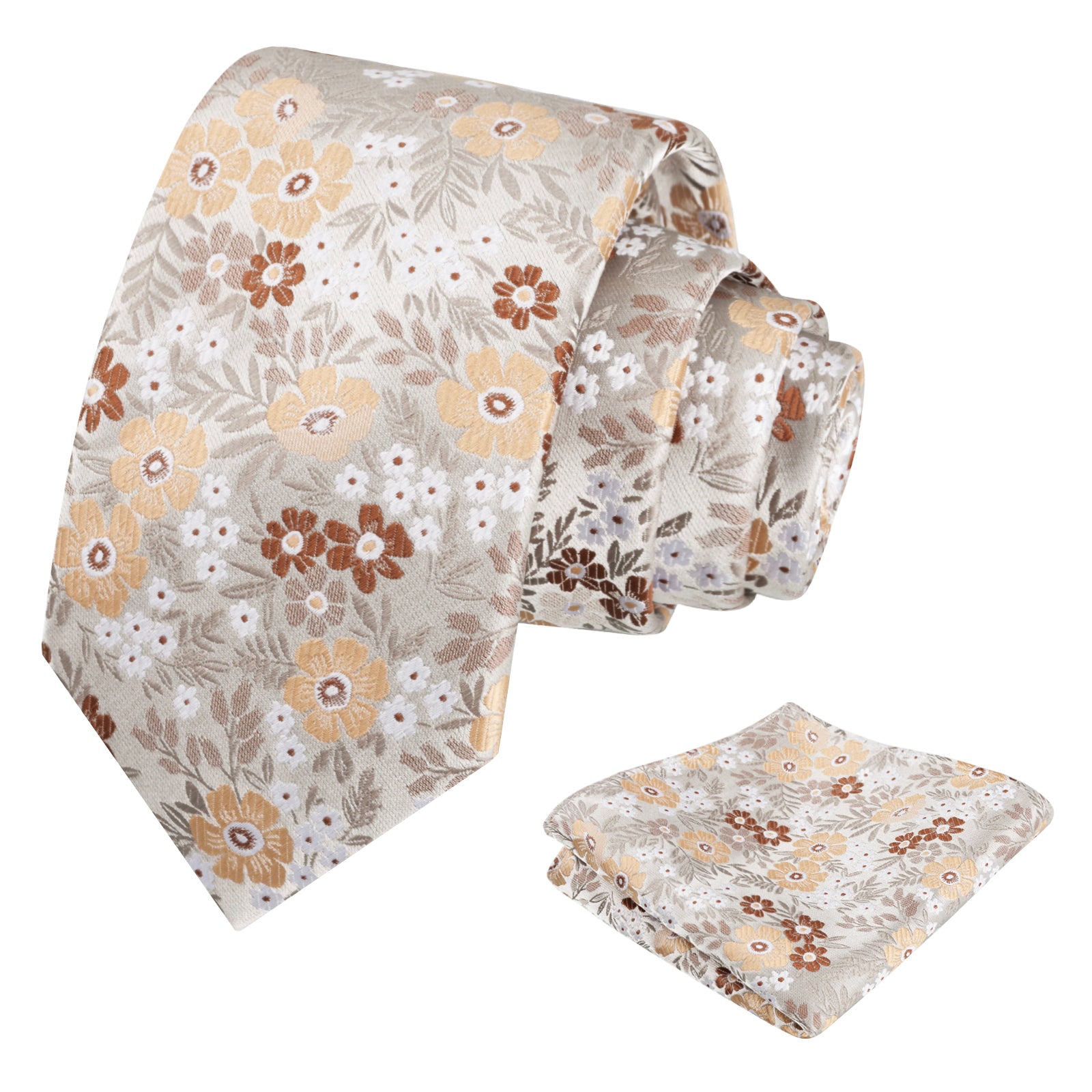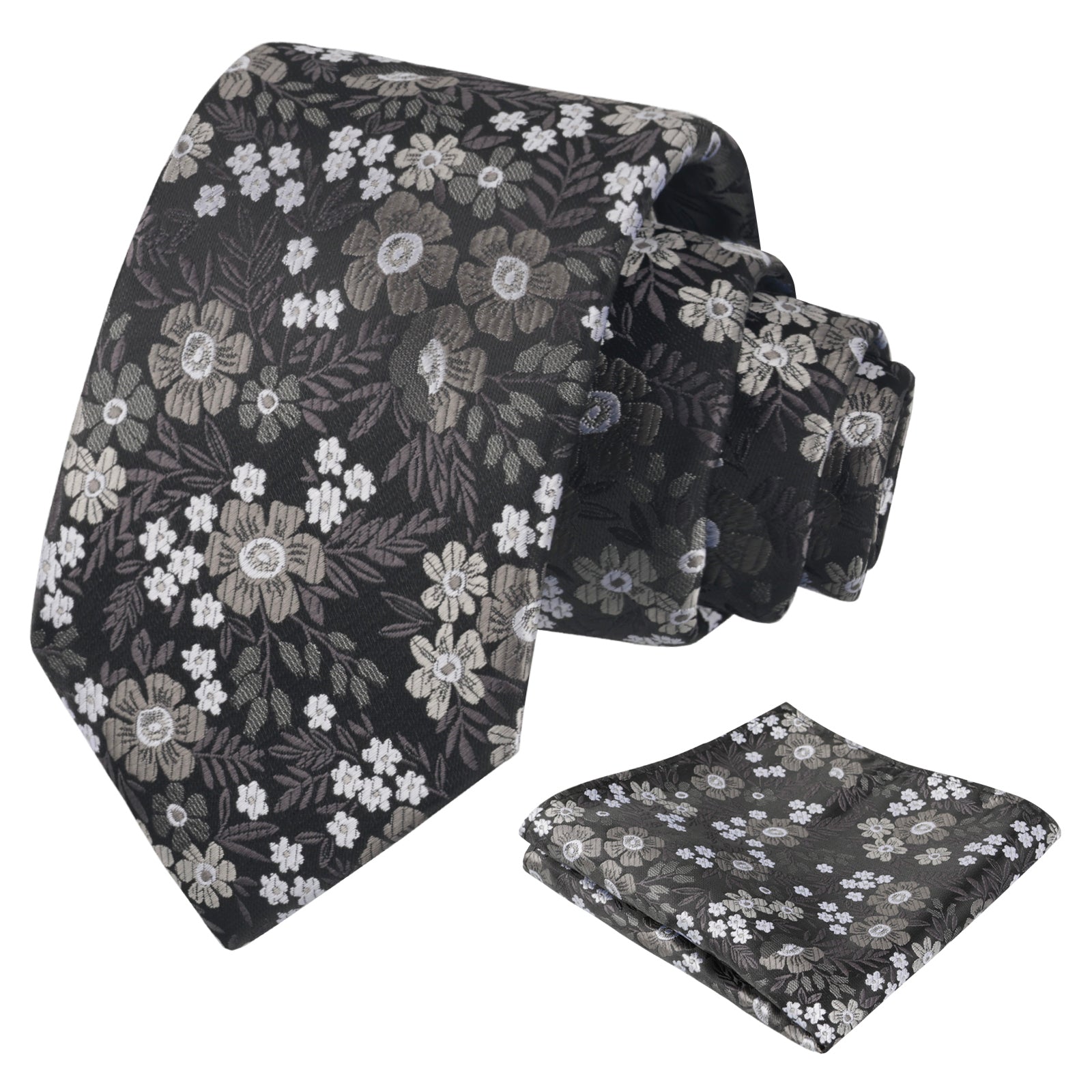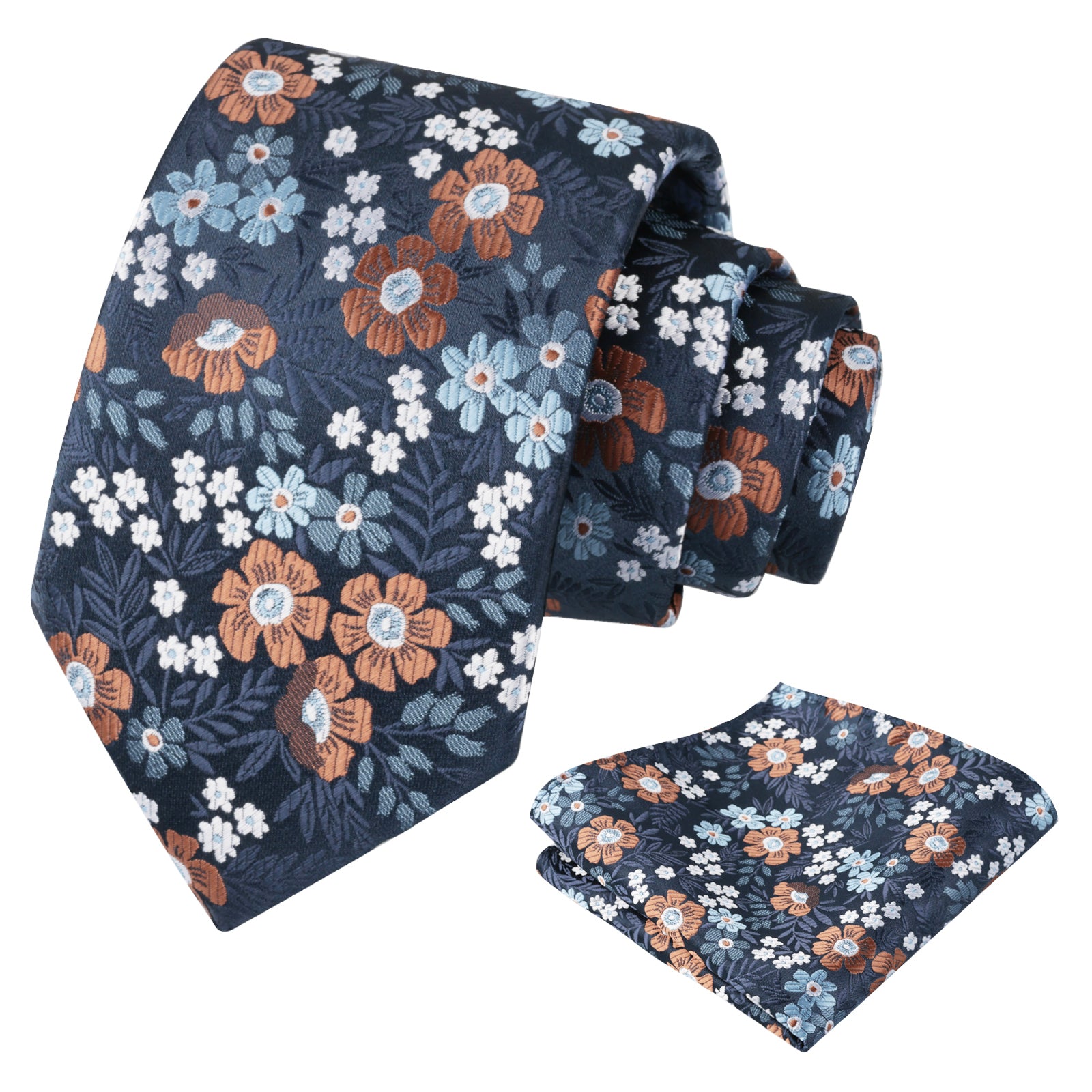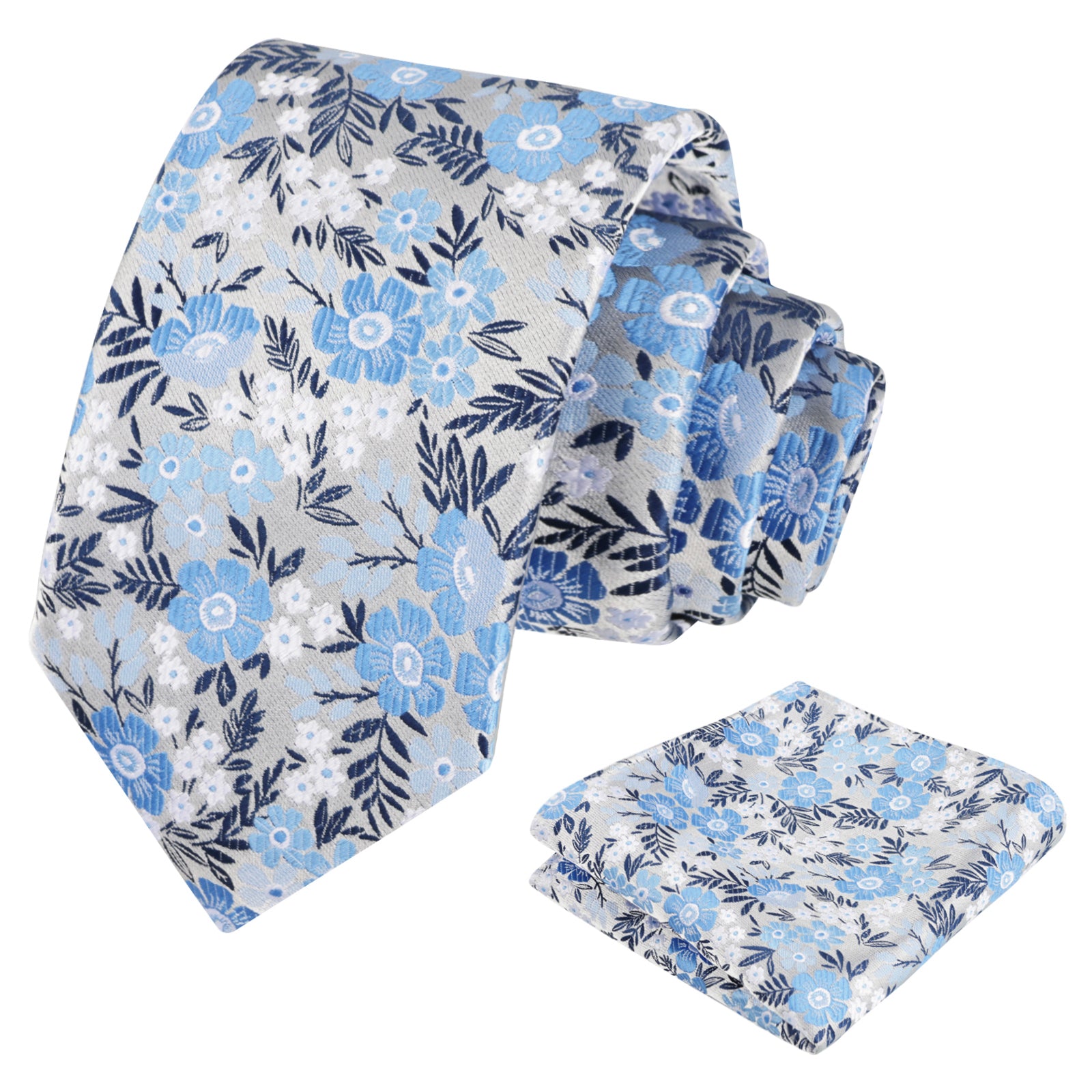 Mens 3.15'' Flower Pattern And Handkerchief Necktie Set-146