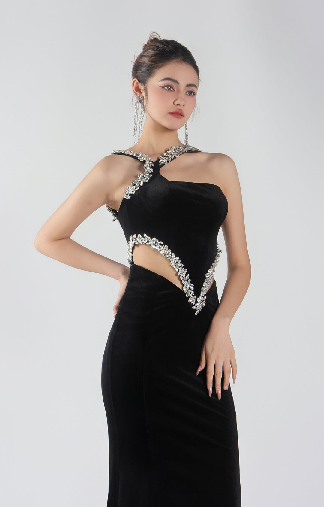 Deep V-Neck See-Through Cut-Outs Waist Mermaid Dress
