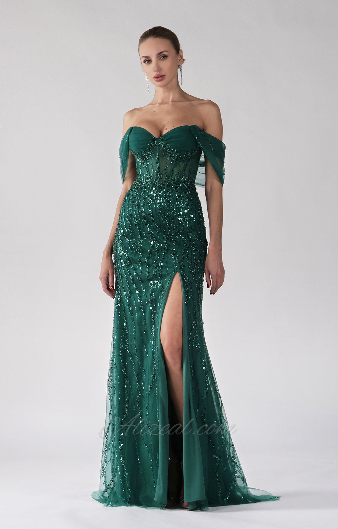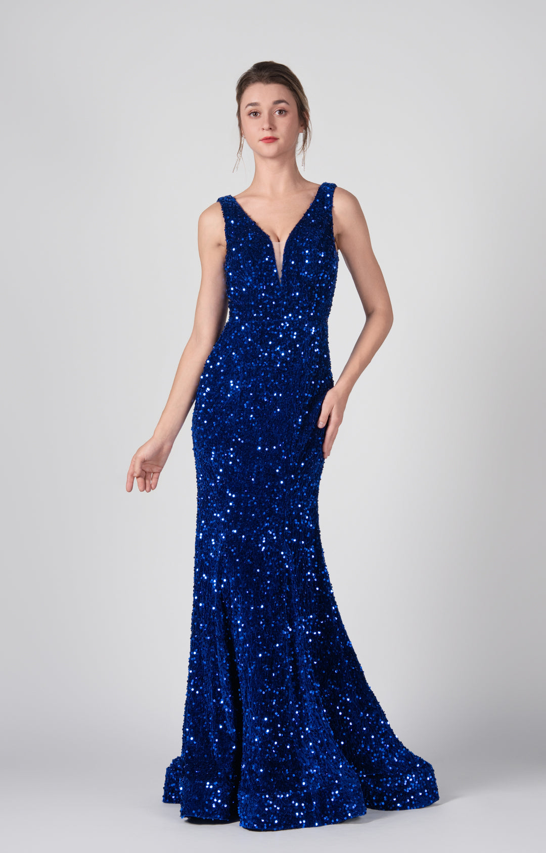 Deep V-Neck Sequin Wrap-Hip Mermaid Dresses