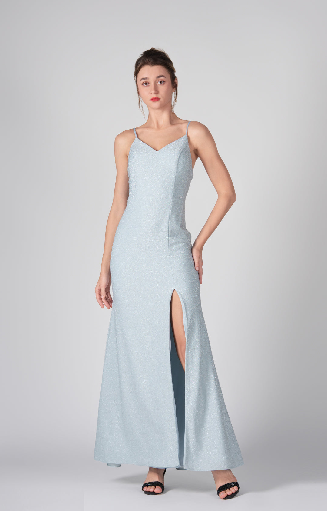 Adjustable Spaghetti Straps V-Neck Party Dress With High Side Slit