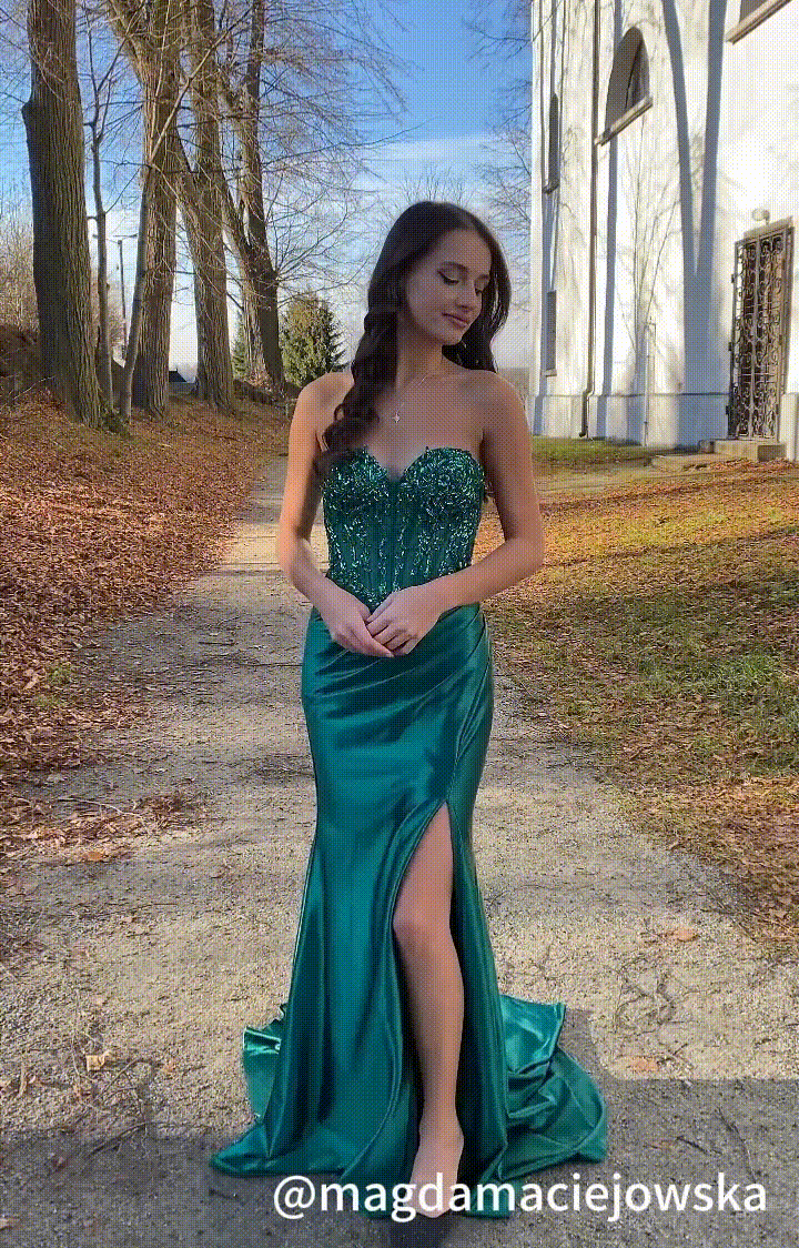 Sweetheart Collar High Side Split Sweep Train Satin Evening Dress