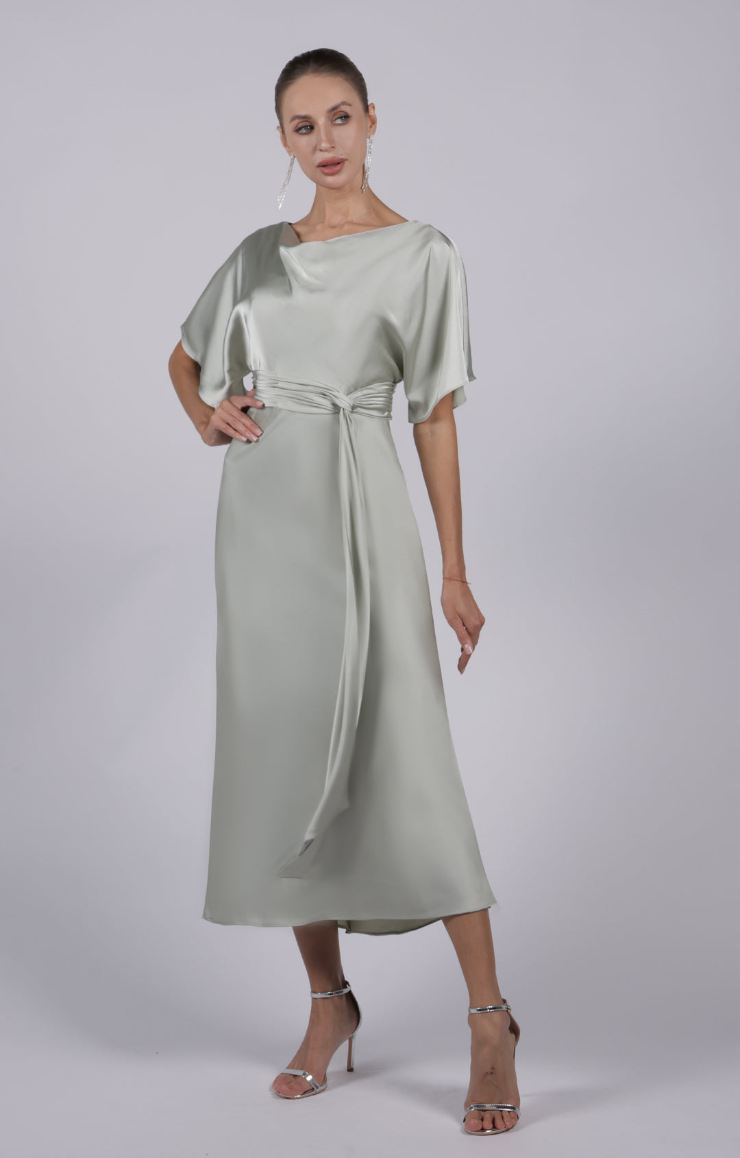 Round Neck Draped Sleeves Tie Detail Dresses