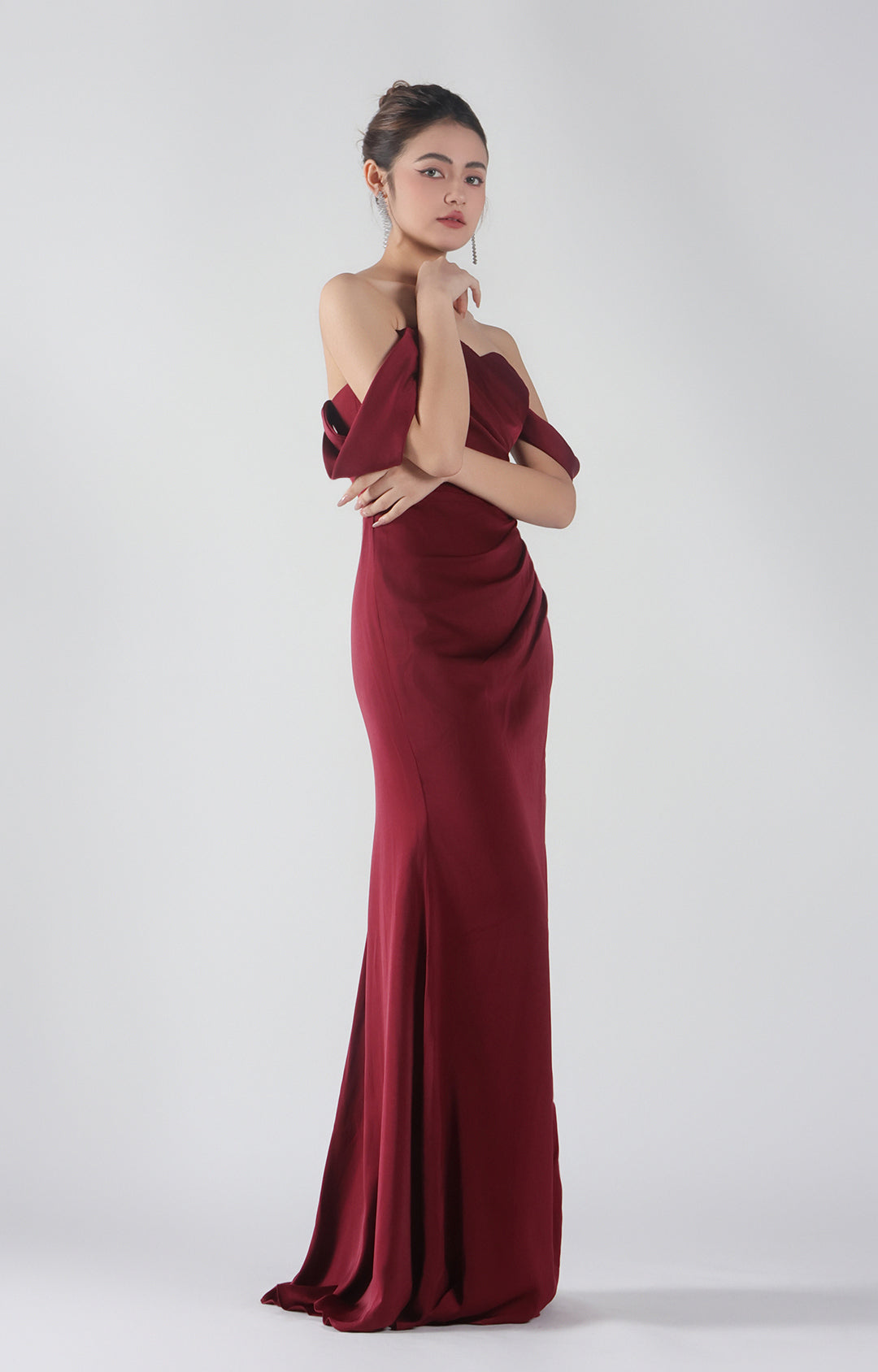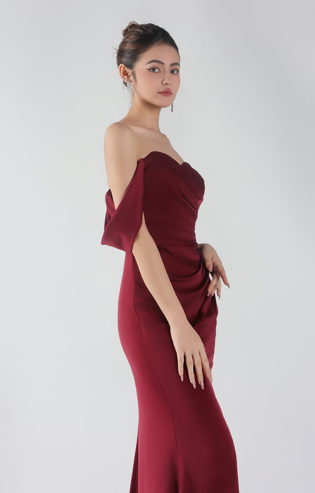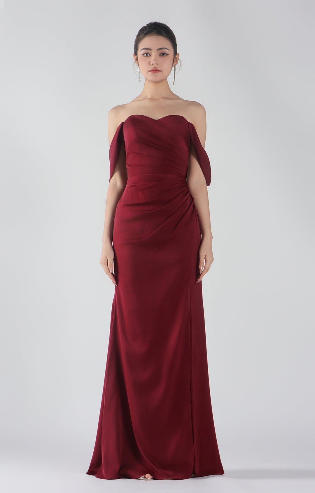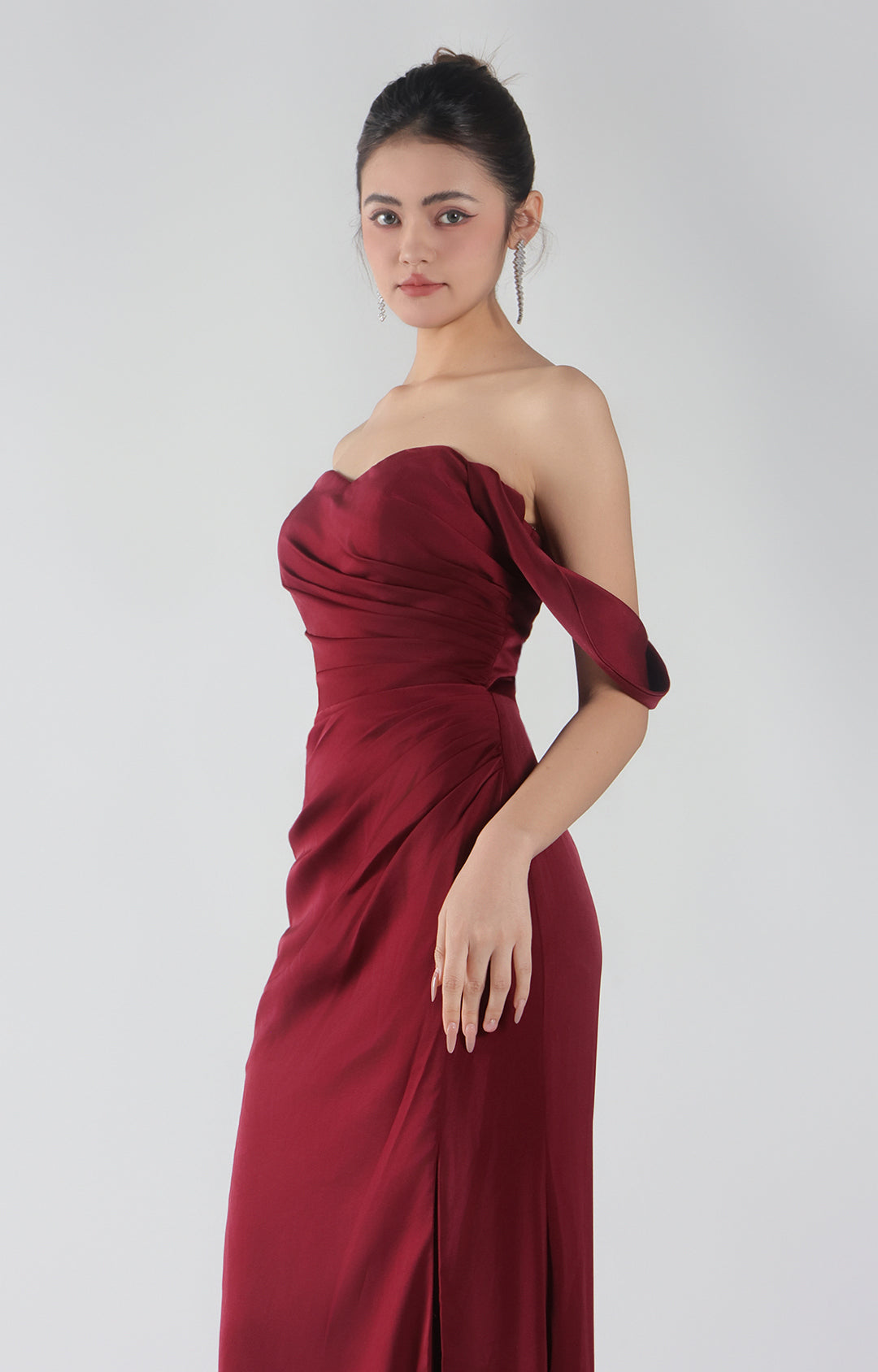 Heart Collar Drop Shoulder Pleats Side Split Maxi Dress