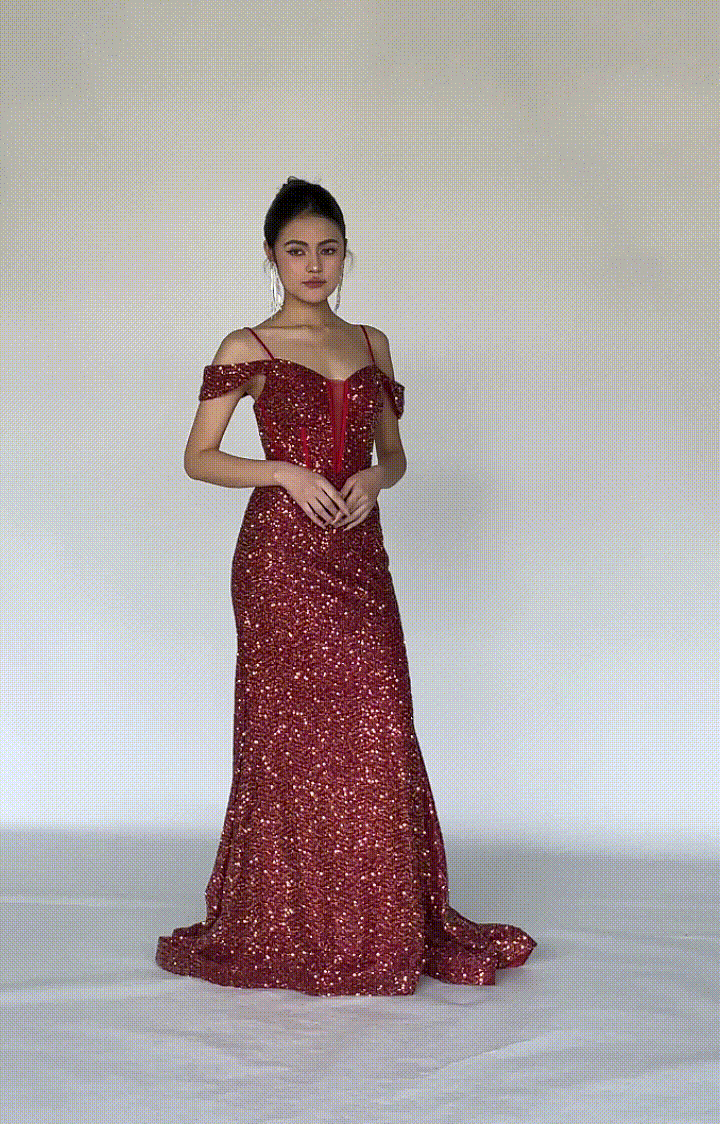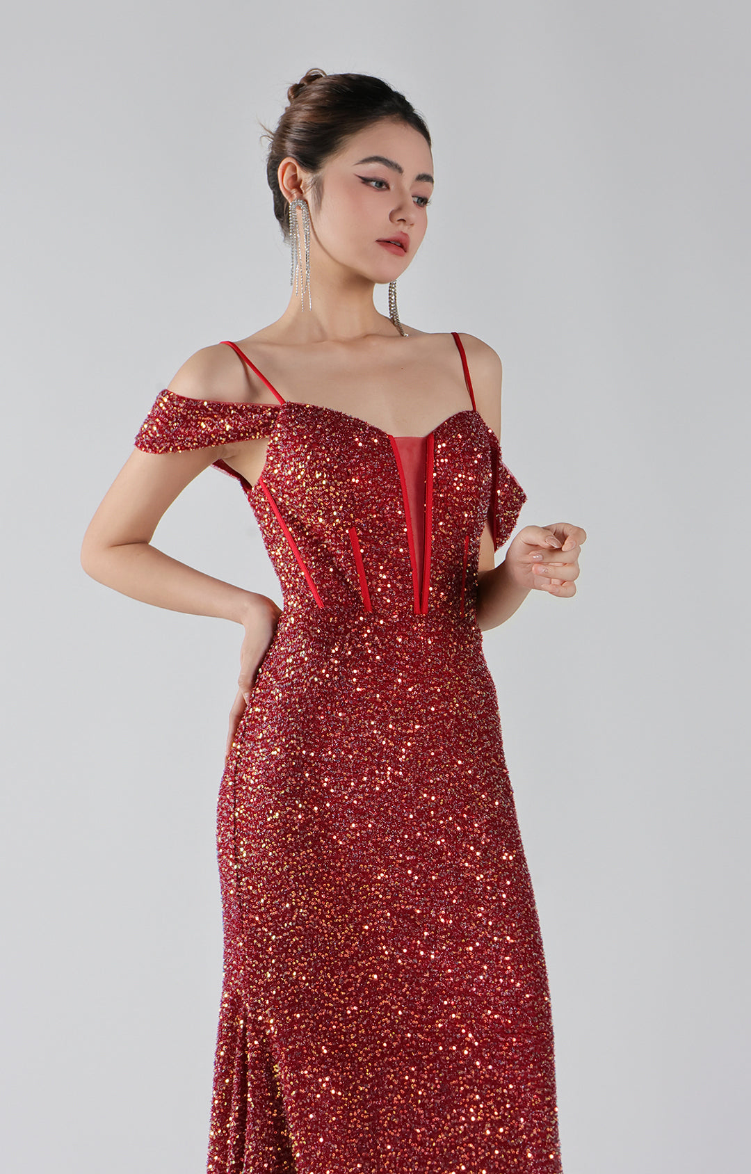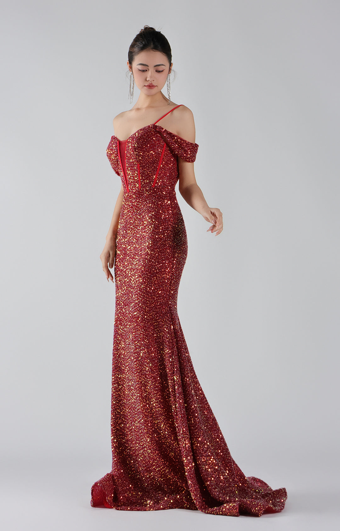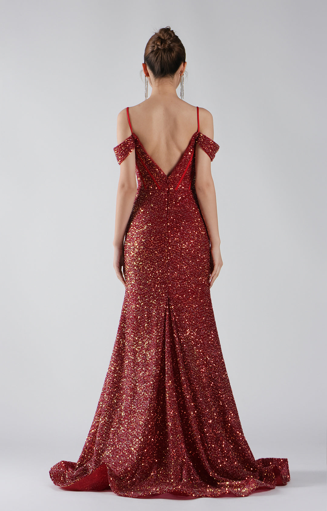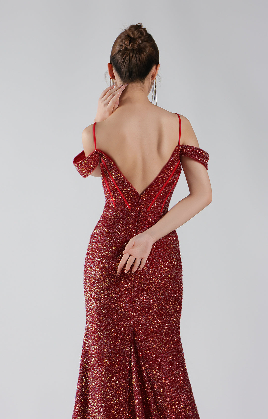 Sequin Drop Shoulder Backless Mermaid Evening Dress