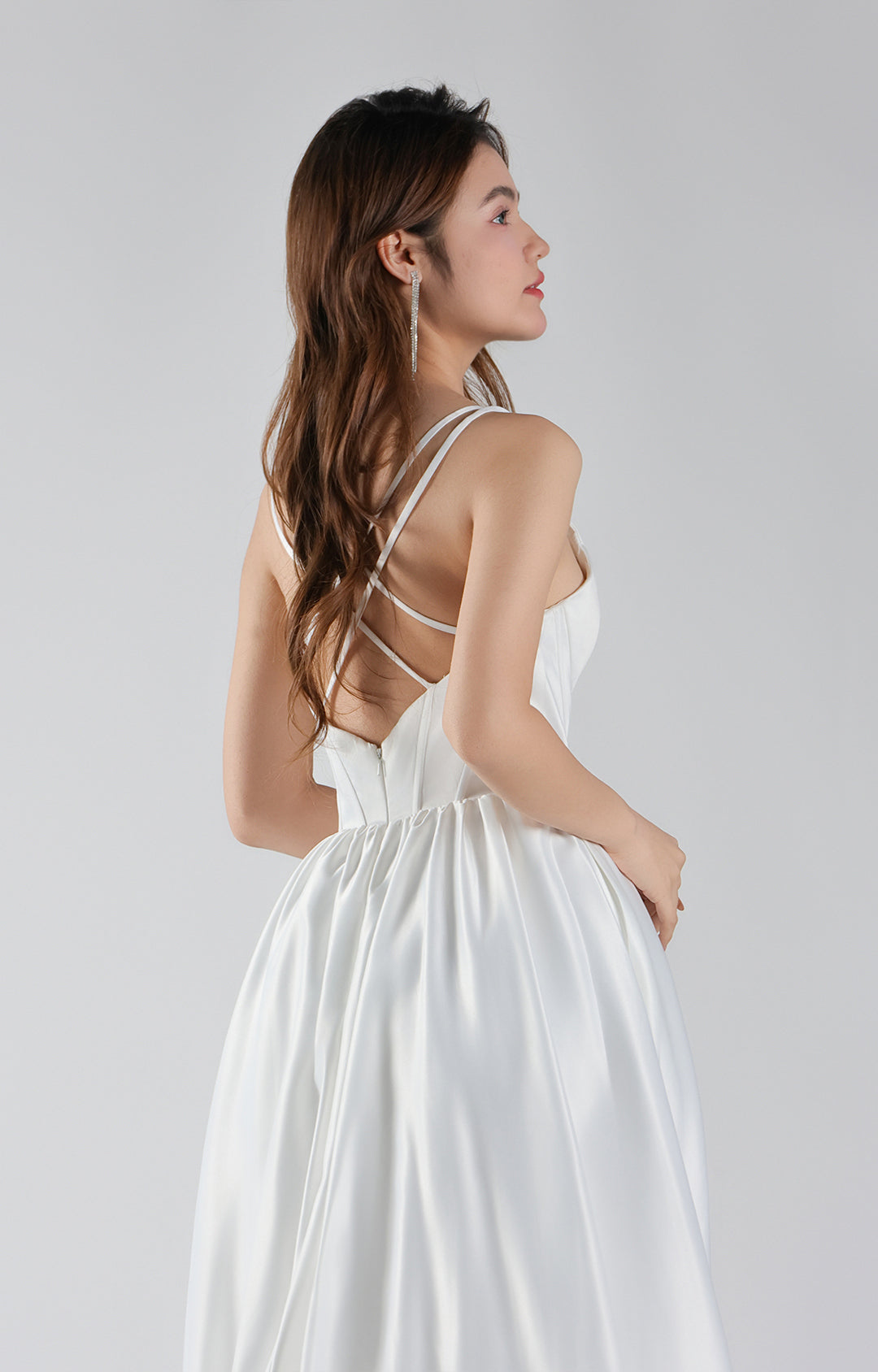 V-Neck Cross Adjustable Straps Bodice A-Line Dresses
