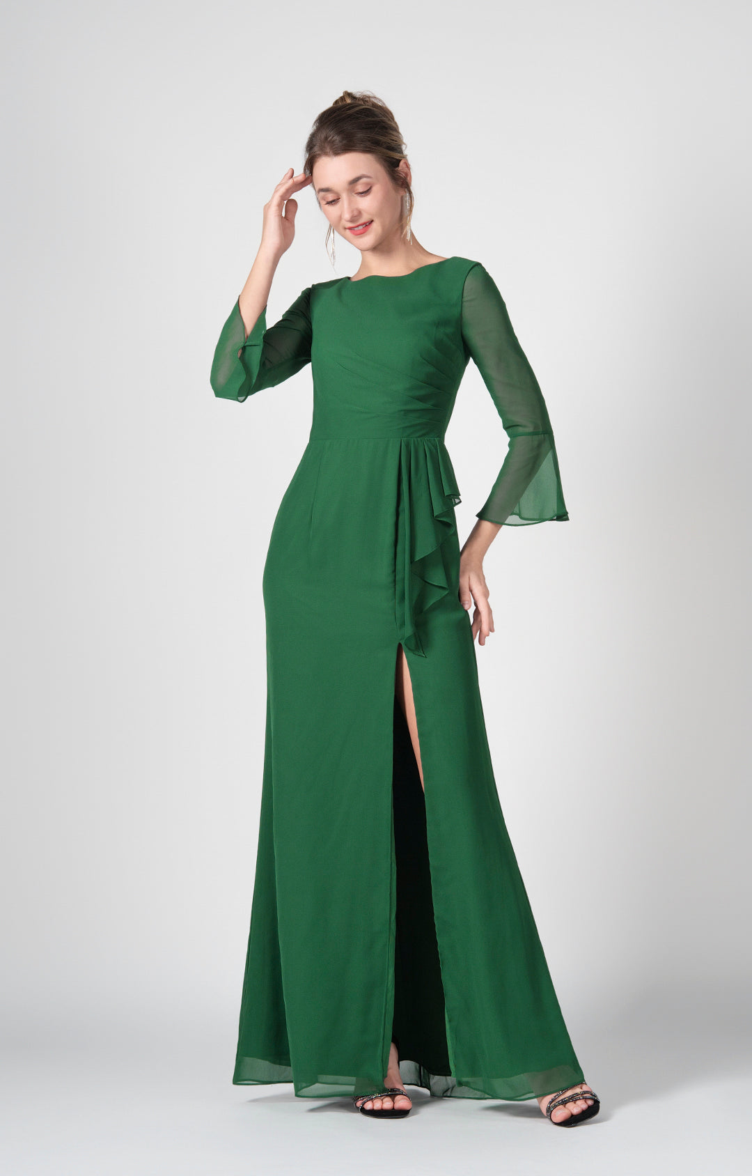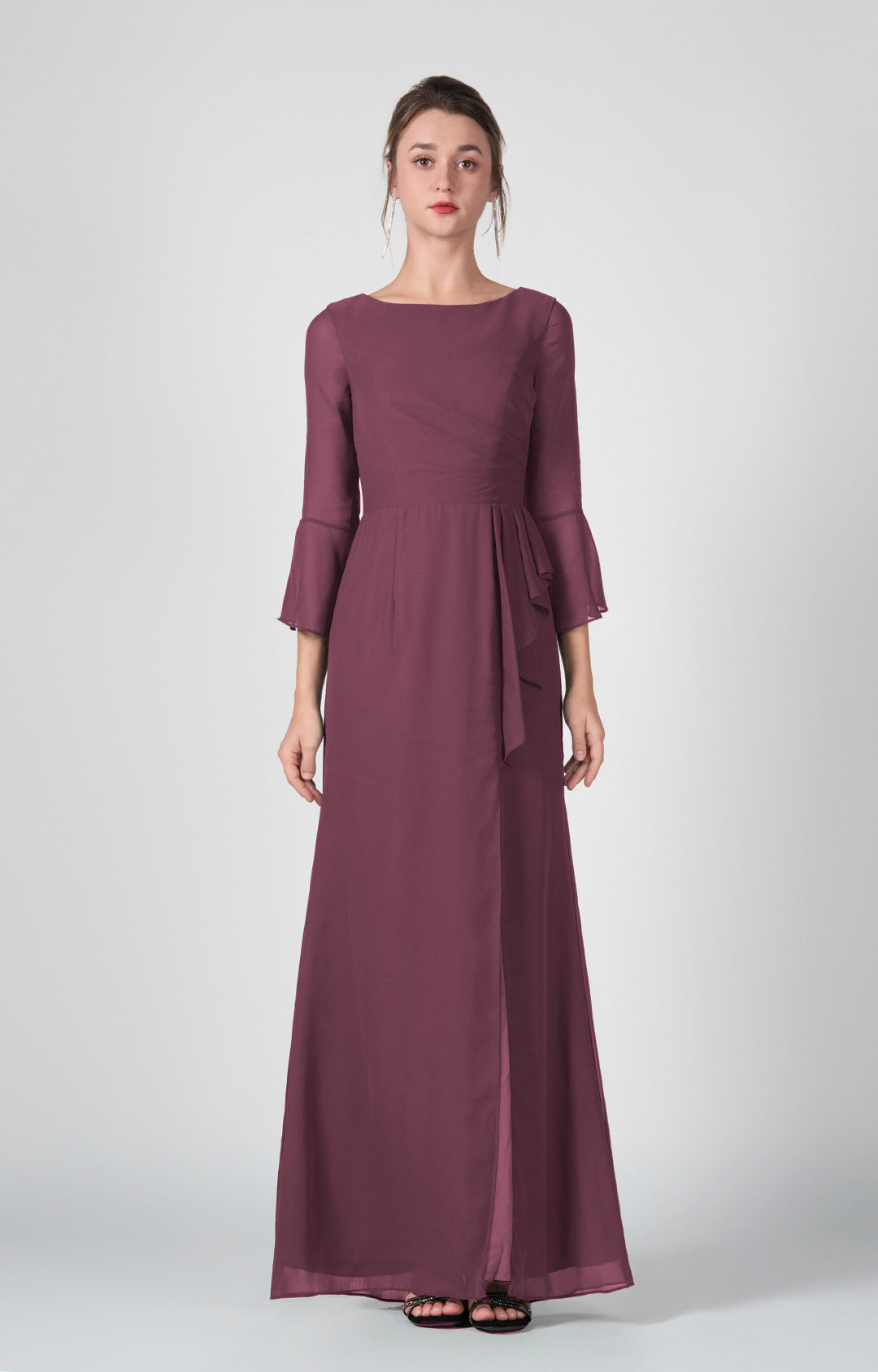 Bateau Neck Sheer Sleeve Split Maxi Dresses