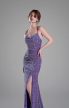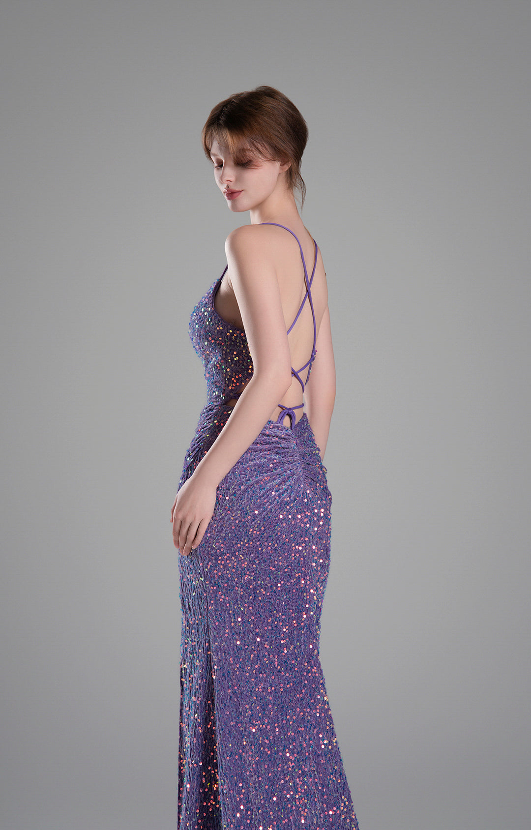 Cowl Neckline Eye-Catching Sequin Lace-Up Dresses