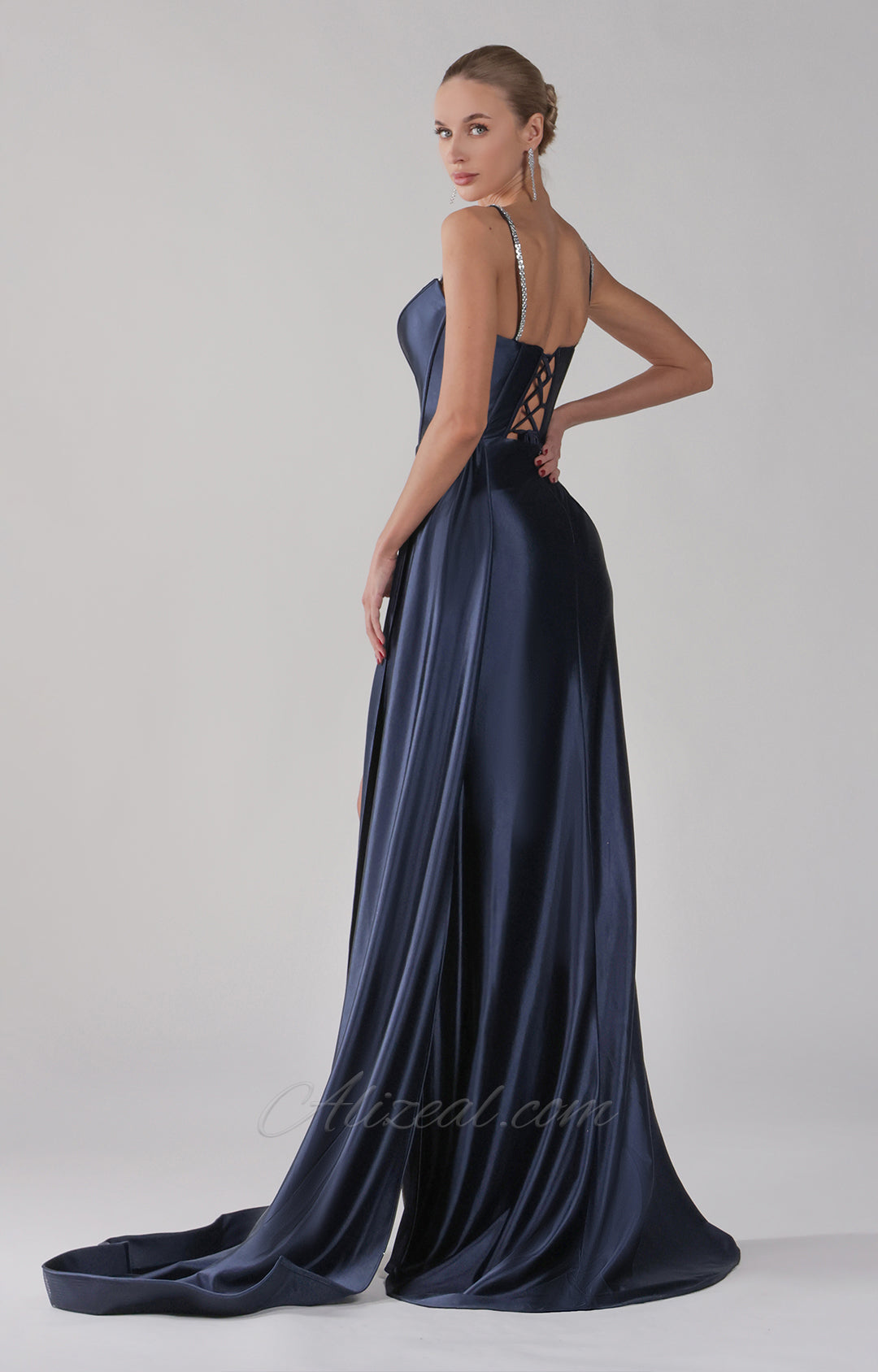 The satin fabric has a smooth texture and a natural sheen that gives off a stunning glow in the light.