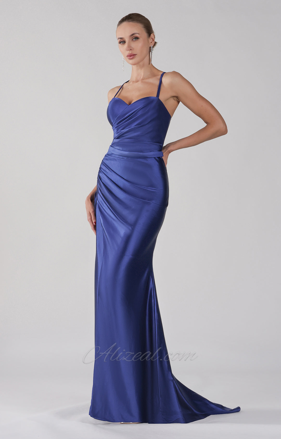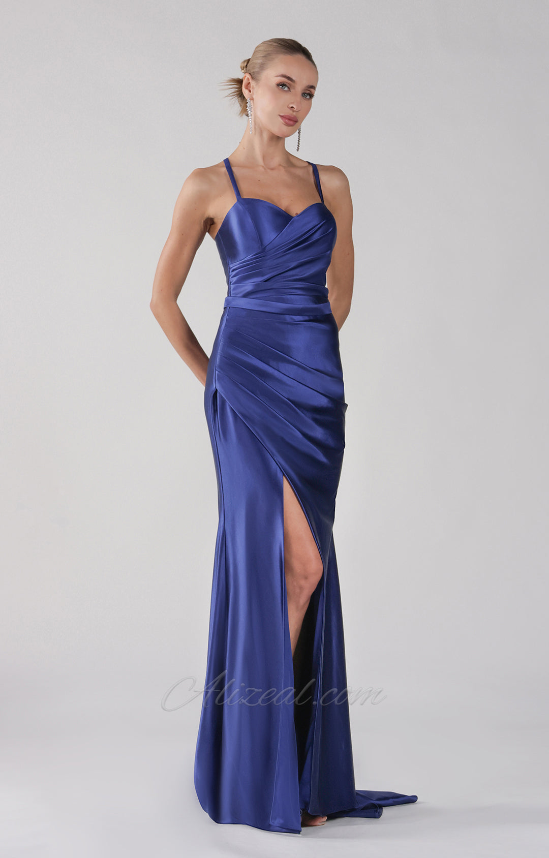 Spaghetti Straps Ruched Pleated Split Lace-up Dress