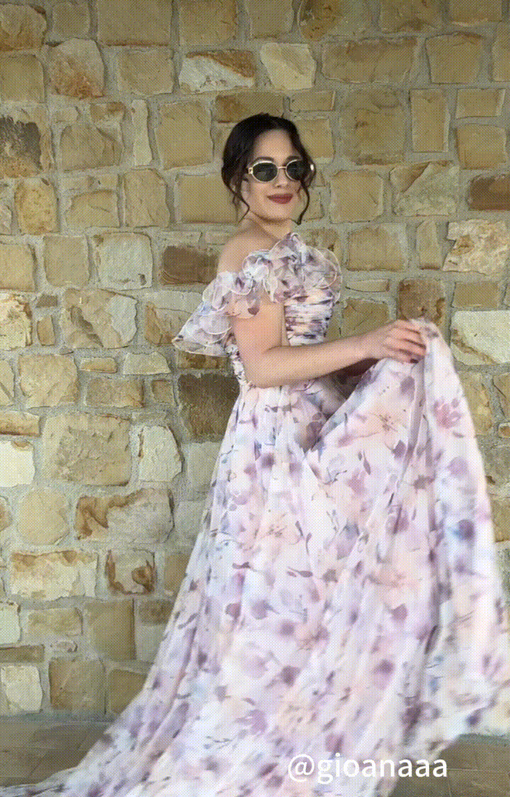 Off-shoulder Ruffle-trim Sheer Side A-line Floral Print Dress