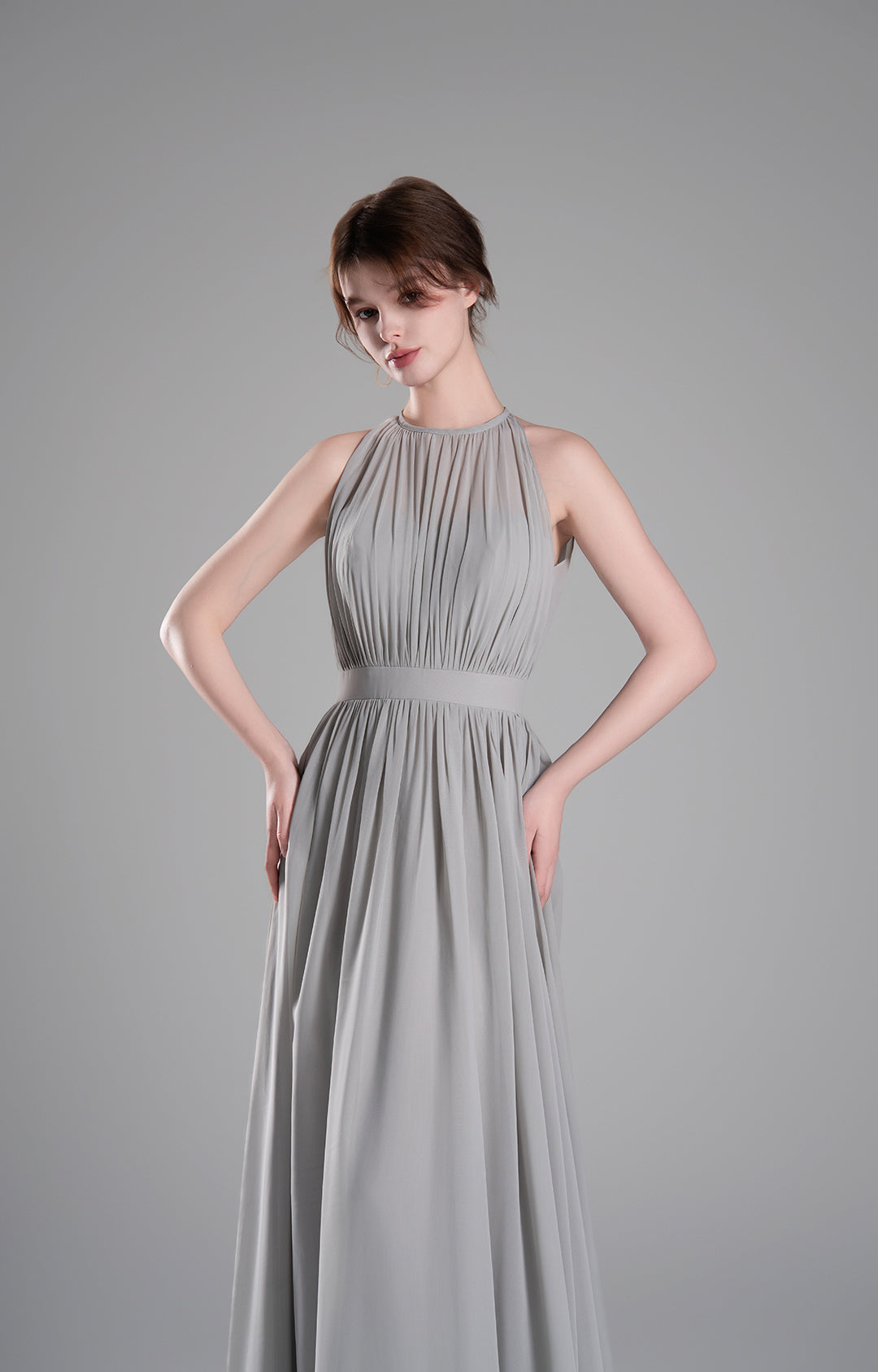 Halter Neckline Pleated Cinched Waist Dresses