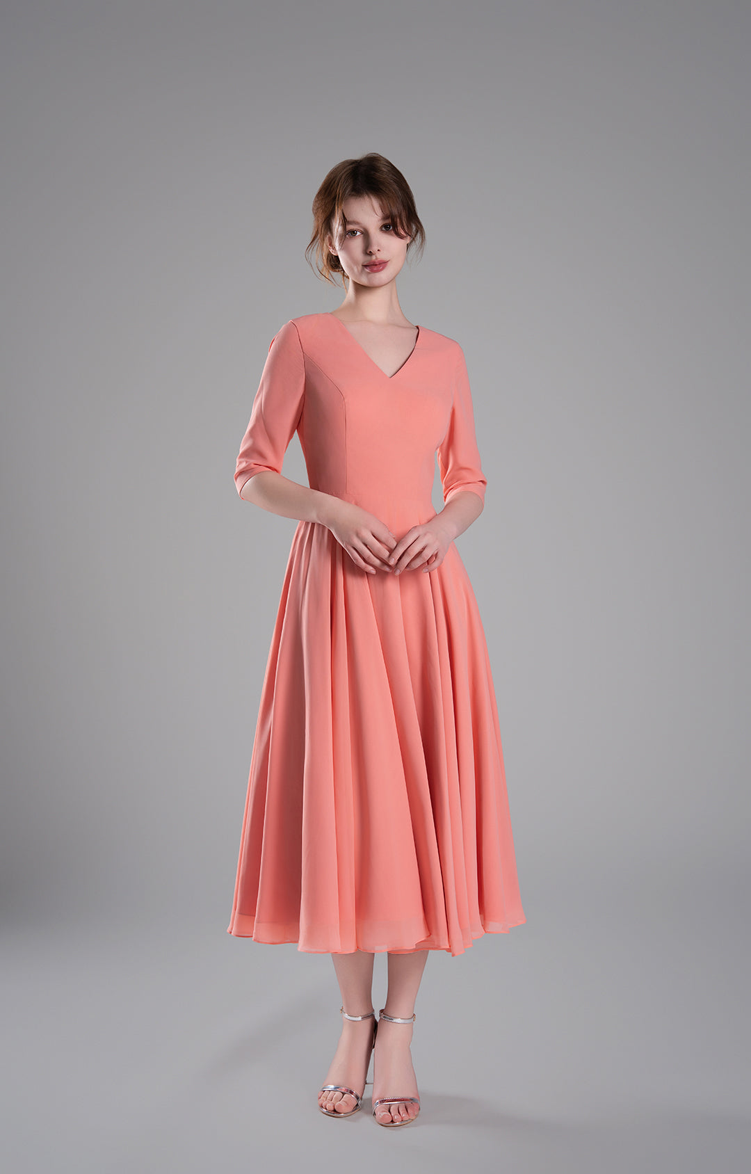 8 reseñasElegant Chiffon Midi Dress with 3/4 Sleeves