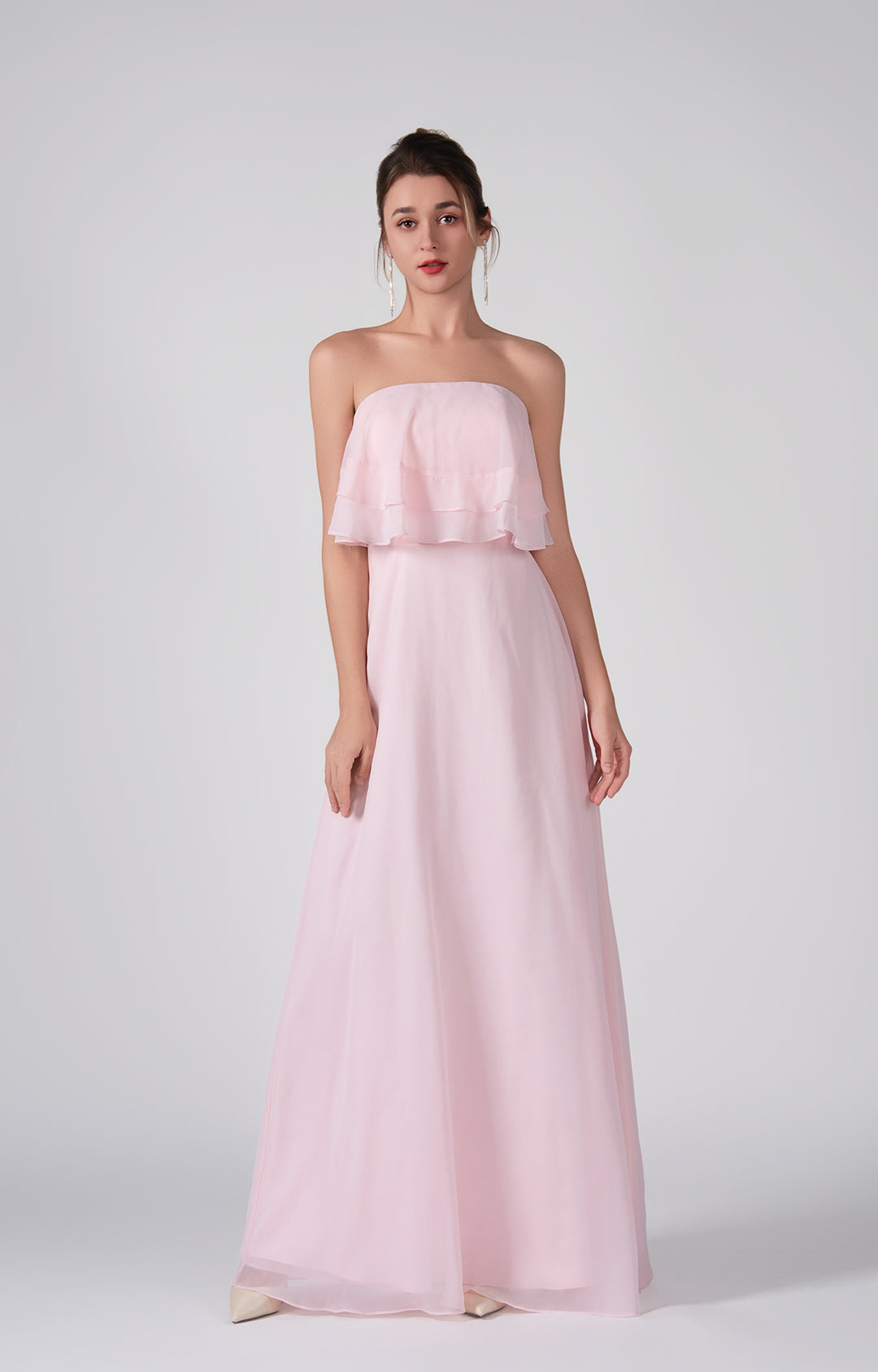 Strapless Ruffles A-Line Floor-Length Chiffon Dress