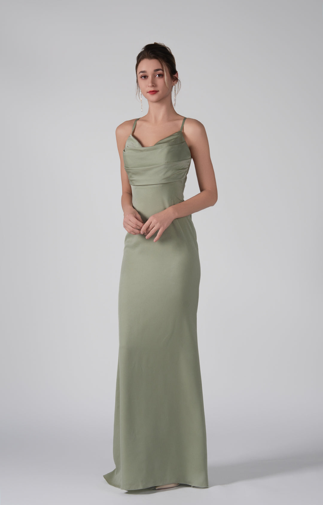 Spaghetti Straps Cowl Neck Ruffles Sheath Maxi Dress