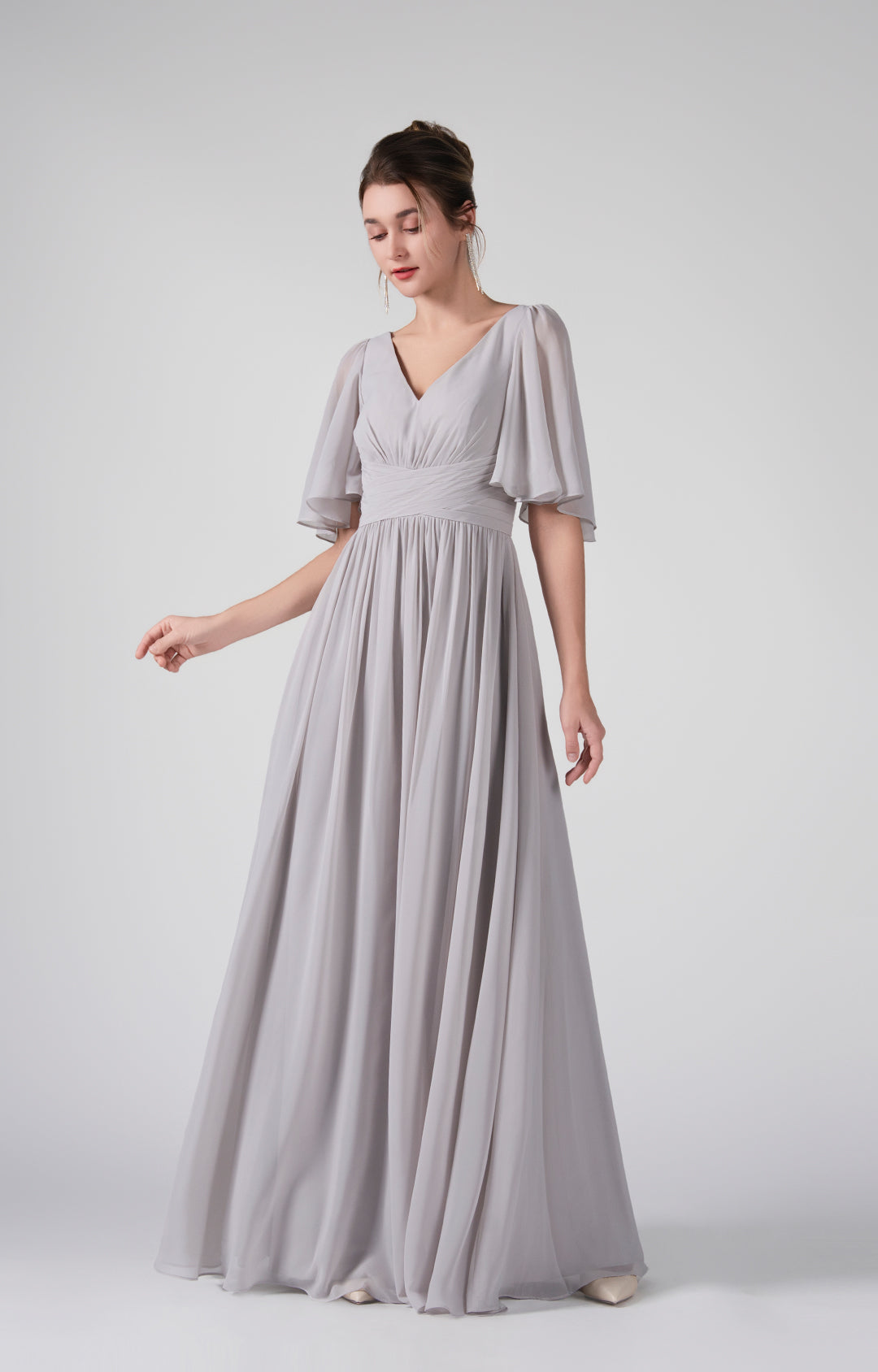 11 reseñasV-Neck Flutter Sleeves Pleats A-Line Maxi Dress