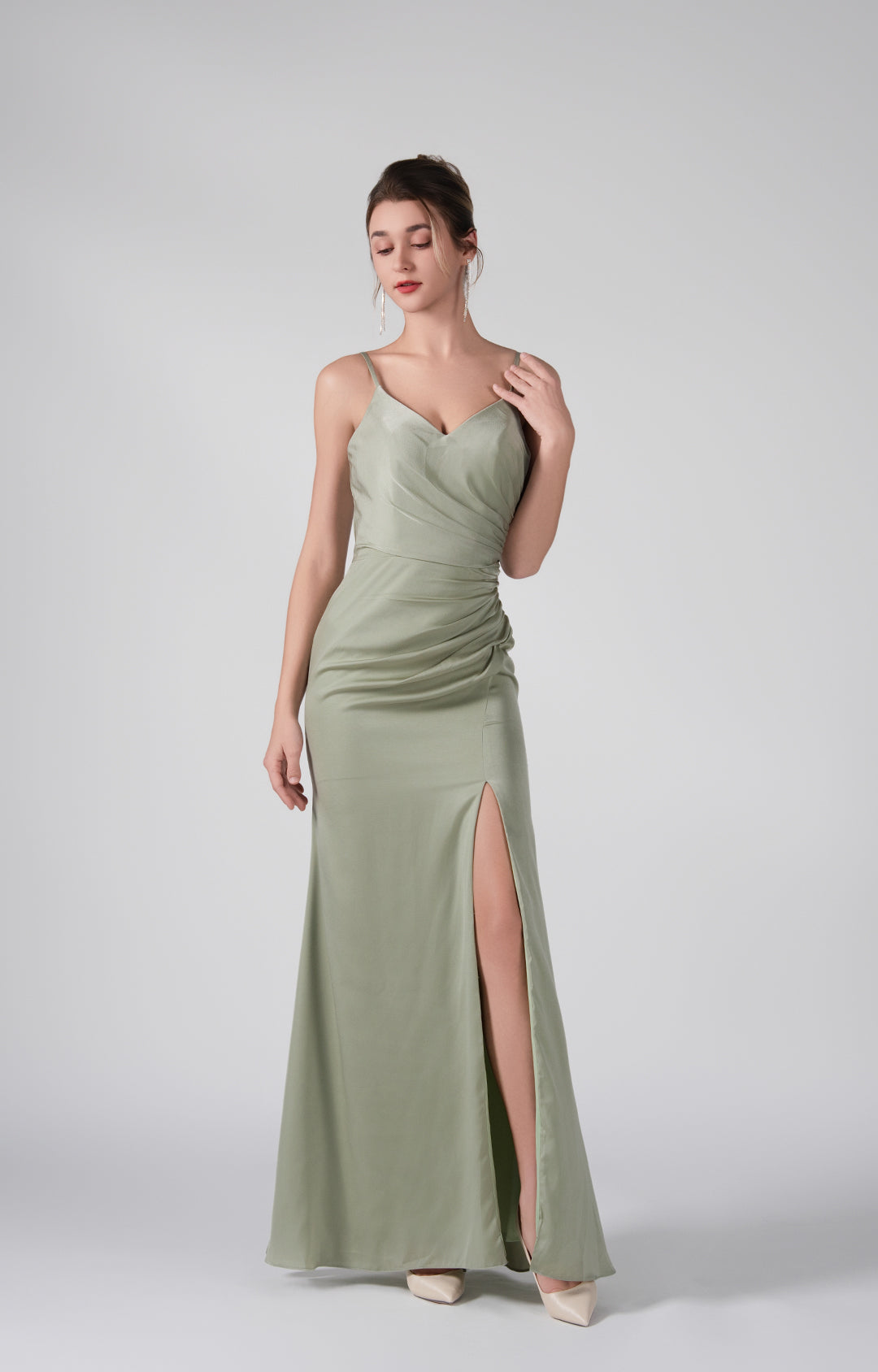 A-Line V-Neck Spaghetti Straps Split Floor-Length Dress