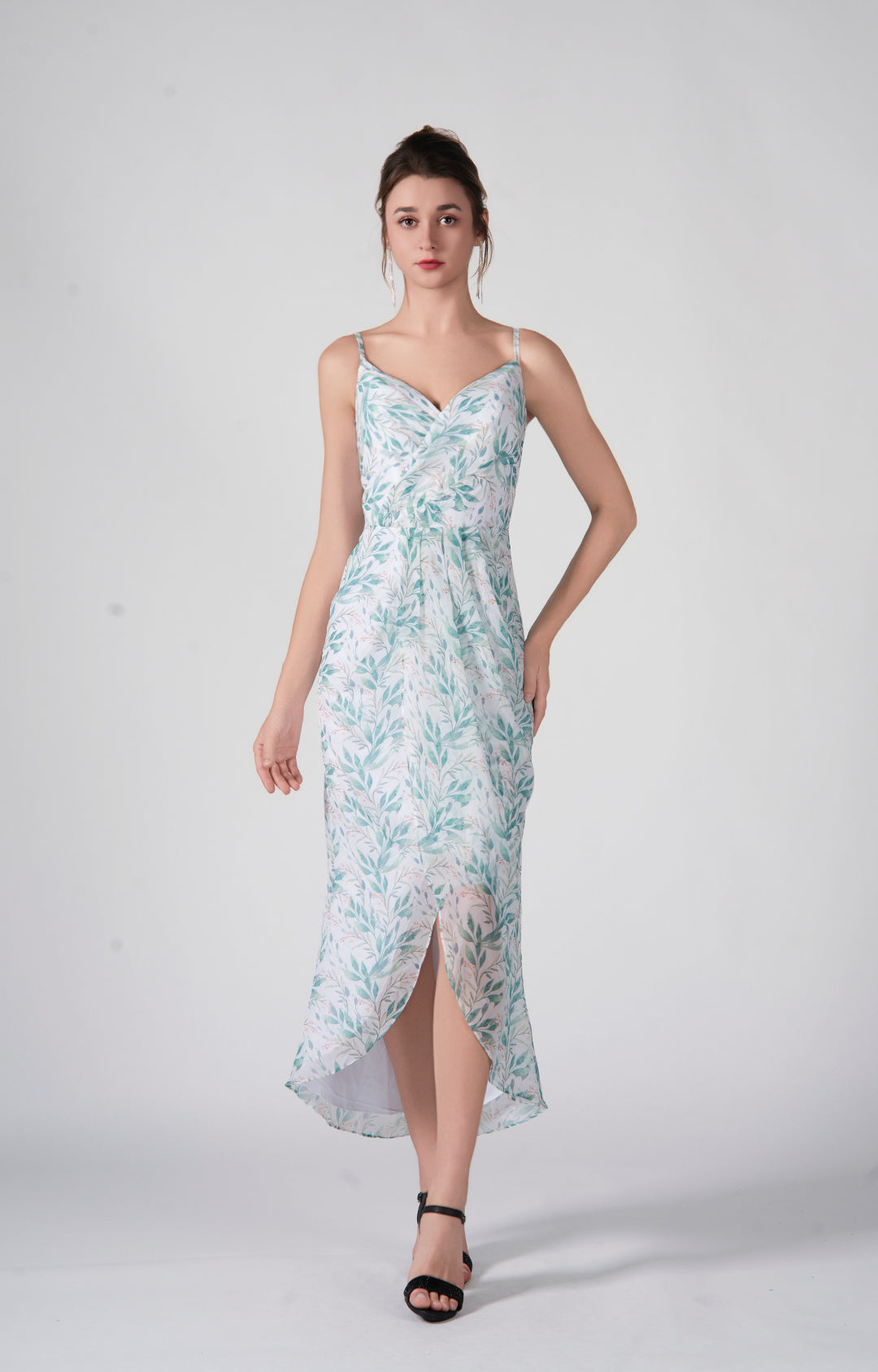 V-Neck Spaghetti Straps Split Pleated High-Low Maxi Dress