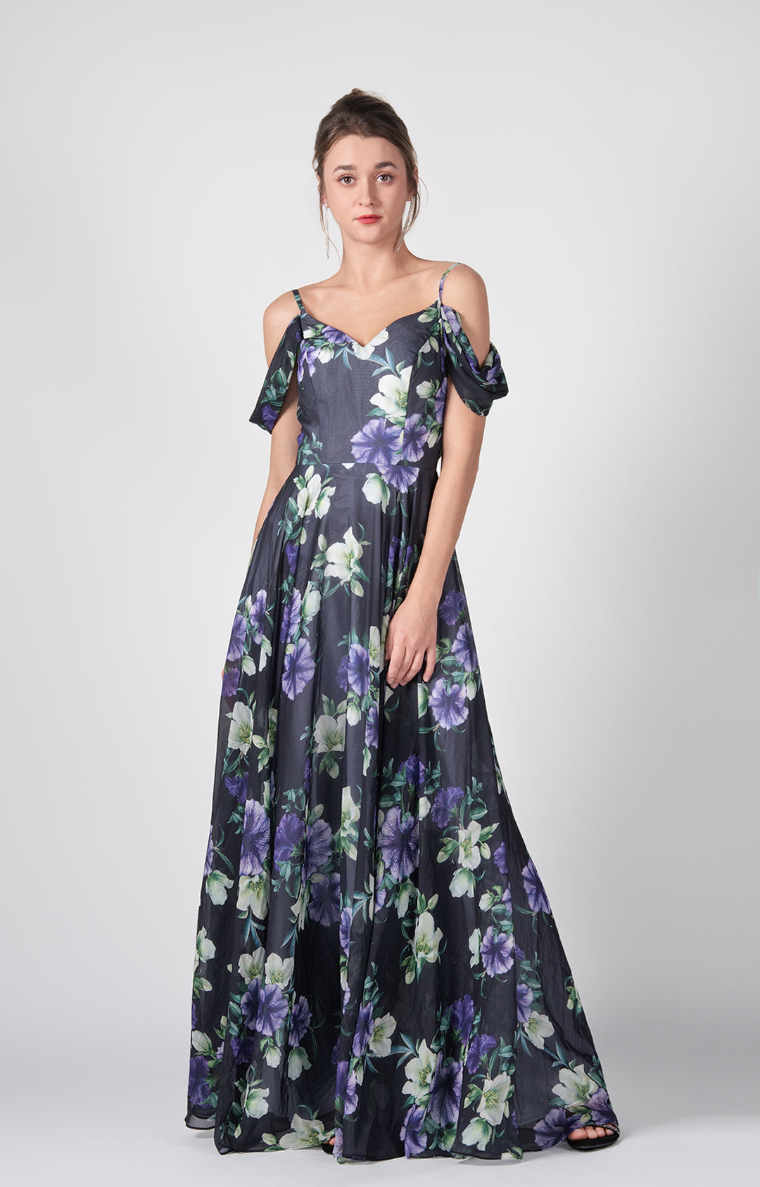 Off Shoulder A-Line Chic Open Back Flowy Pleated Maxi Dresses