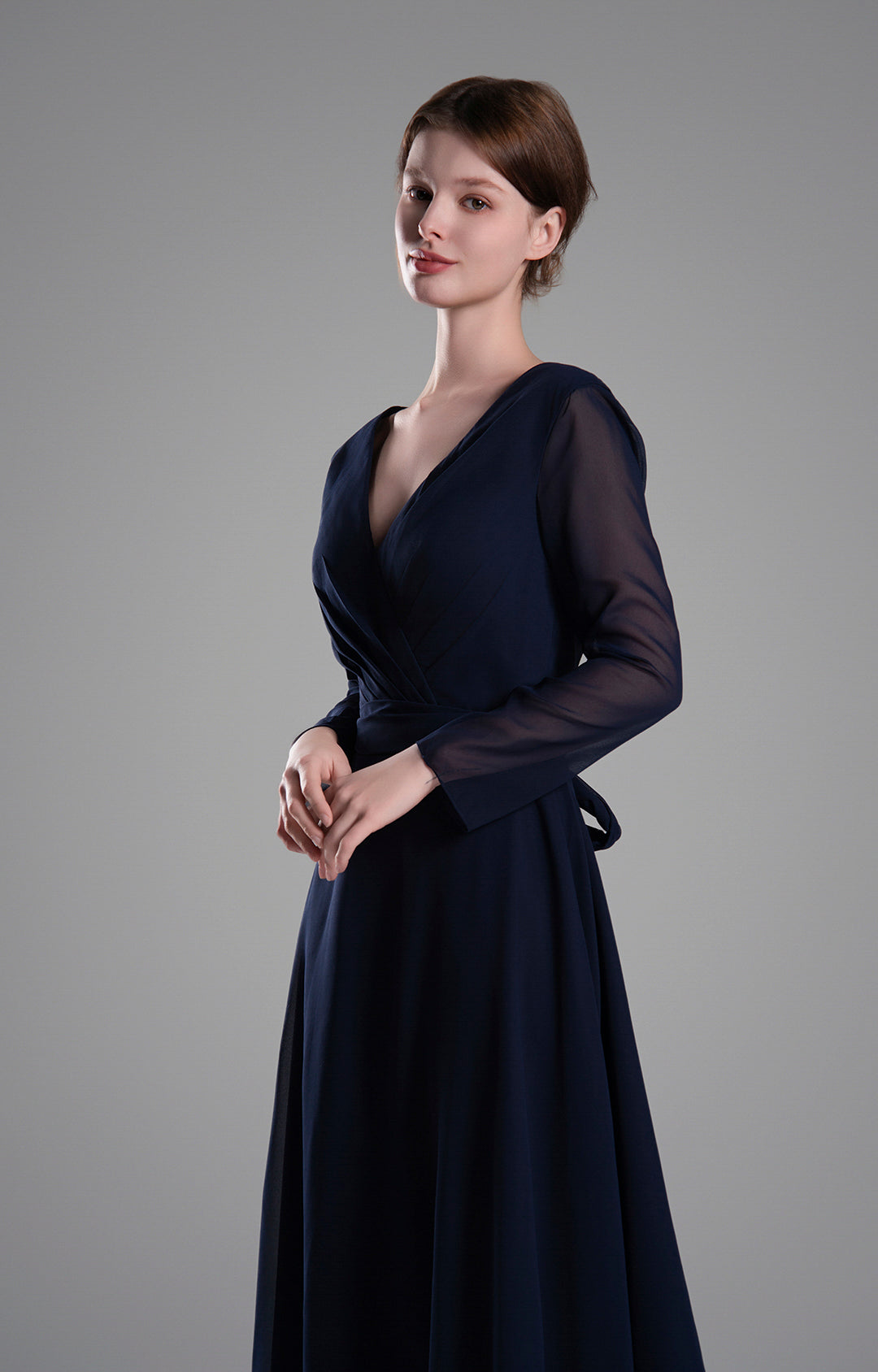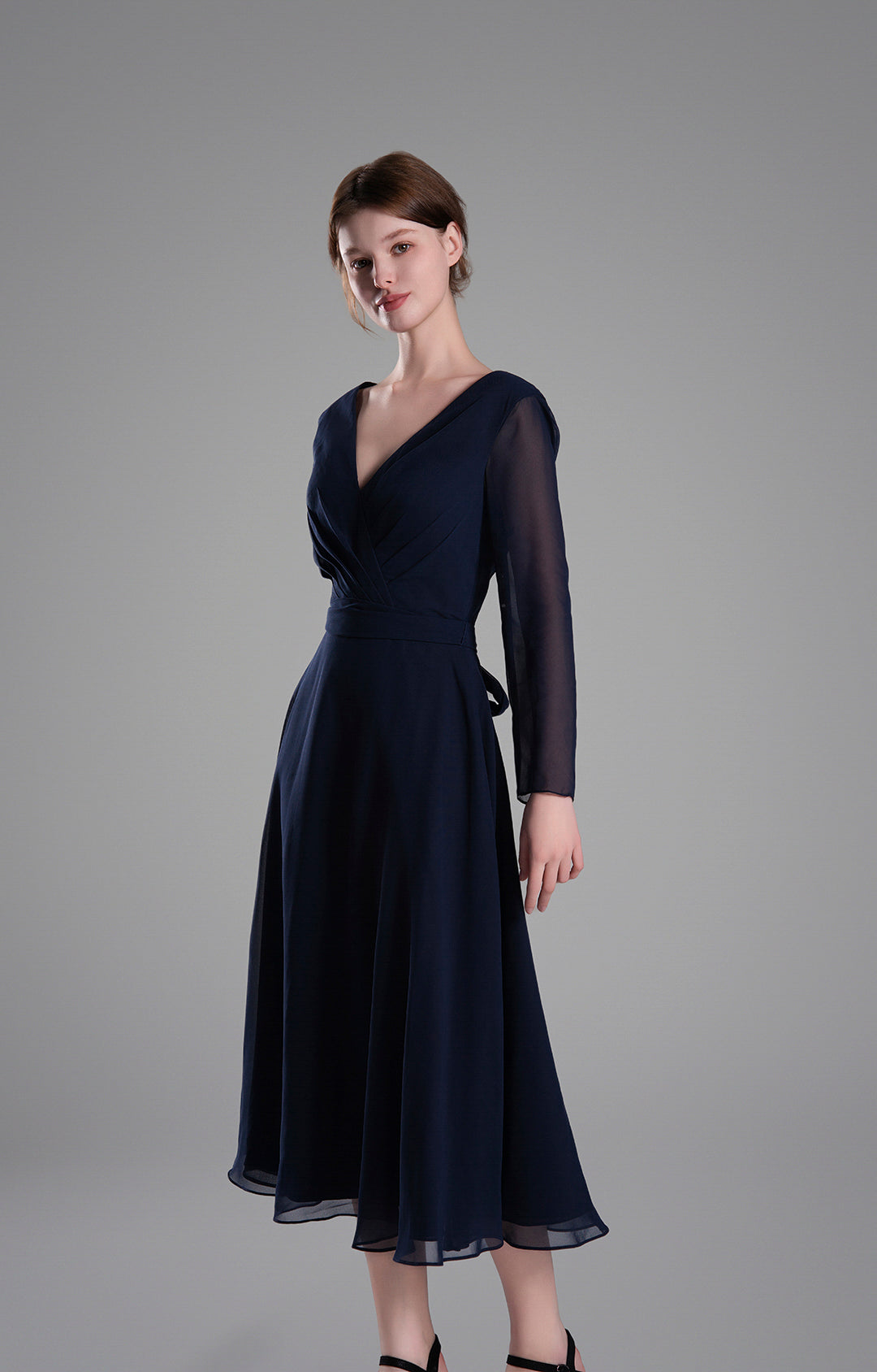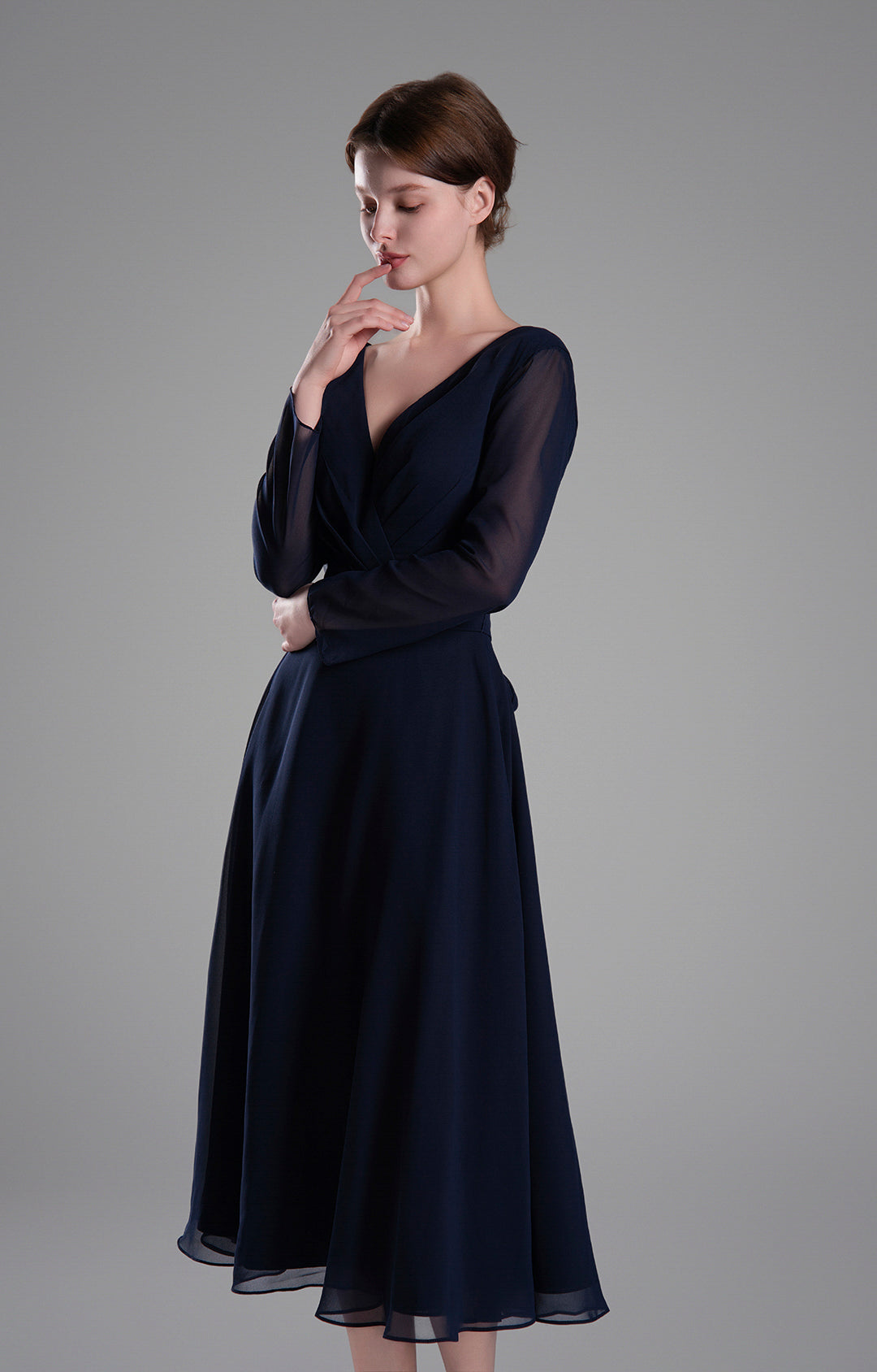 Perfect for evening dinners, weddings, cocktail parties, or any formal gathering, this chiffon dress radiates sophistication, making it an essential addition to any wardrobe.