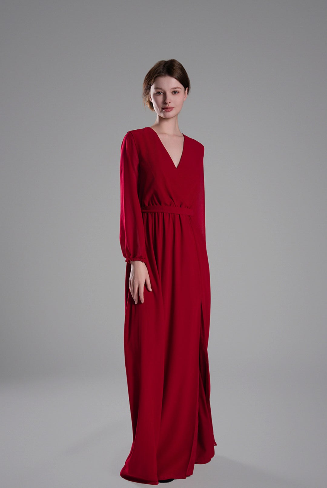 5 avisRobes longues transparentes à manches longues et dos en V plissé et fendues