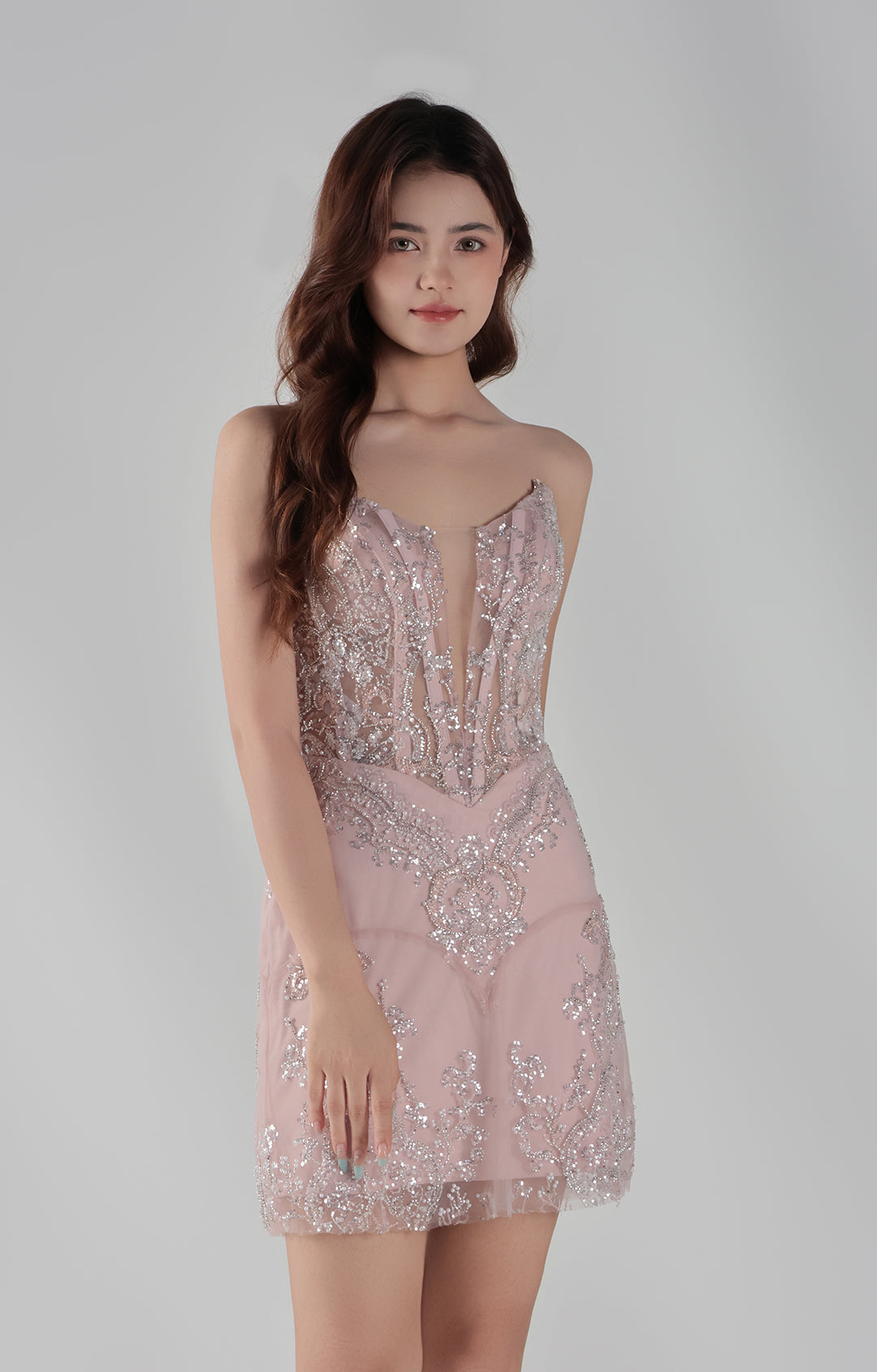 Strapless Heart Collar Corset Sequins Sheath Mini Dress