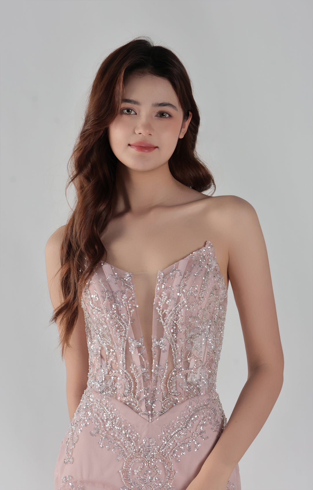 This glamorous dress is crafted from soft and airy tulle with sparkling embroidery and sequins , which offers a light and delicate feel.