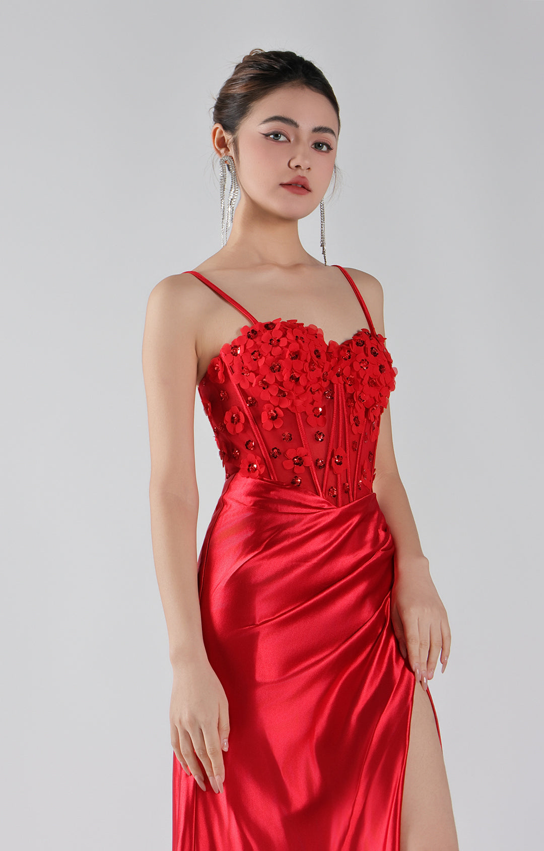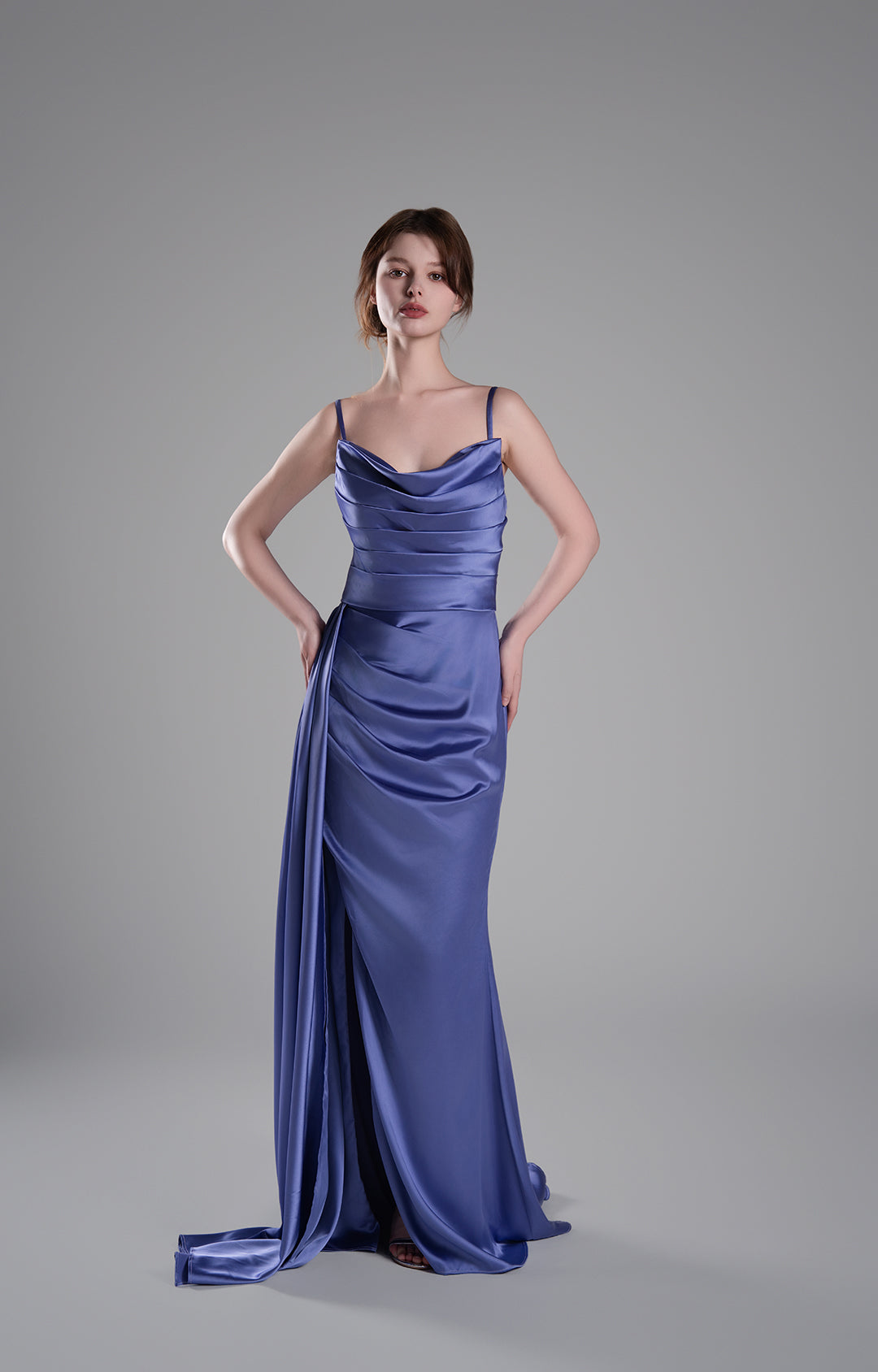 Robe de soirée à bretelles spaghetti réglables, col en V et fente latérale haute