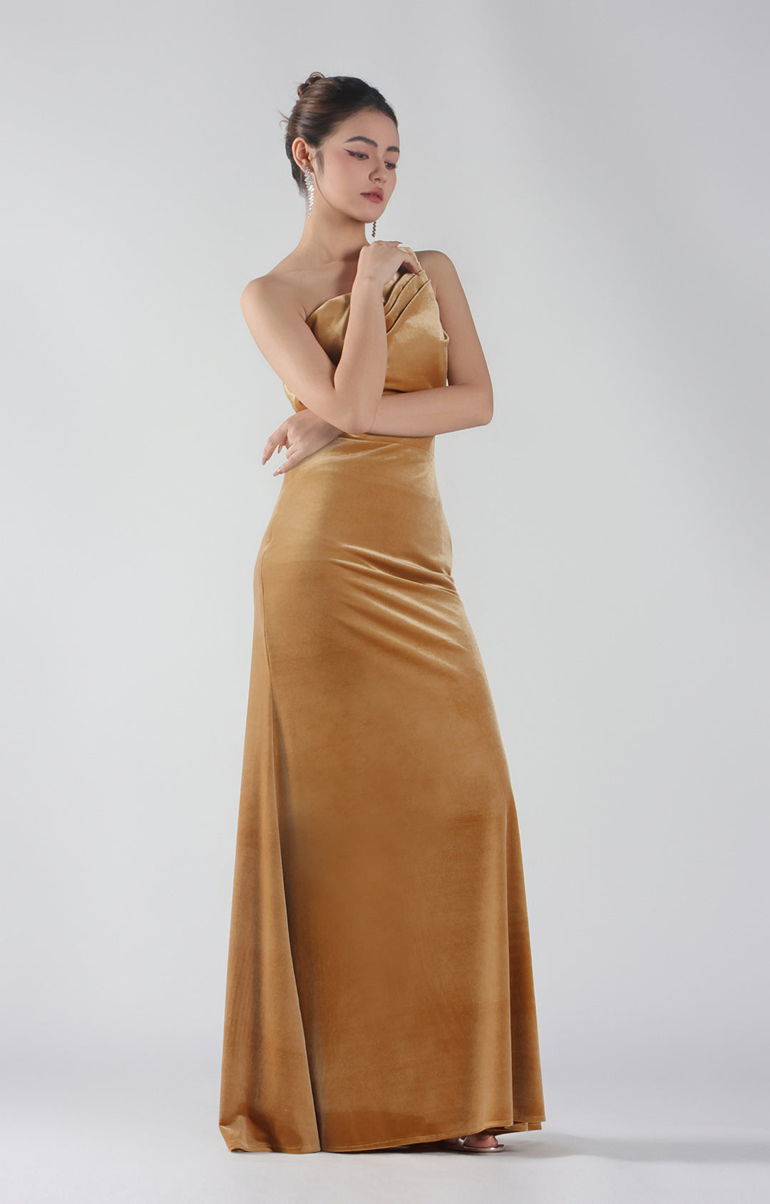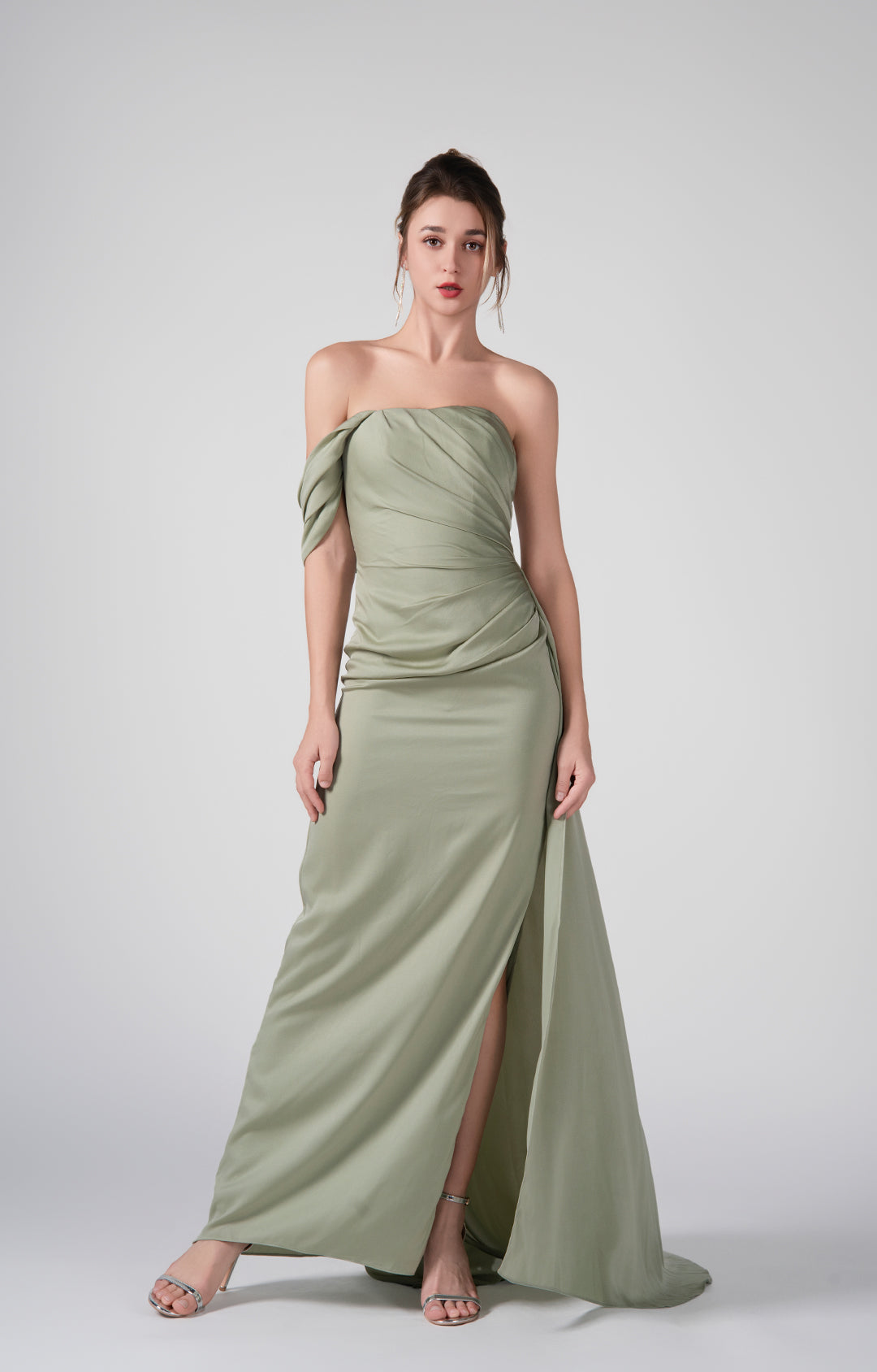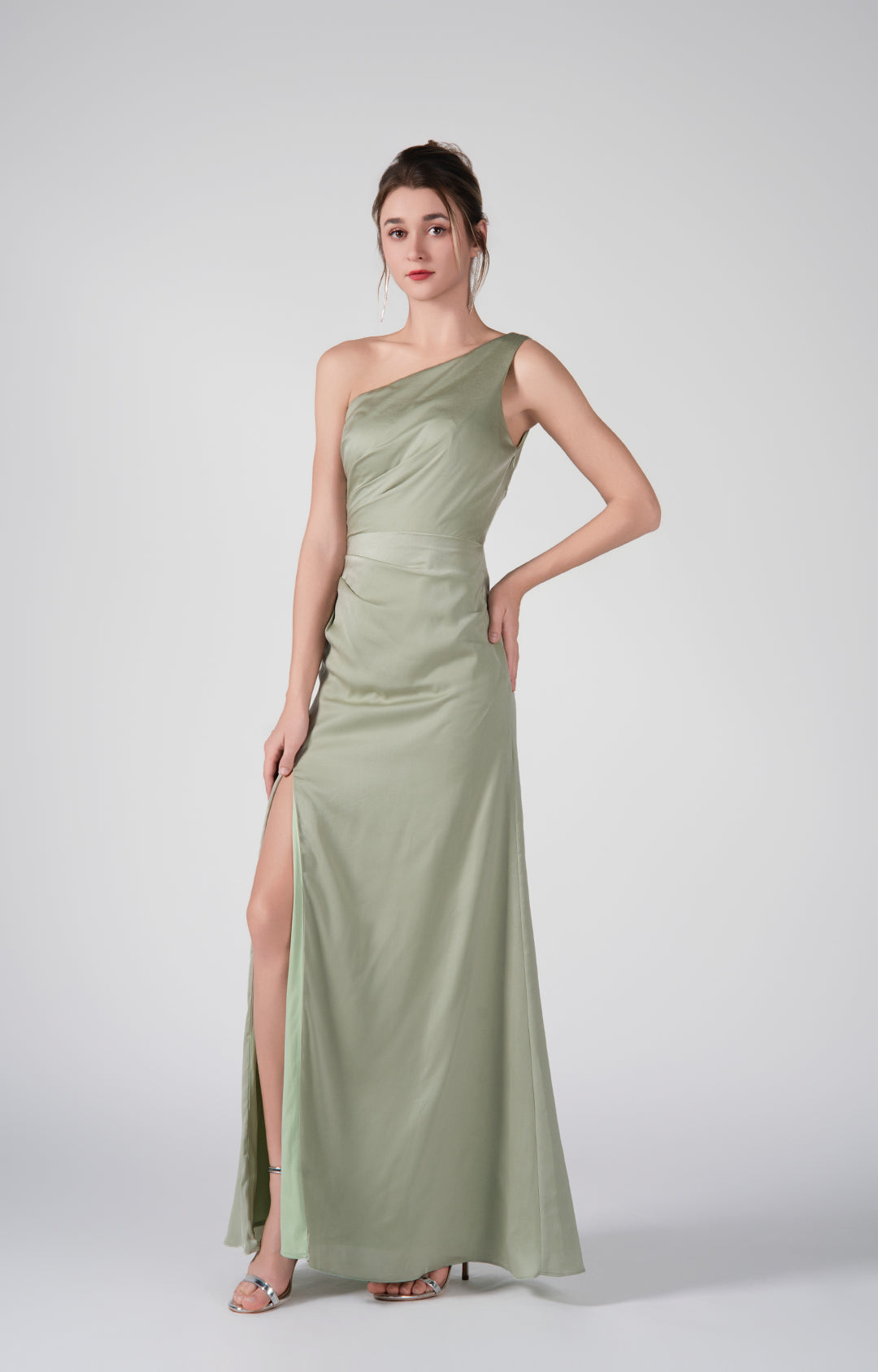 Asymmetrical One Shoulder Pleated Neckline Sheath Maxi Dress