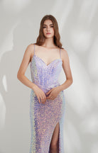 Robe de soirée à bretelles spaghetti réglables, col en V et fente latérale haute